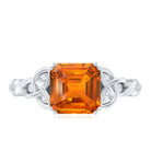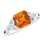 8 MM Asscher Cut Lab Grown Orange Sapphire Solitaire Celtic Engagement Ring