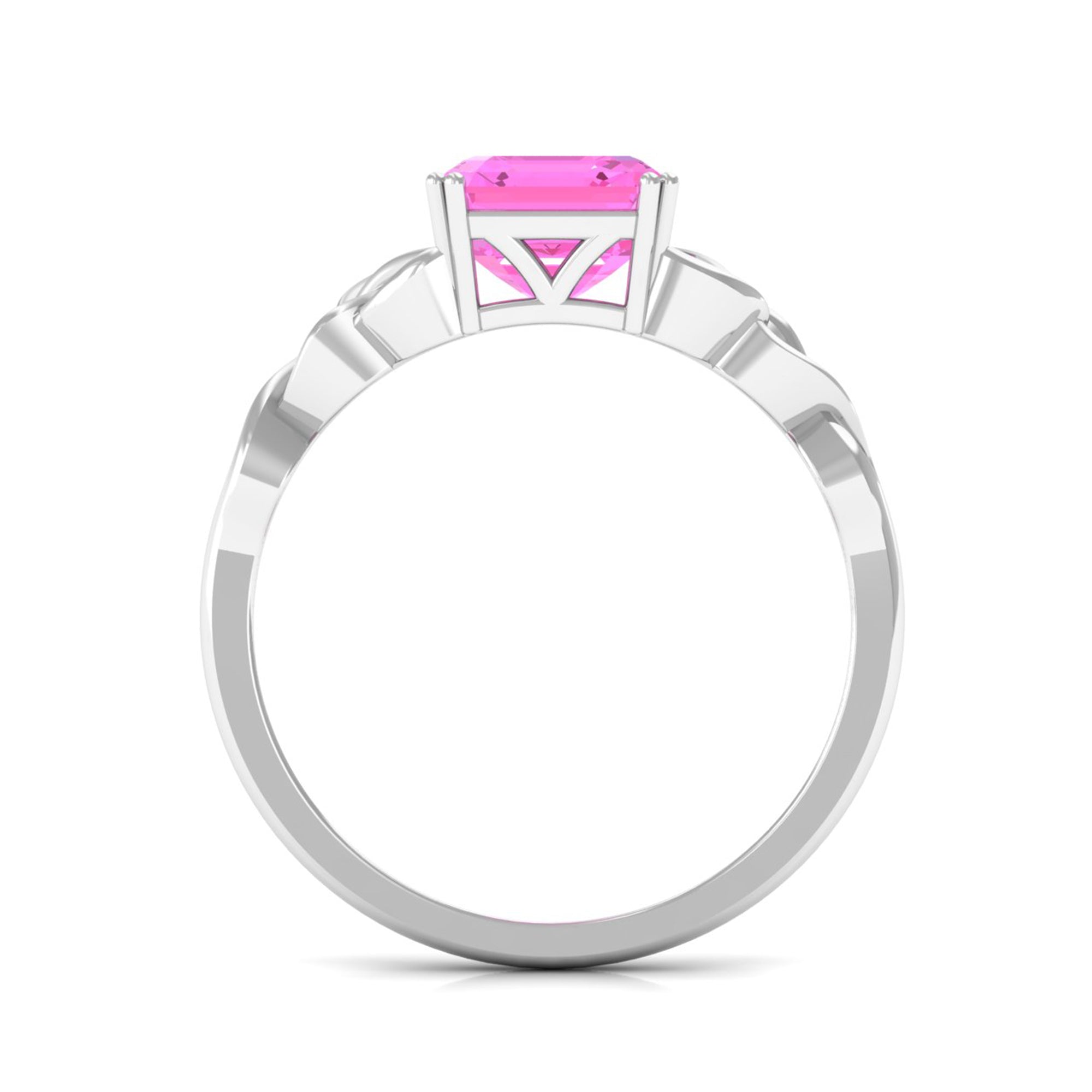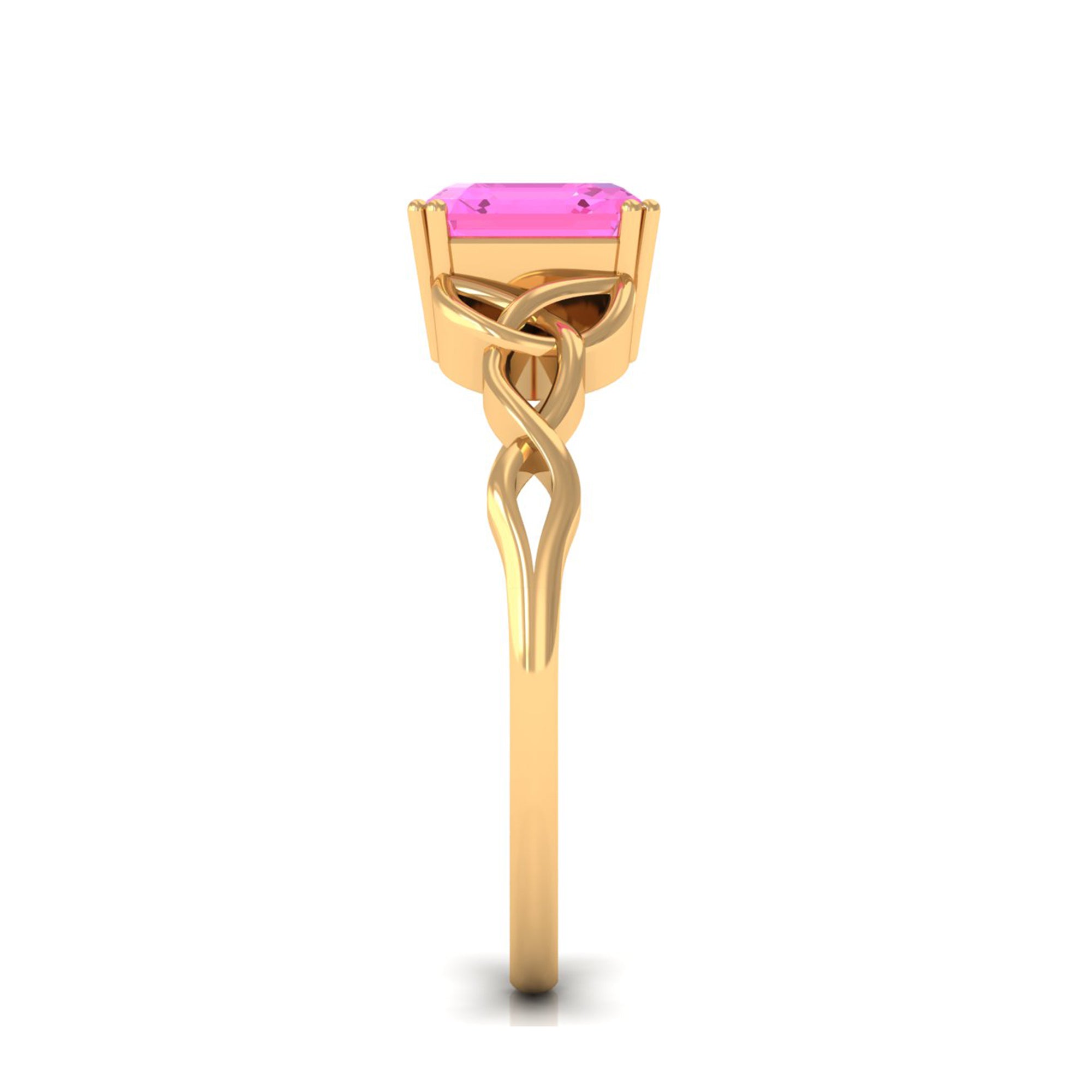 Asscher Cut Lab Grown Pink Sapphire Solitaire Celtic Knot Ring