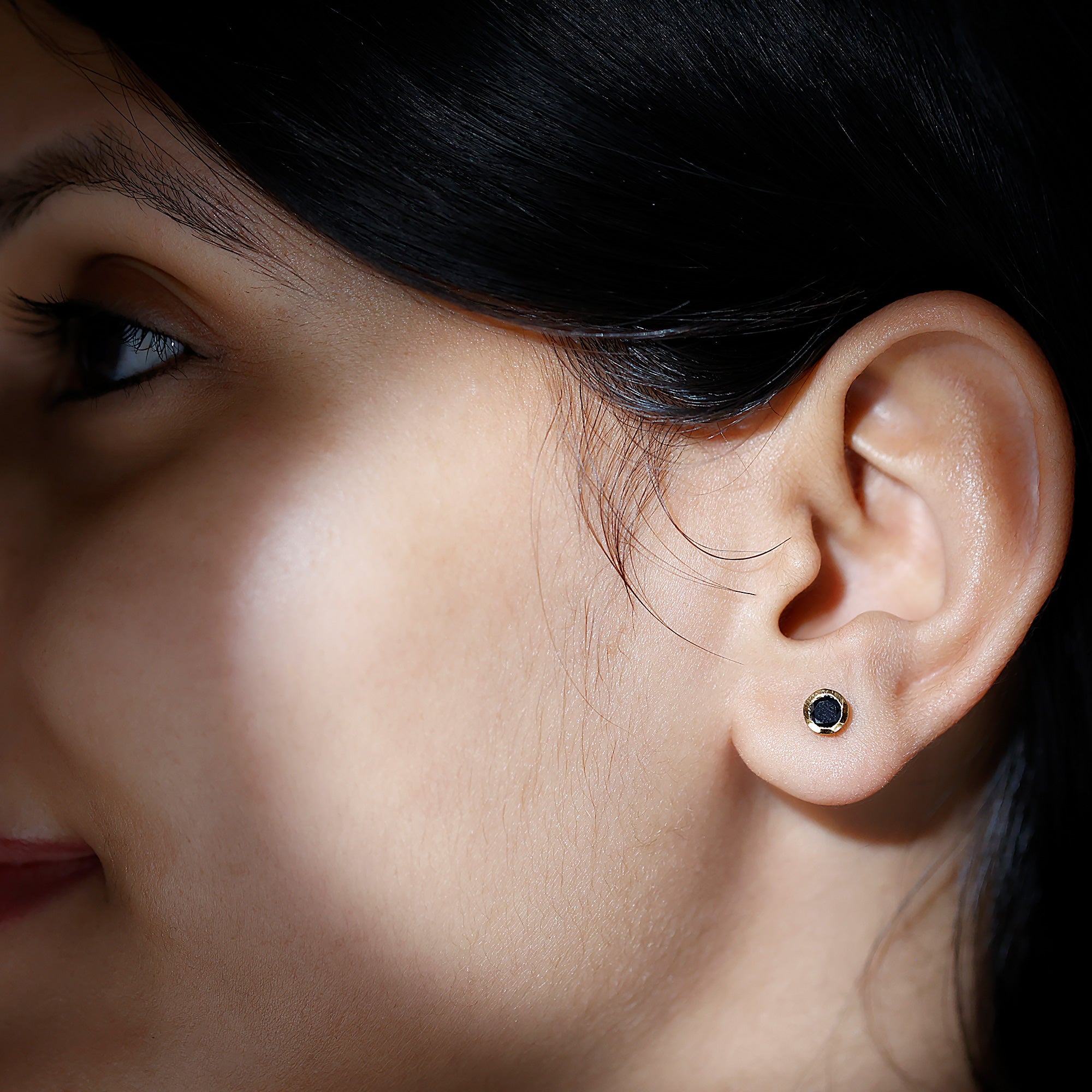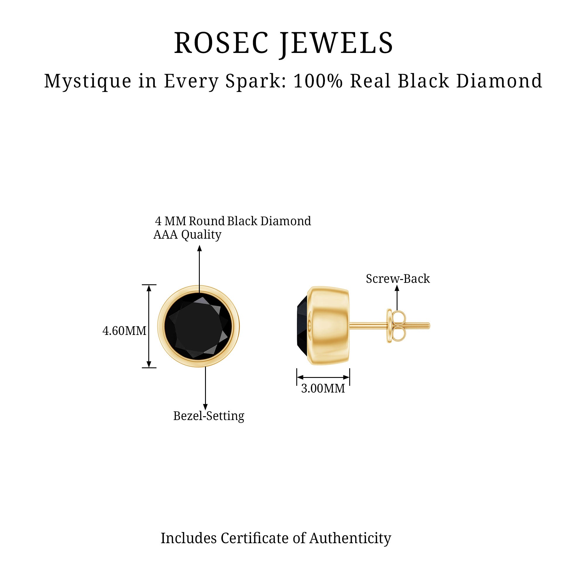 Bezel Set Genuine Black Diamond Stud Earrings With Certificate