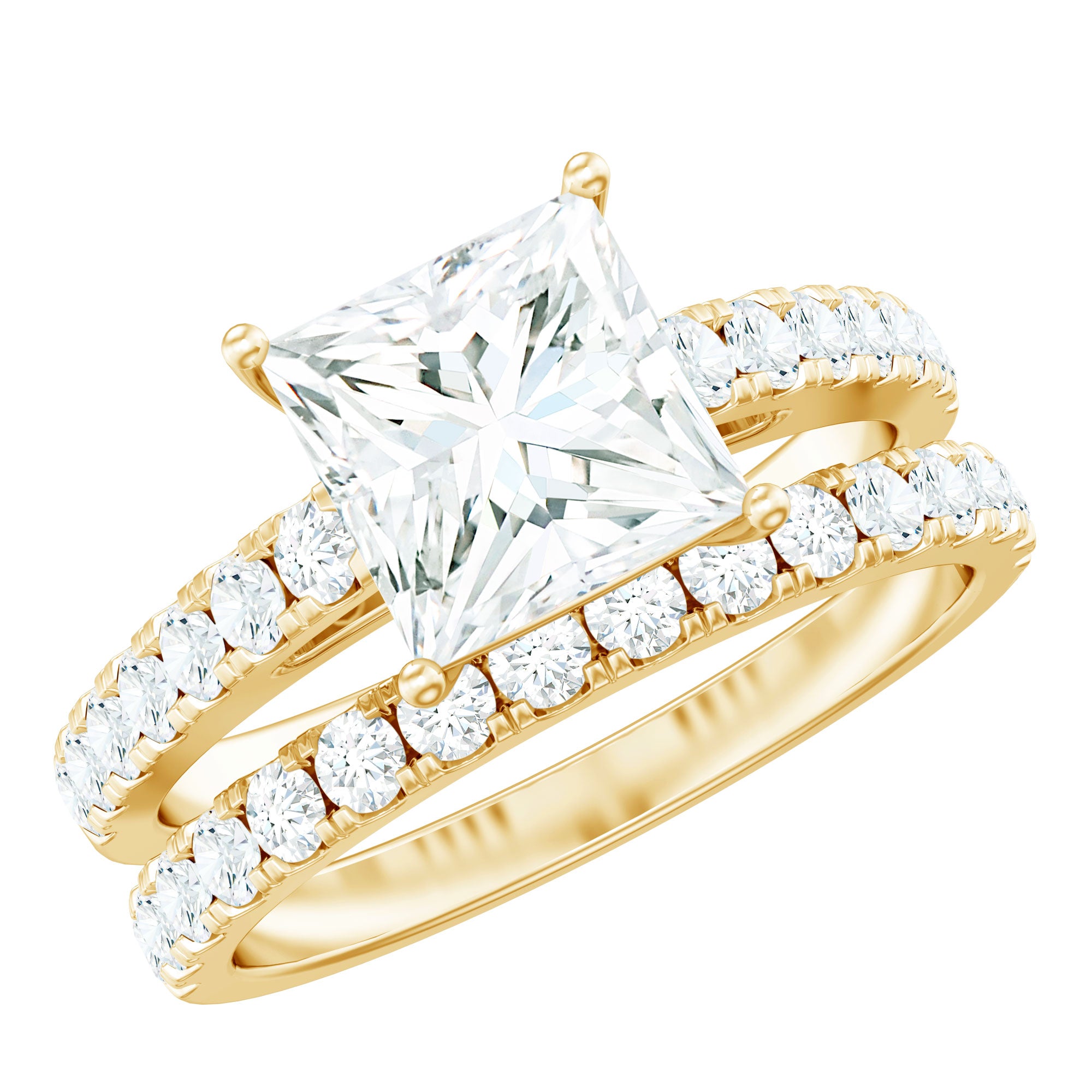 8 MM Certified Moissanite Princess Cut Engagement Ring With Wedding Band