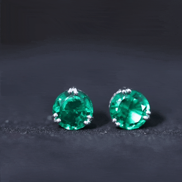 8 MM Created Emerald Solitaire Stud Earrings in Double Claw Setting