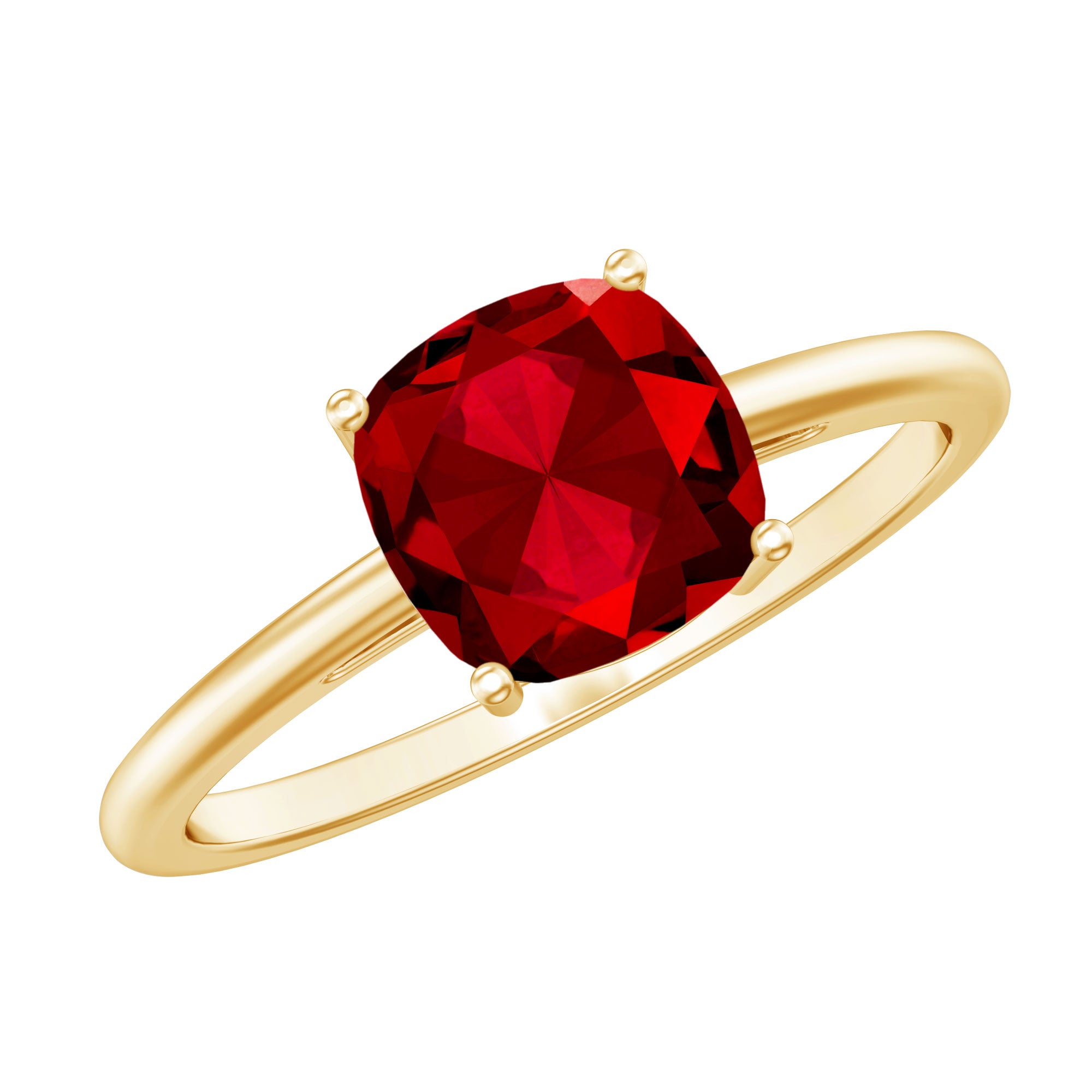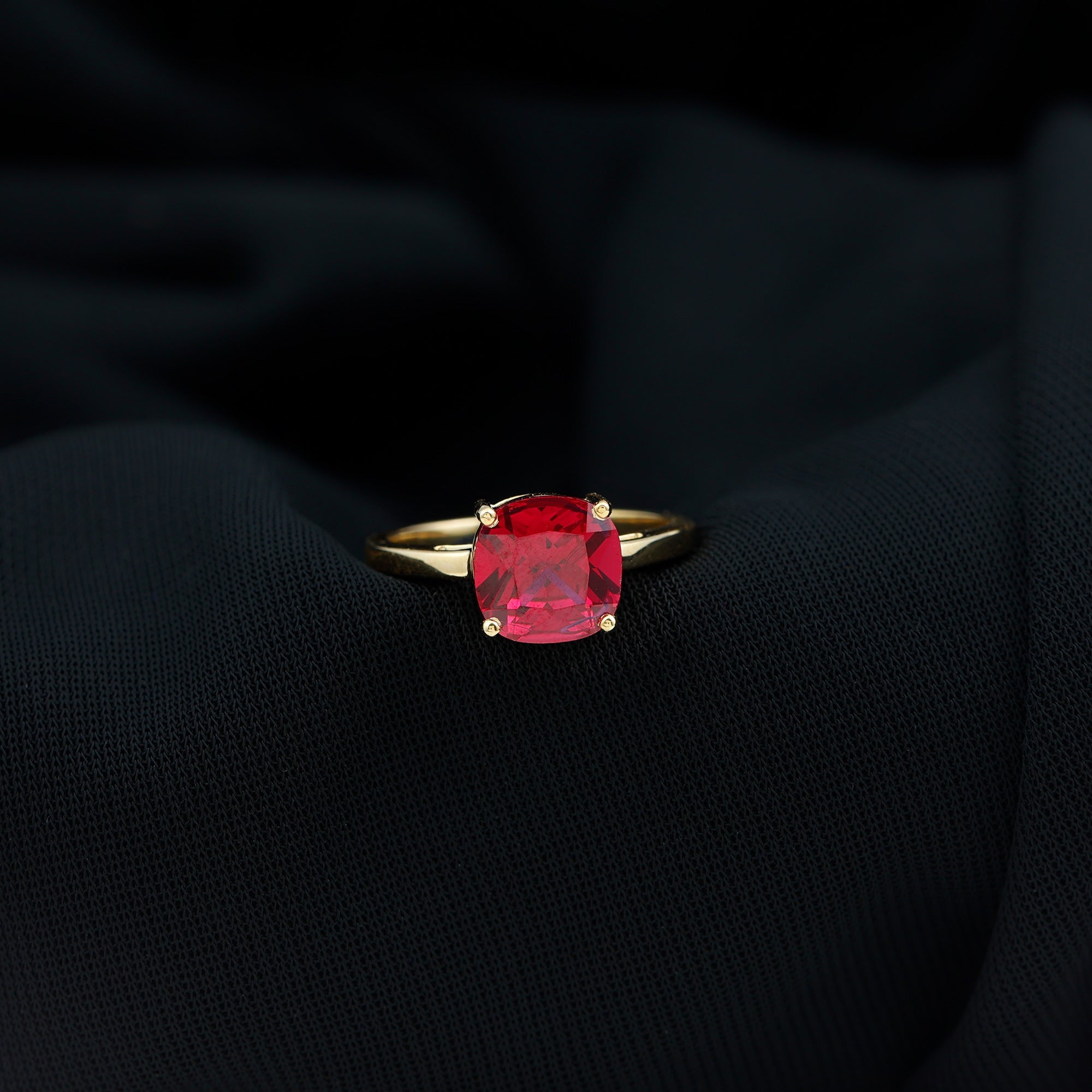 8 MM Cushion Cut Created Ruby Solitaire Ring