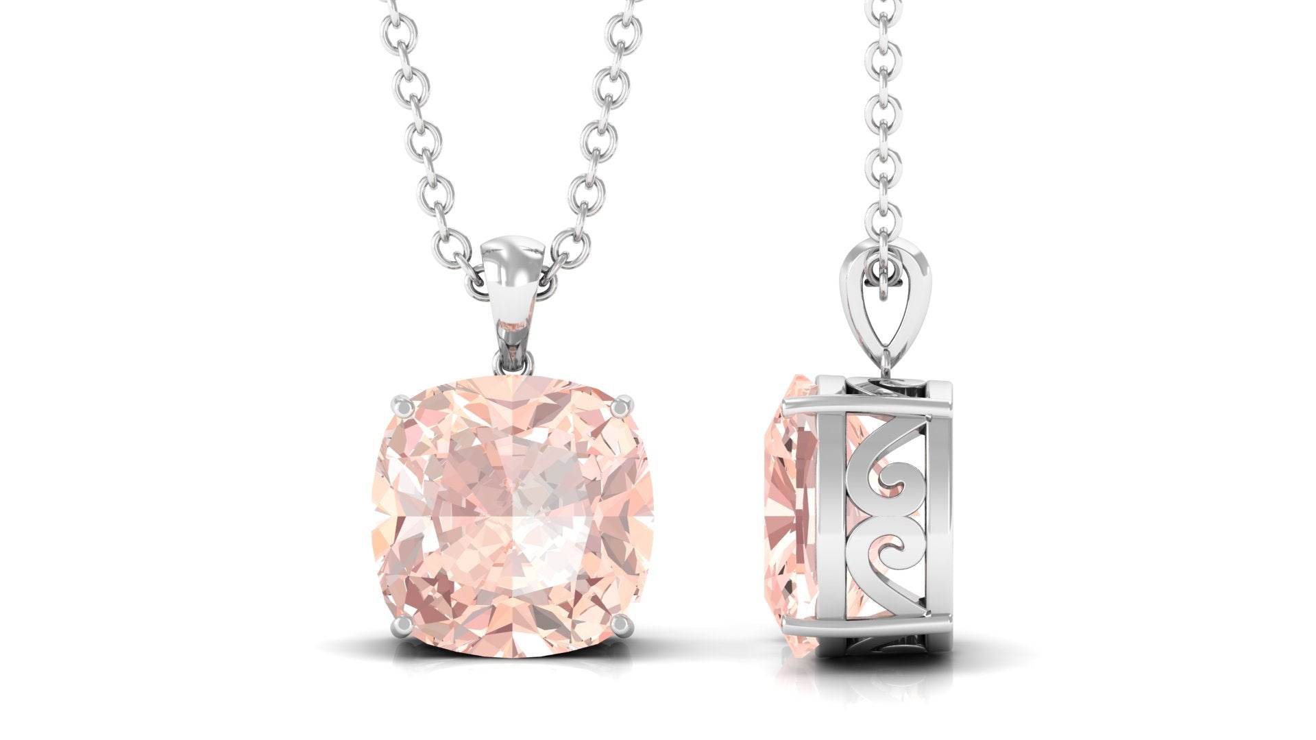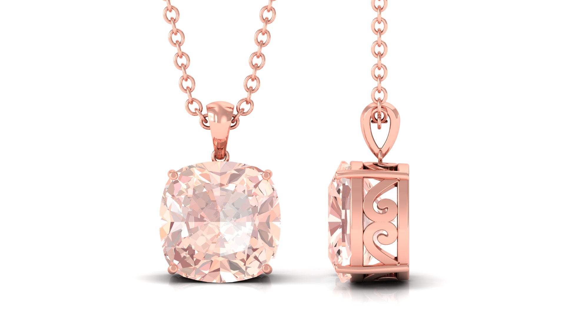 8 MM Cushion Cut Morganite Solitaire Pendant in 4 Prong Setting