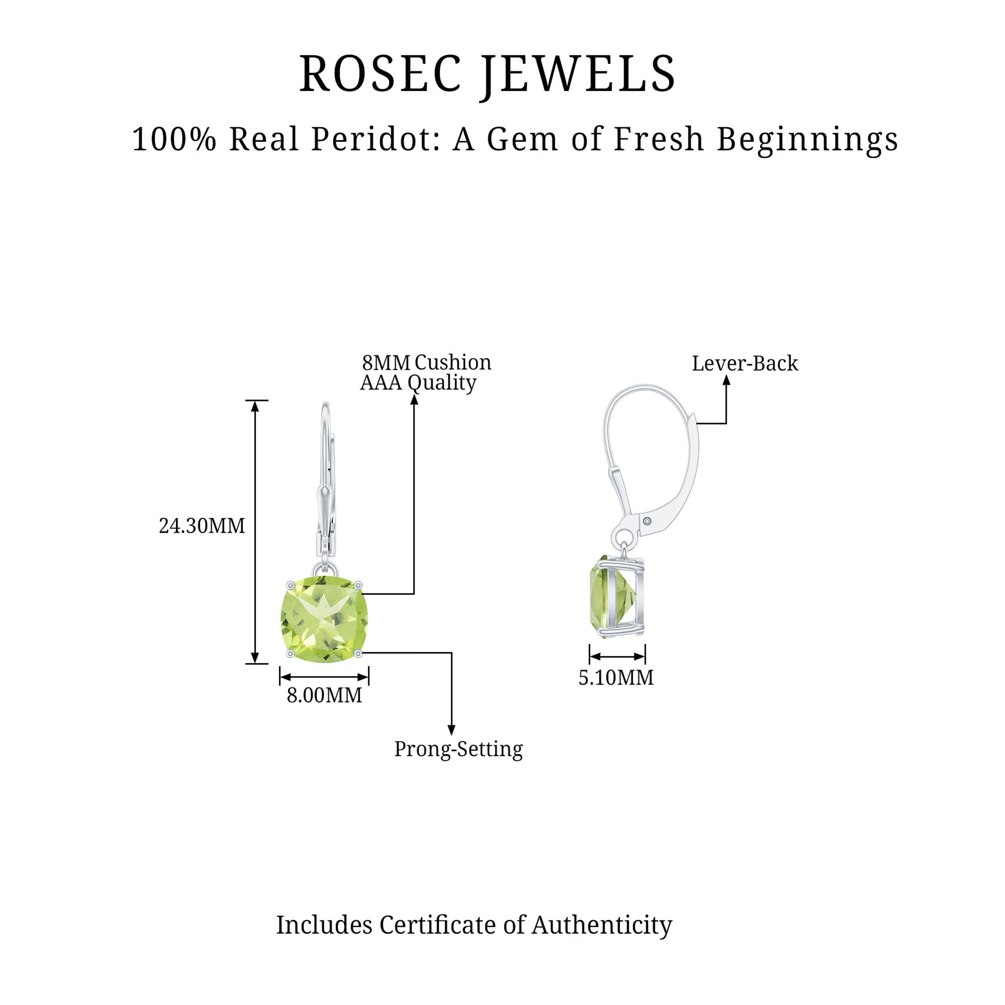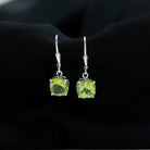 8 MM Cushion Cut Peridot Solitaire Drop Earrings