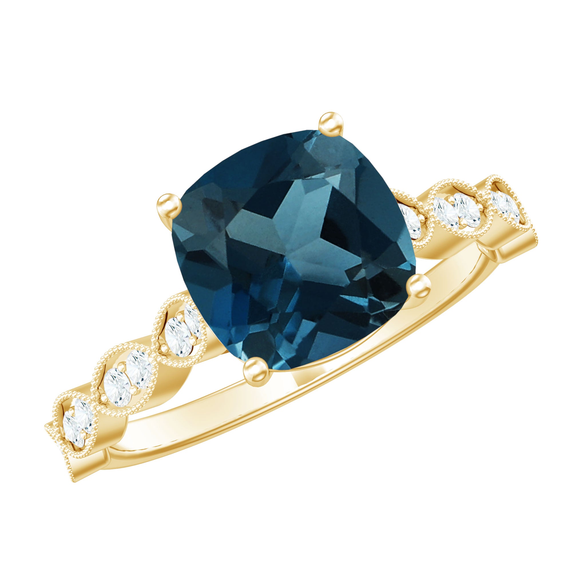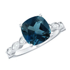 Cushion Cut London Blue Topaz Vintage Engagement Ring with Diamonds