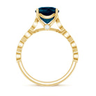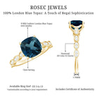 Mark your special moment with a ring that combines classic beauty and thoughtful detail. This elegant London Blue Topaz Engagement Ring is perfect for those who love timeless design with a unique touch. Made with care, it features high quality materials and beautiful craftsmanship. At the center of the Vintage Looking Engagement Ring is an 8 MM cushion cut London Blue Topaz of AAA quality, held securely in basket setting. On each side of the topaz, round HI-SI quality diamonds are placed in a delicate scalloped pattern. Fine milgrain detailing along the edges gives the Solitaire Engagement Ring a vintage inspired look. A special surprise detail adds charm, one small diamond is tucked beneath the center stone in bezel setting, offering a hidden sparkle only you may notice. The cathedral style band gently lifts the center gem, adding height and elegance to the design. This Blue Topaz and Diamond Engagement Ring is a beautiful choice for an engagement, December birthday, or any meaningful occasion where you want to show love and commitment. Made to be comfortable for everyday wear, this Vintage Blue Topaz Ring is a mix of bold color and gentle sparkle, making it a standout piece in any jewelry collection.