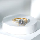 The captivating sparkle and brilliance of the Moissanite Engagement Ring is a perfect symbol of enduring love and commitment. This ring is adorned with 8 MM Cushion Shaped Moissanite in Basket Setting. This Cushion Cut Engagement Ring with Side Stones features D-VS1 Quality Moissanite which beautifully combines grace and style to create a truly unique piece. Its timeless elegance and ability to showcase the scintillating beauty of the center stone make it an ideal choice to celebrate a special occasion. Capture the essence of timeless love and brilliance with this Side Stone Engagement Ring, while embarking on a new chapter.