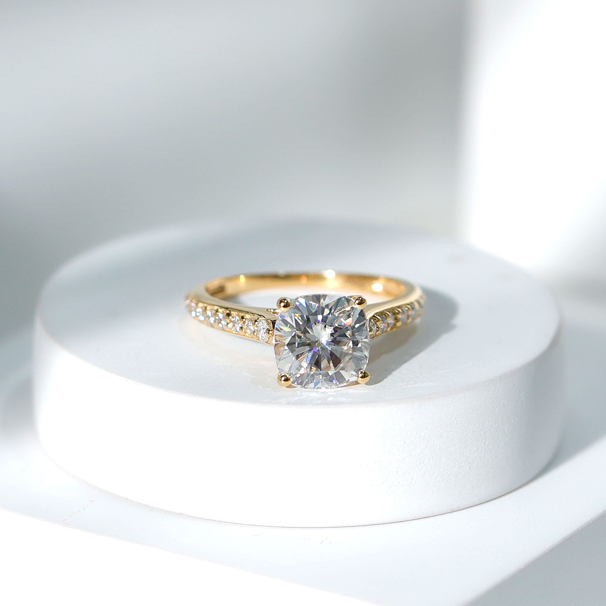 8 MM Cushion Moissanite Cathedral Engagement Ring