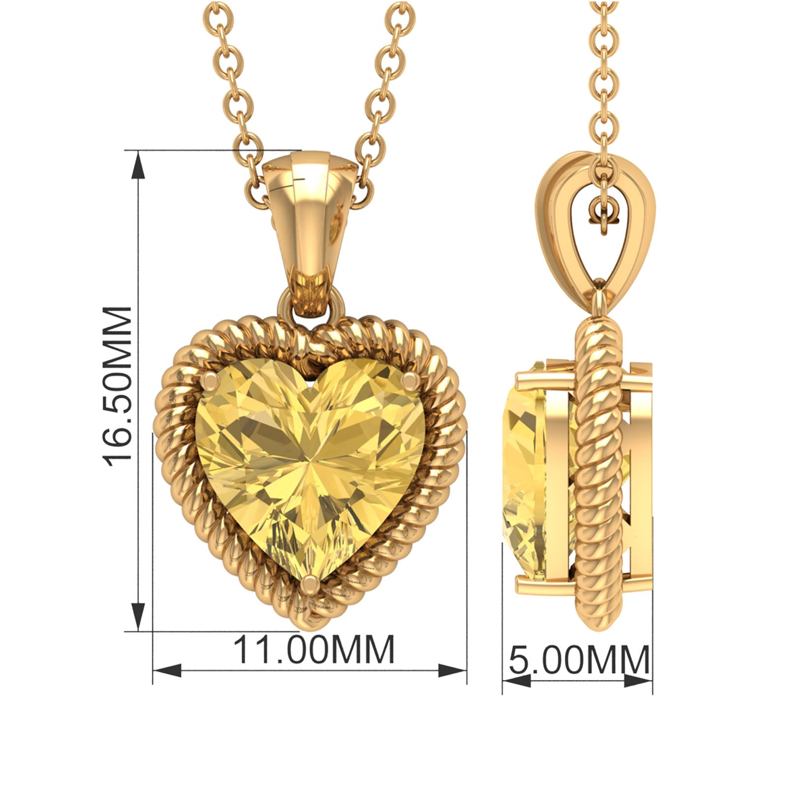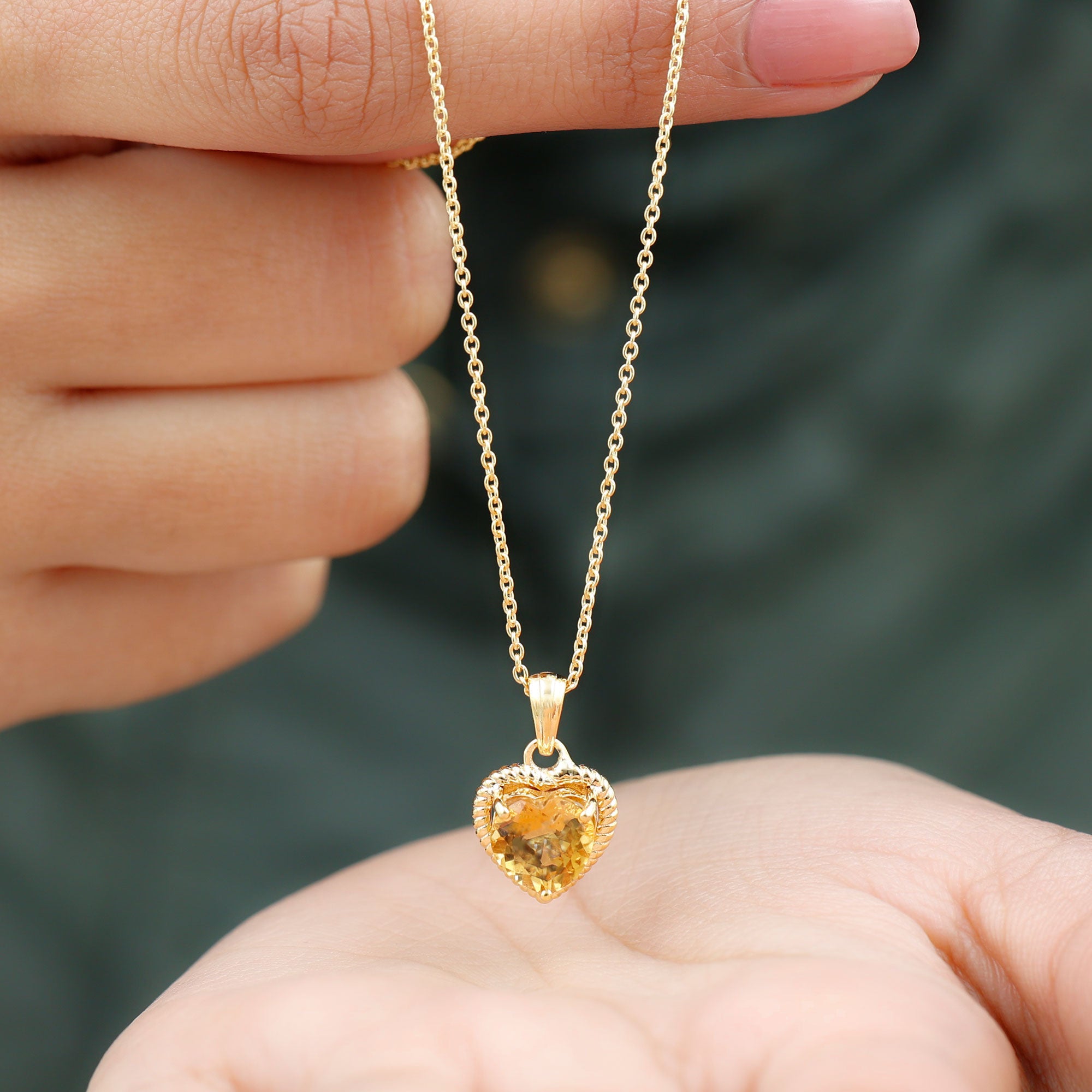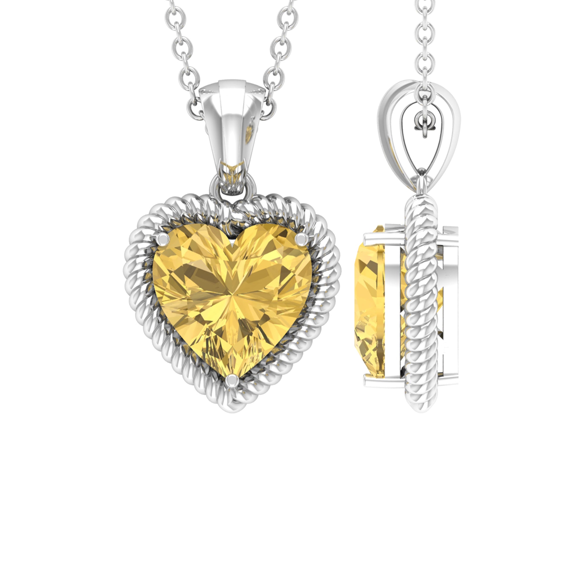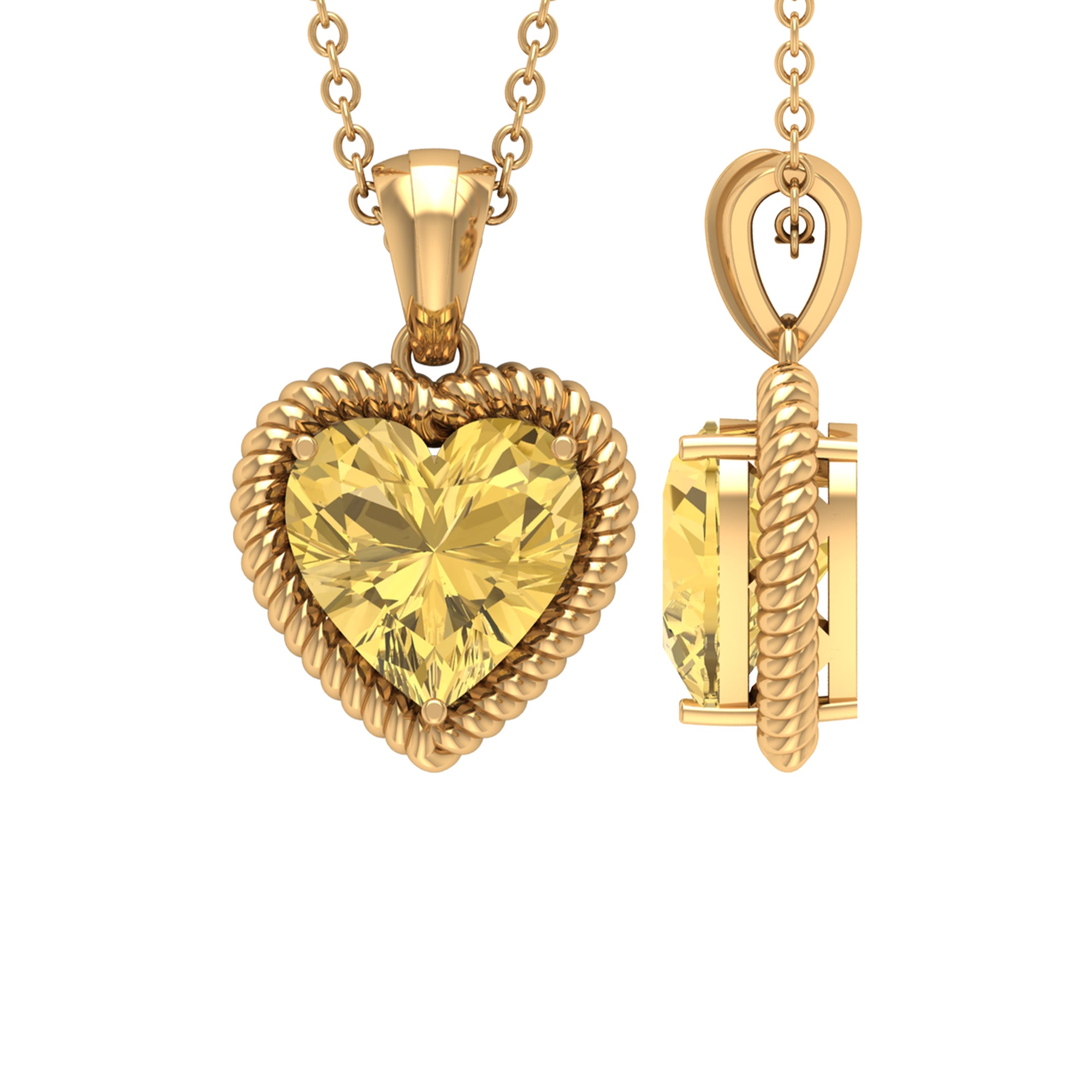 Heart Shape Citrine Solitaire Pendant with Rope Frame