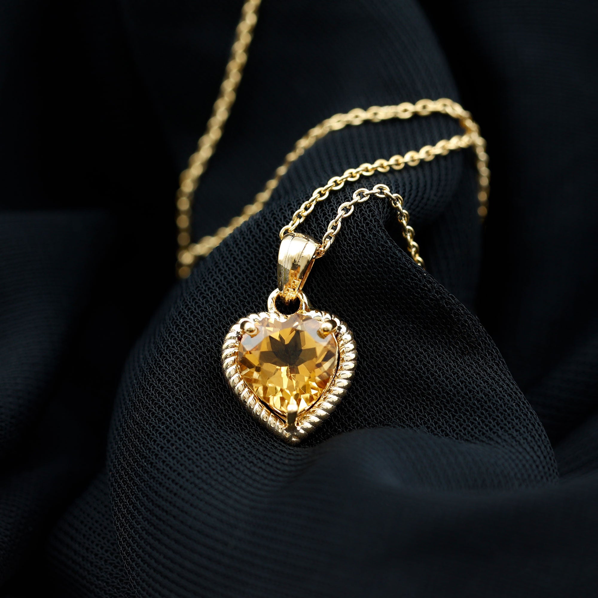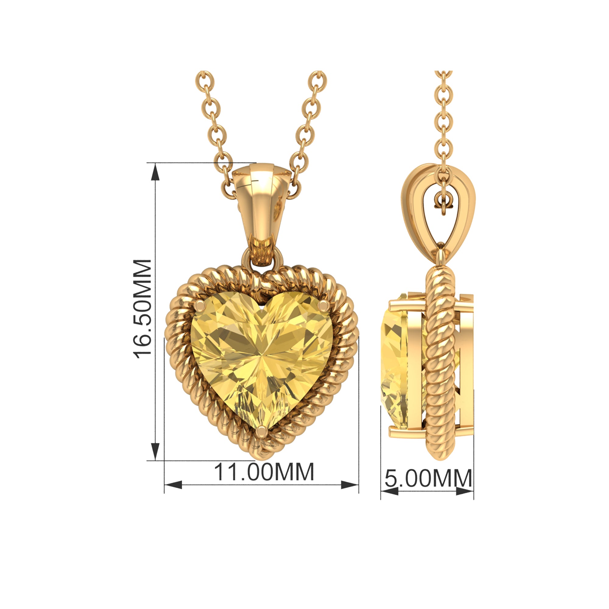 Heart Shape Citrine Solitaire Pendant with Rope Frame