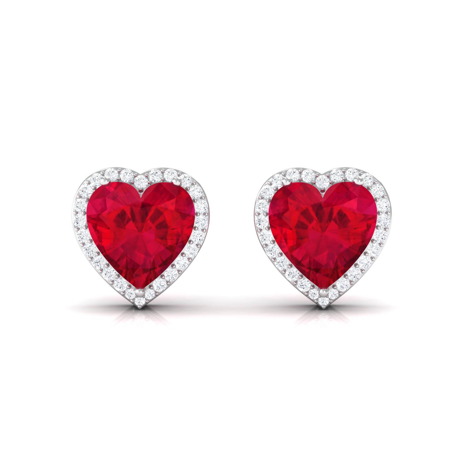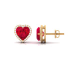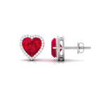 8 MM Heart Shape Created Ruby Halo Stud Earrings with Diamond