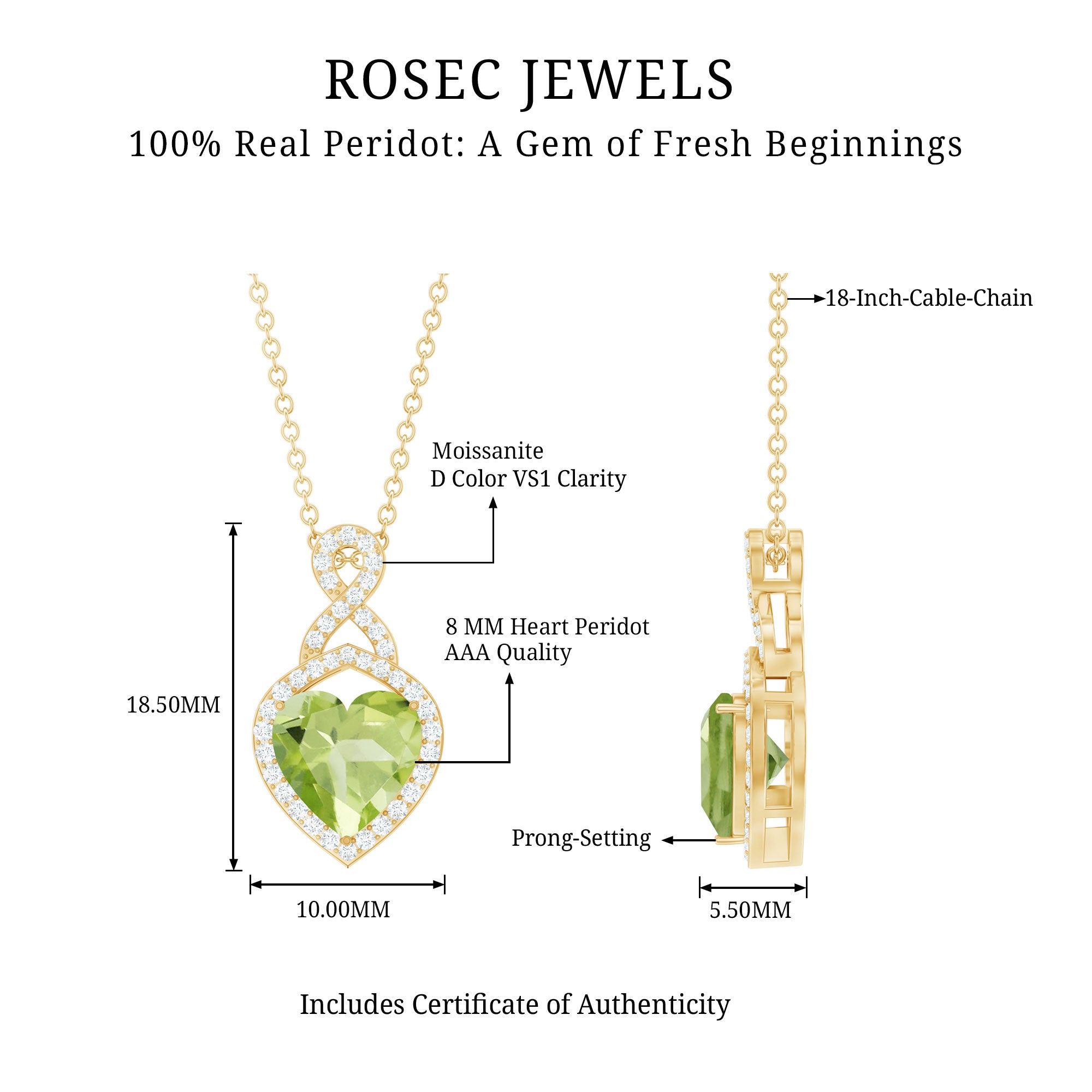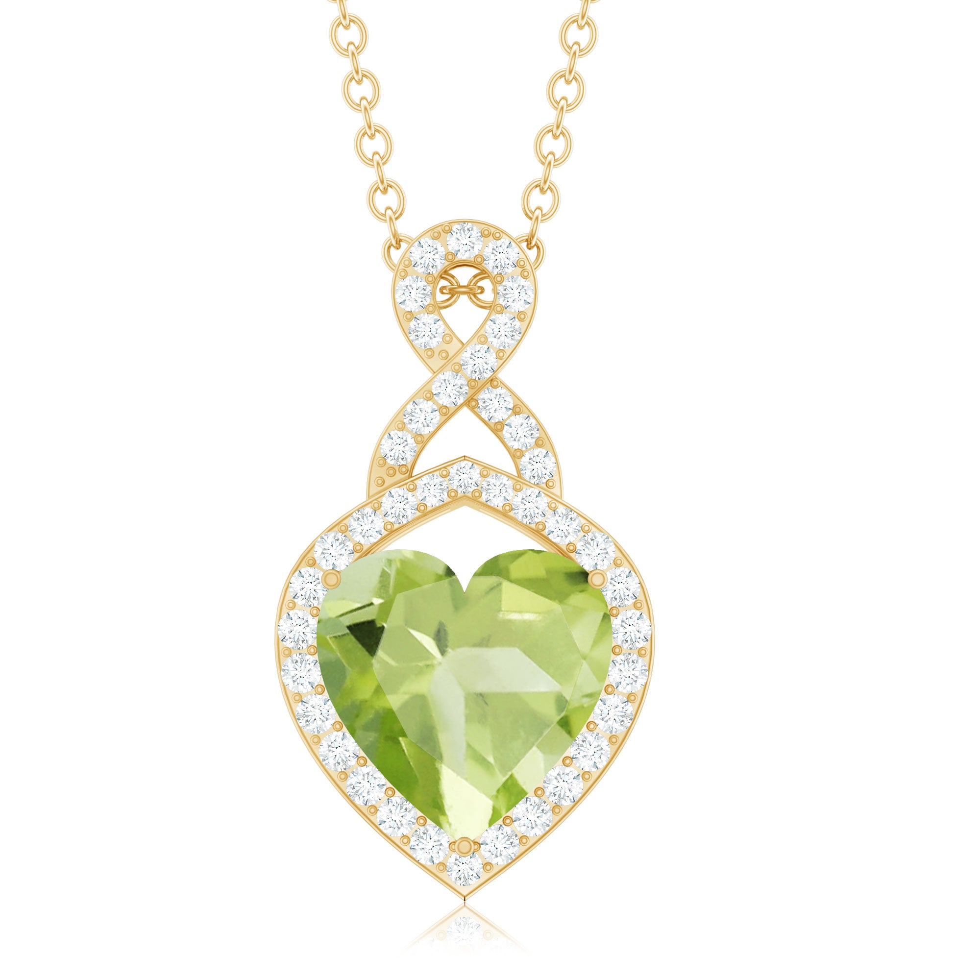 8 MM Heart Shape Peridot Infinity Pendant with Moissanite Accent