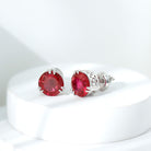 Enhance your style with these Lab Grown Ruby Stud Earrings made from 14K White Gold Plated Silver. These earrings showcase an 8 MM Round Shape lab-created ruby held securely in a 3-Double-Claw-Prong-Setting. The Everyday Earrings shine with the classic brilliance of AAAA Quality Synthetic Ruby. These Ruby Solitaire Earrings make a perfect gift for your loved one on special occasions like birthdays, anniversaries, or Valentine’s Day. Designed in a timeless stud style with a secure screw-back closure, these Solitaire Studs are both stylish and comfortable for all-day wear. We curated them with lab grown ruby, making them affordable and environmentally friendly. Comes with a certificate of authenticity, ensuring their Quality and value and presented in a premium Quality velvet pouch, these Round Stud Earrings upgrade your everyday look with their deep and romantic color.