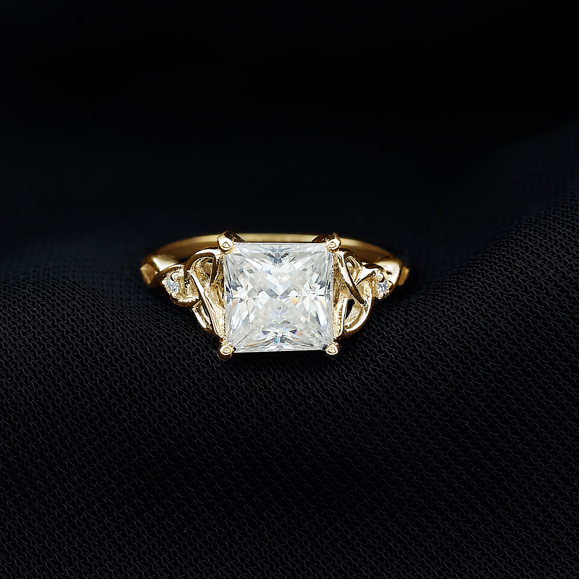 8 MM Princess Cut Moissanite Solitaire Engagement Celtic Ring
