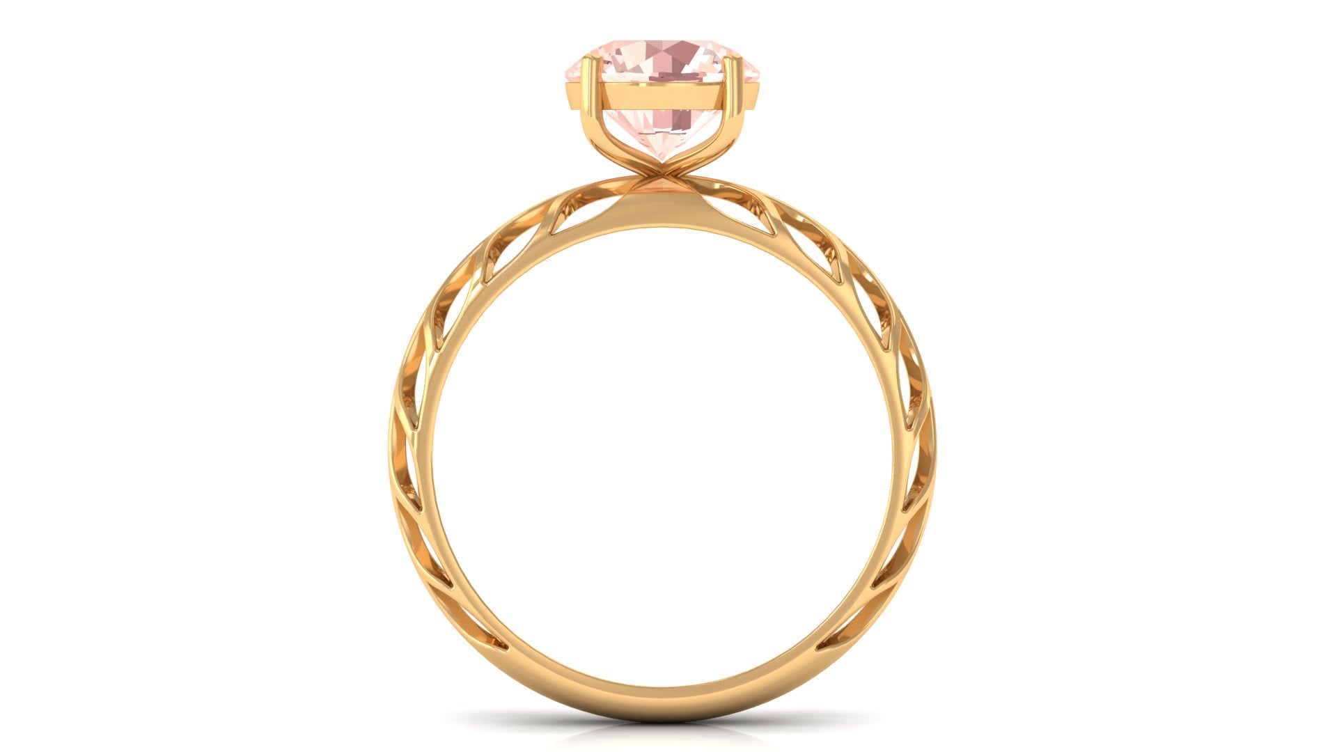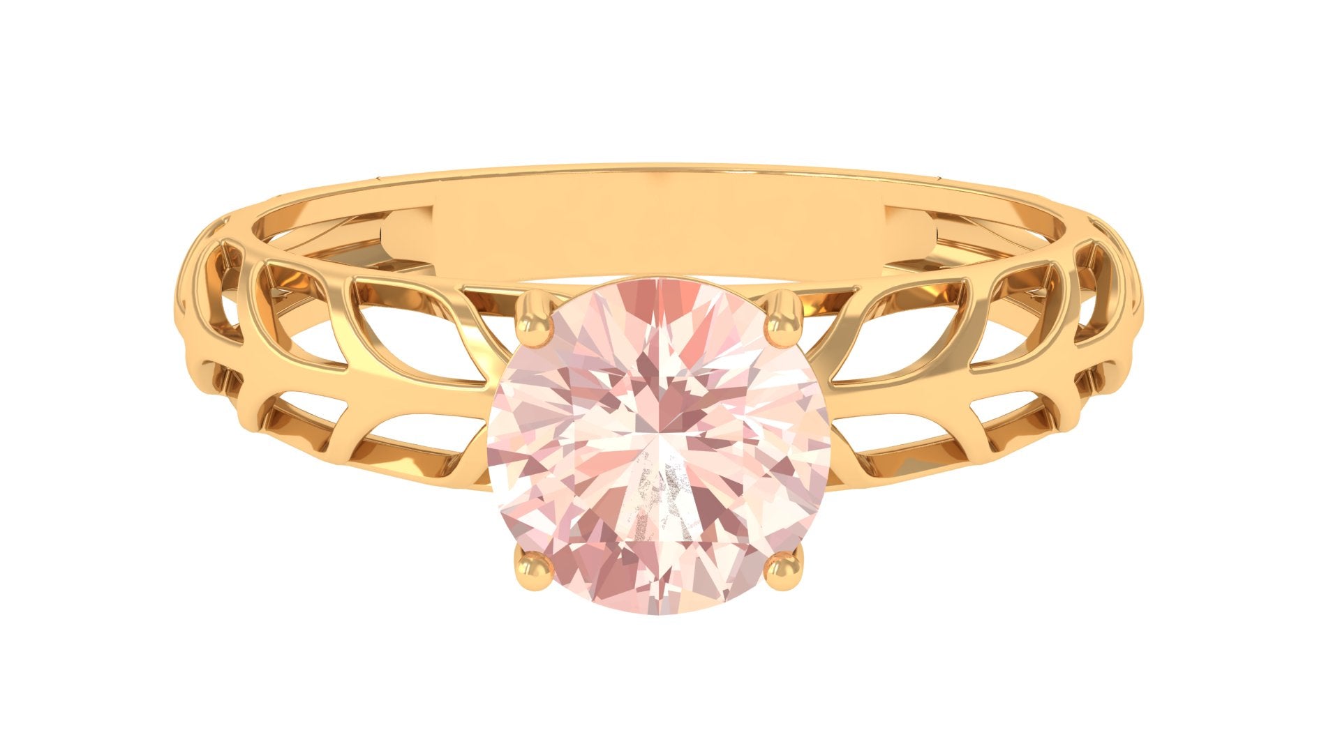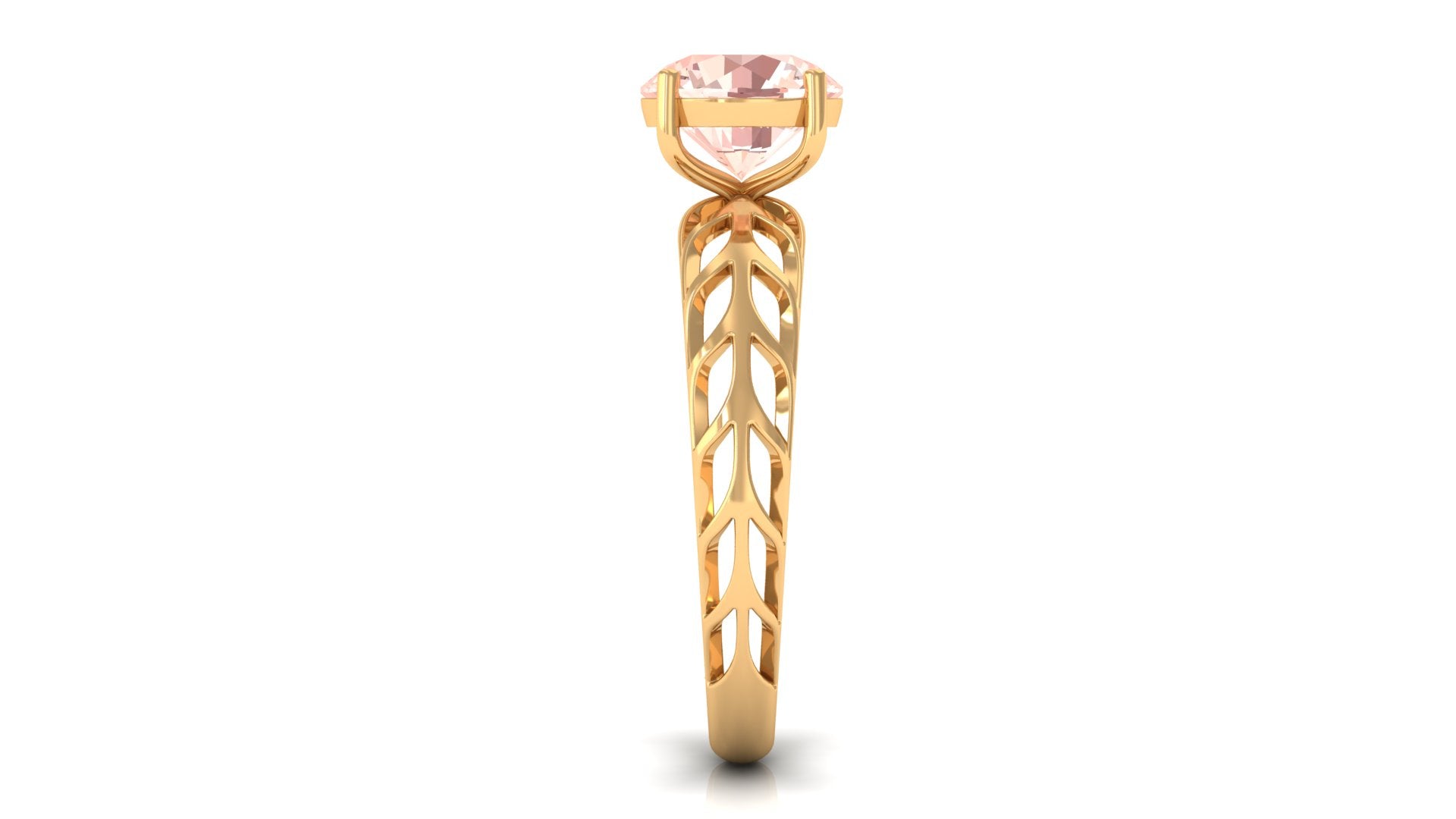 Give an elegant appeal to your evening look with this beautiful Filigree Ring crafted with Solid Gold. This Solitaire Ring is adorned with Round Cut Morganite in Prong Setting to make for a charming jewelry accessory for special occasions.