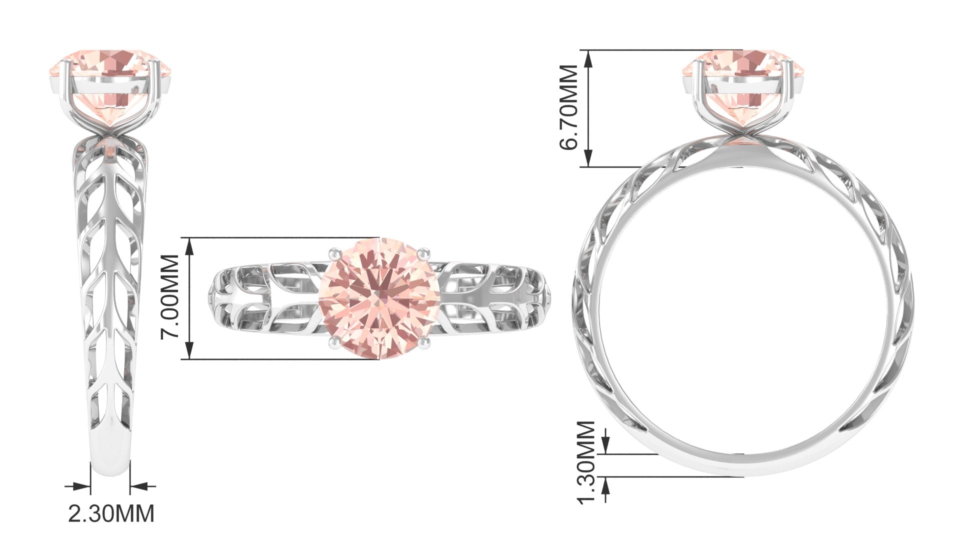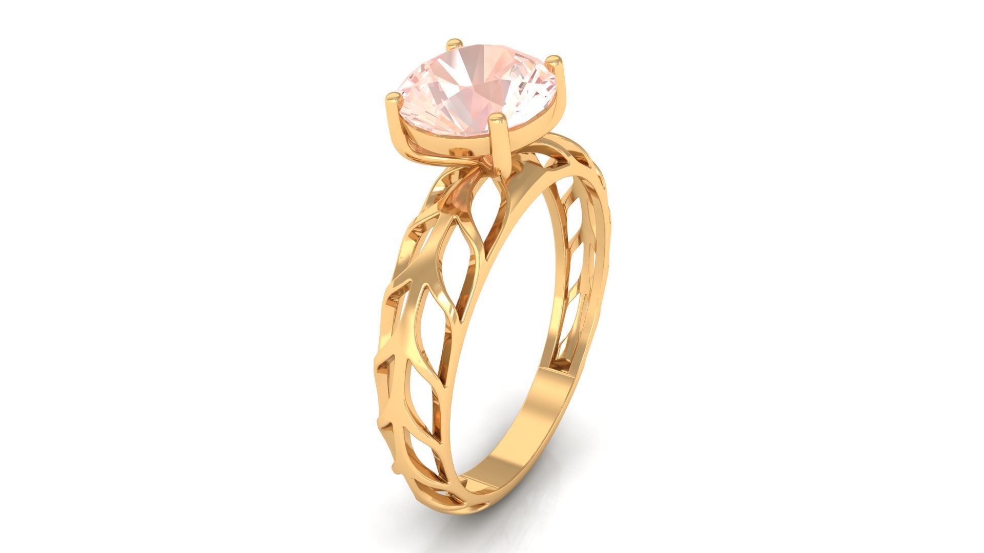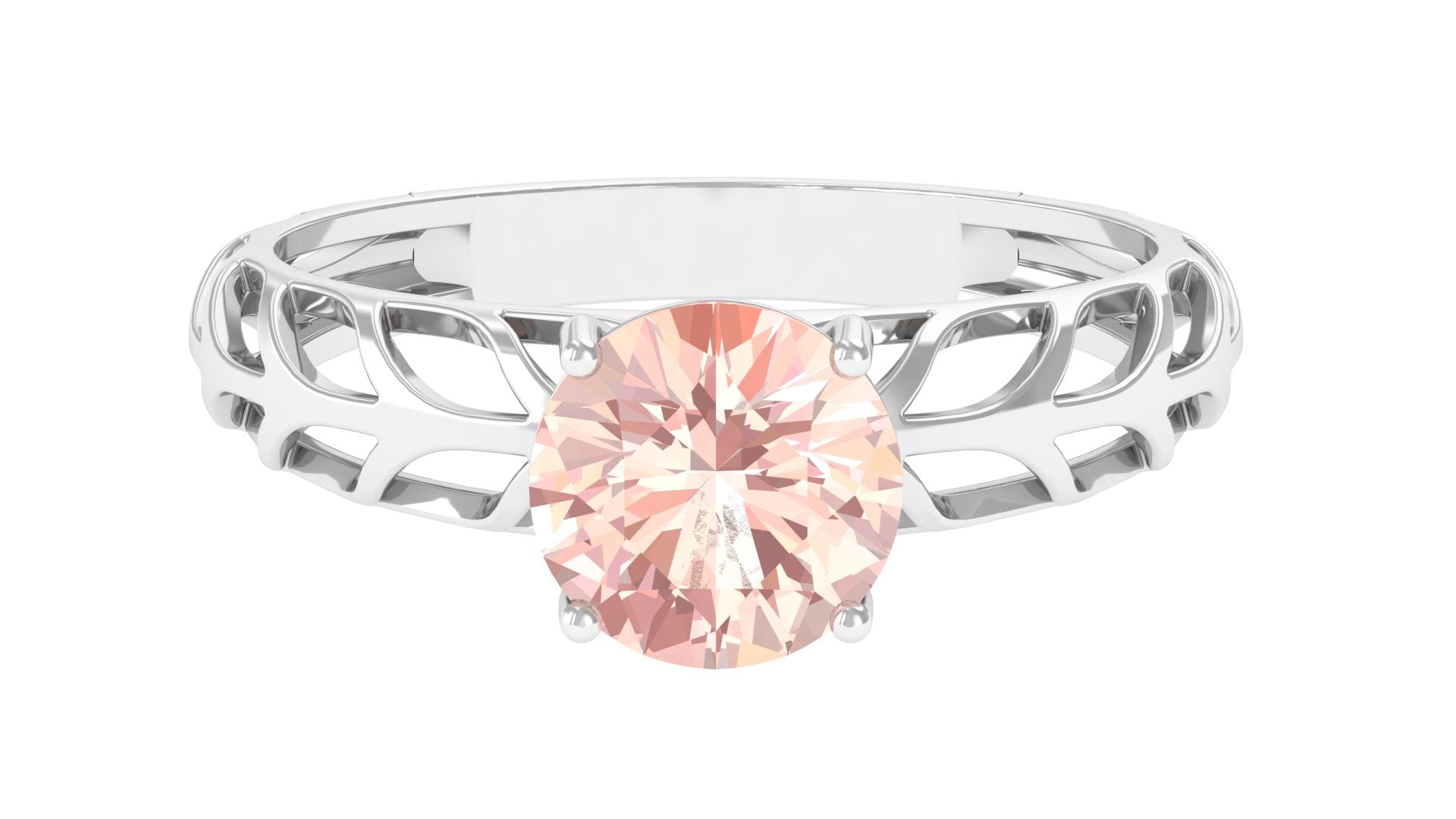 Give an elegant appeal to your evening look with this beautiful Filigree Ring crafted with Solid Gold. This Solitaire Ring is adorned with Round Cut Morganite in Prong Setting to make for a charming jewelry accessory for special occasions.
