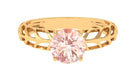 8 MM Round Cut Morganite Solitaire Ring with Gold Filigree Details