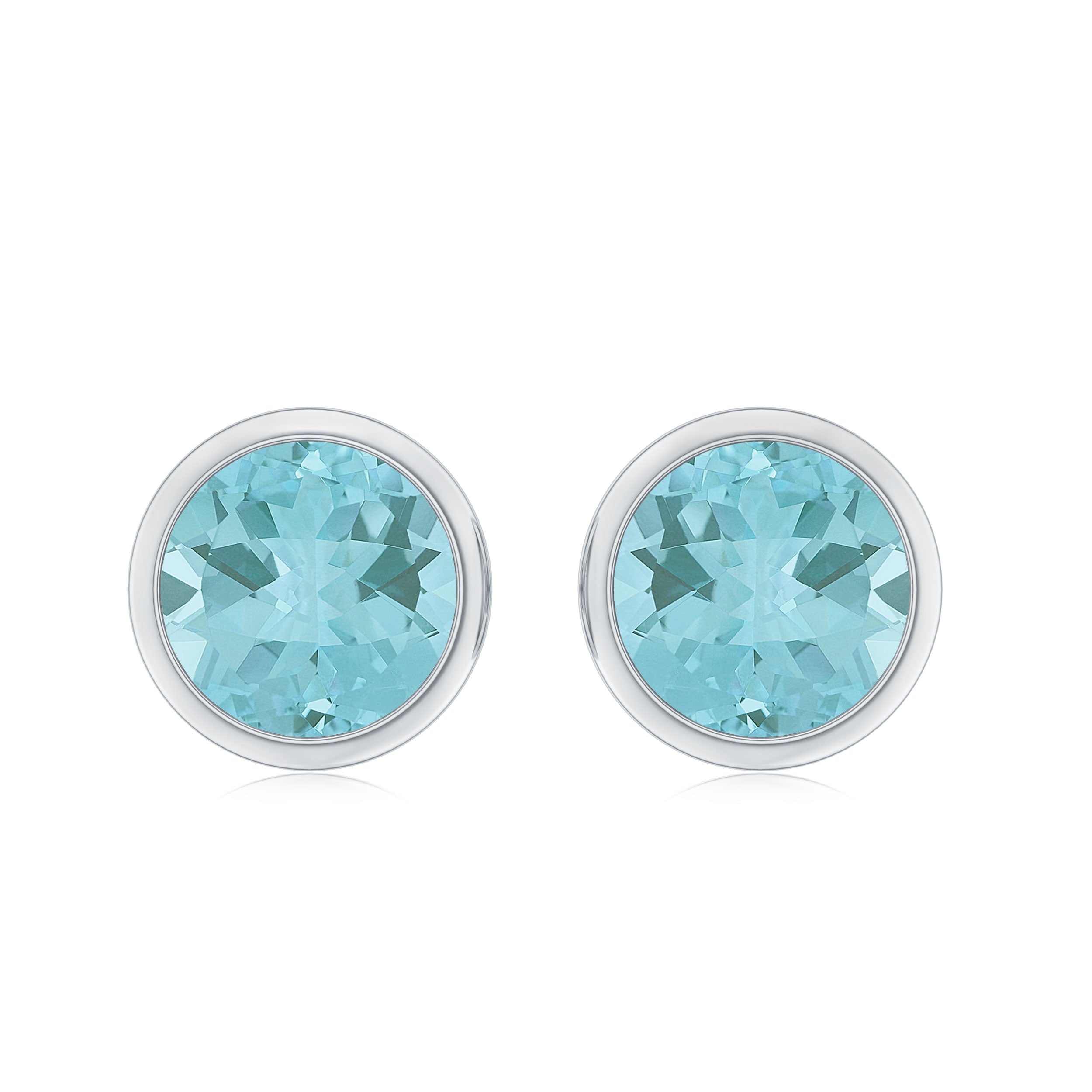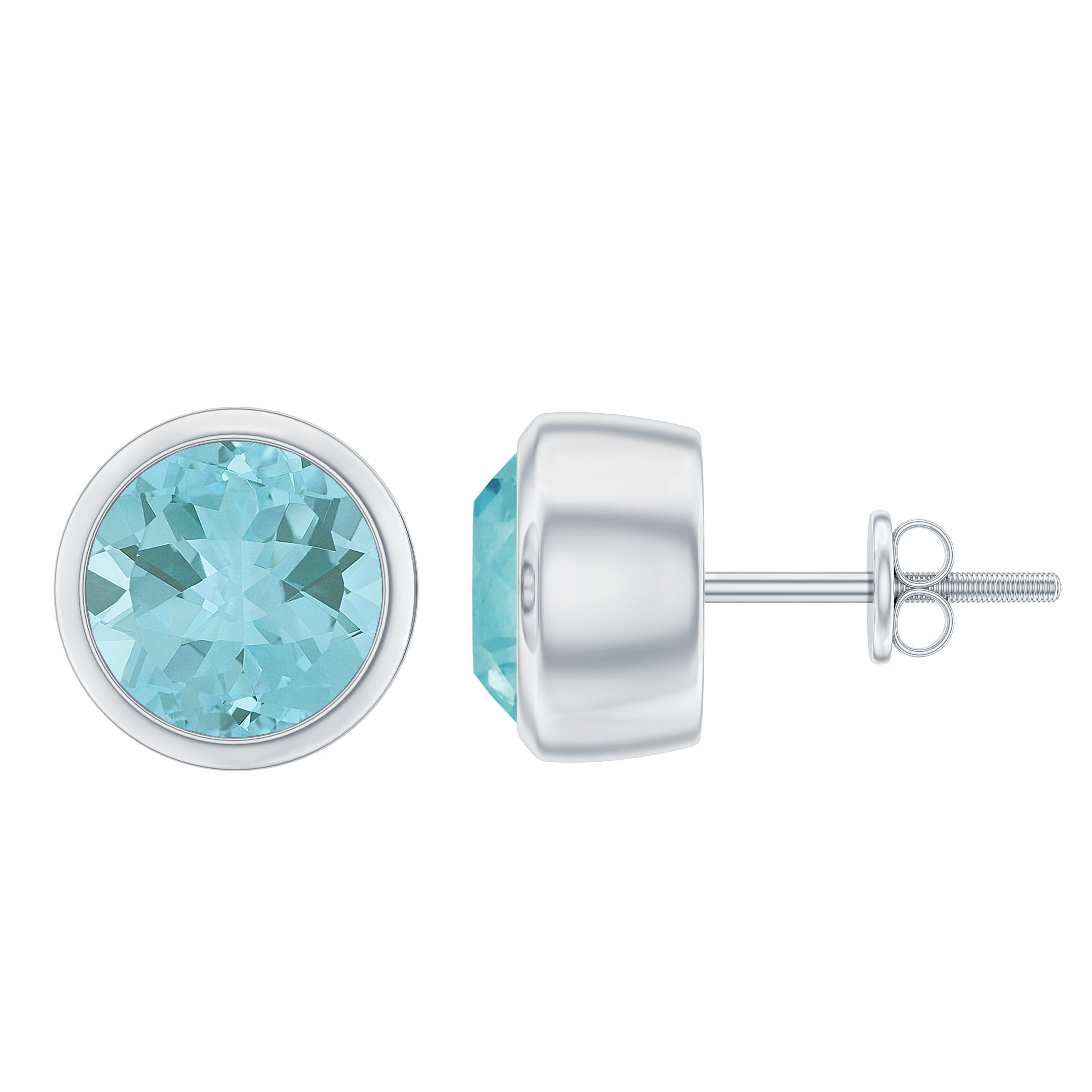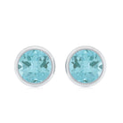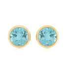 Round Shape Sky Blue Topaz Solitaire Stud Earrings in Bezel Setting