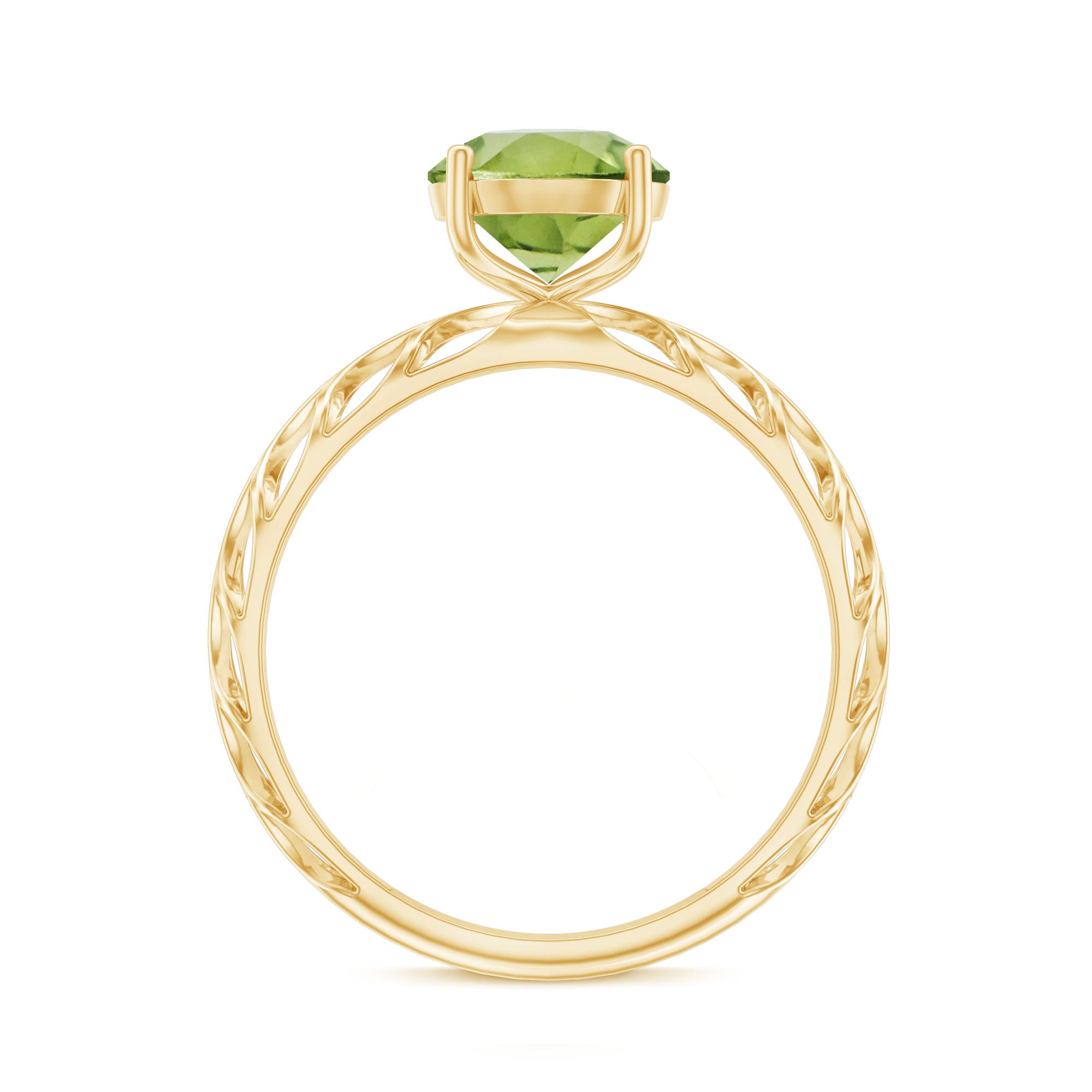 8 MM Round Peridot Solitaire Gold Cut Work Ring in Prong Setting