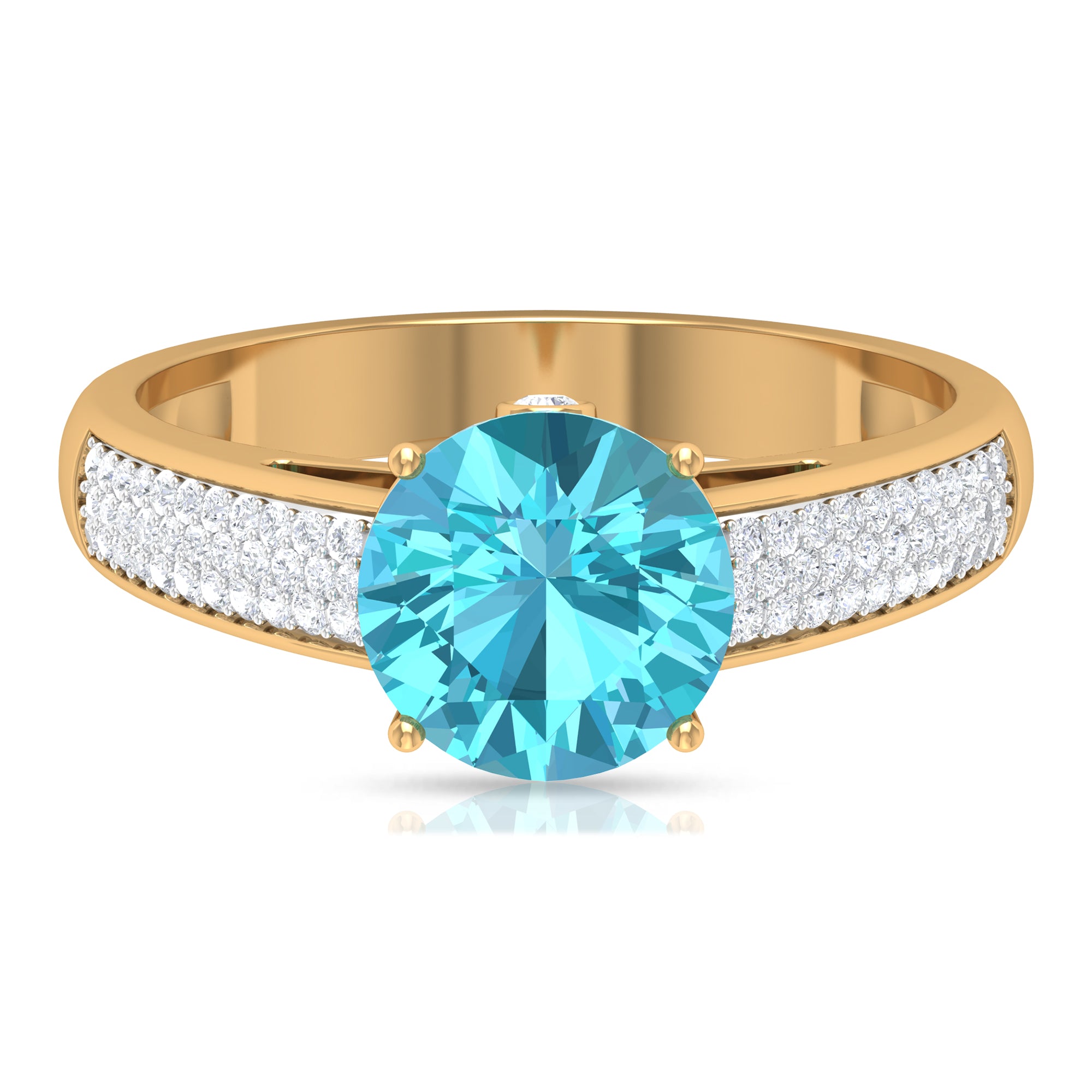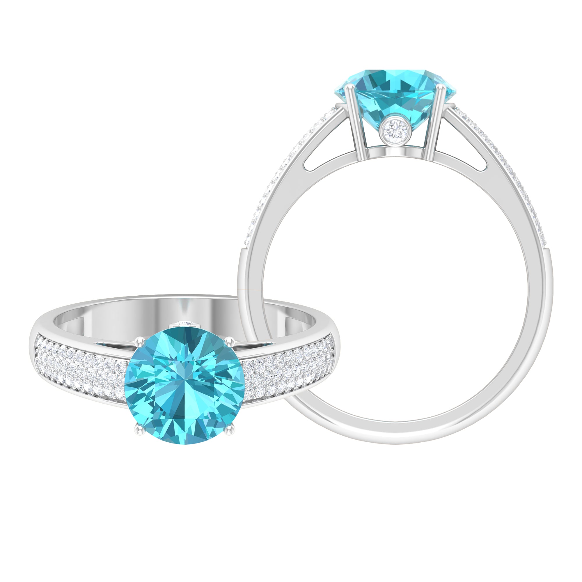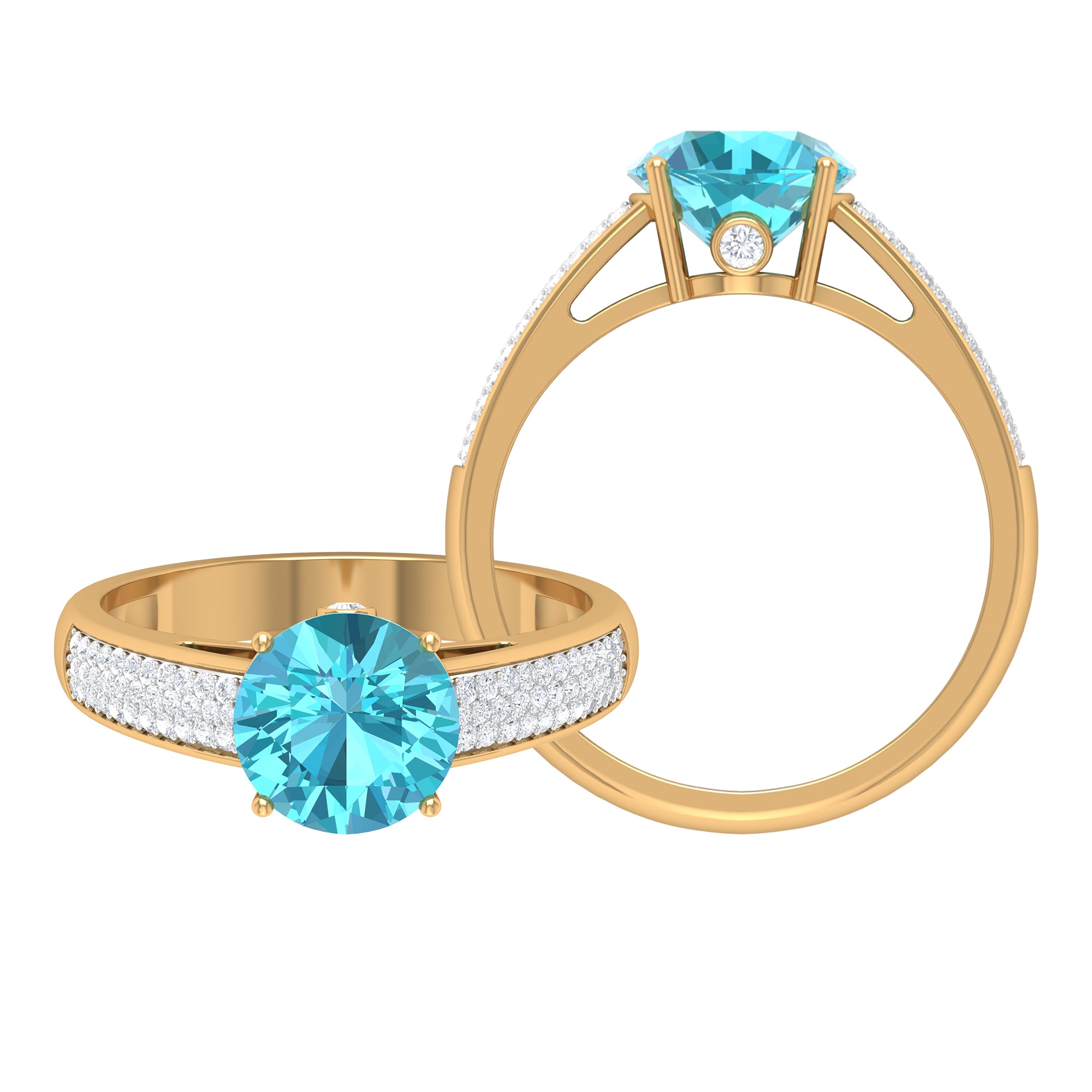 8 MM Round Shape Swiss Blue Topaz Solitaire Ring with Diamond