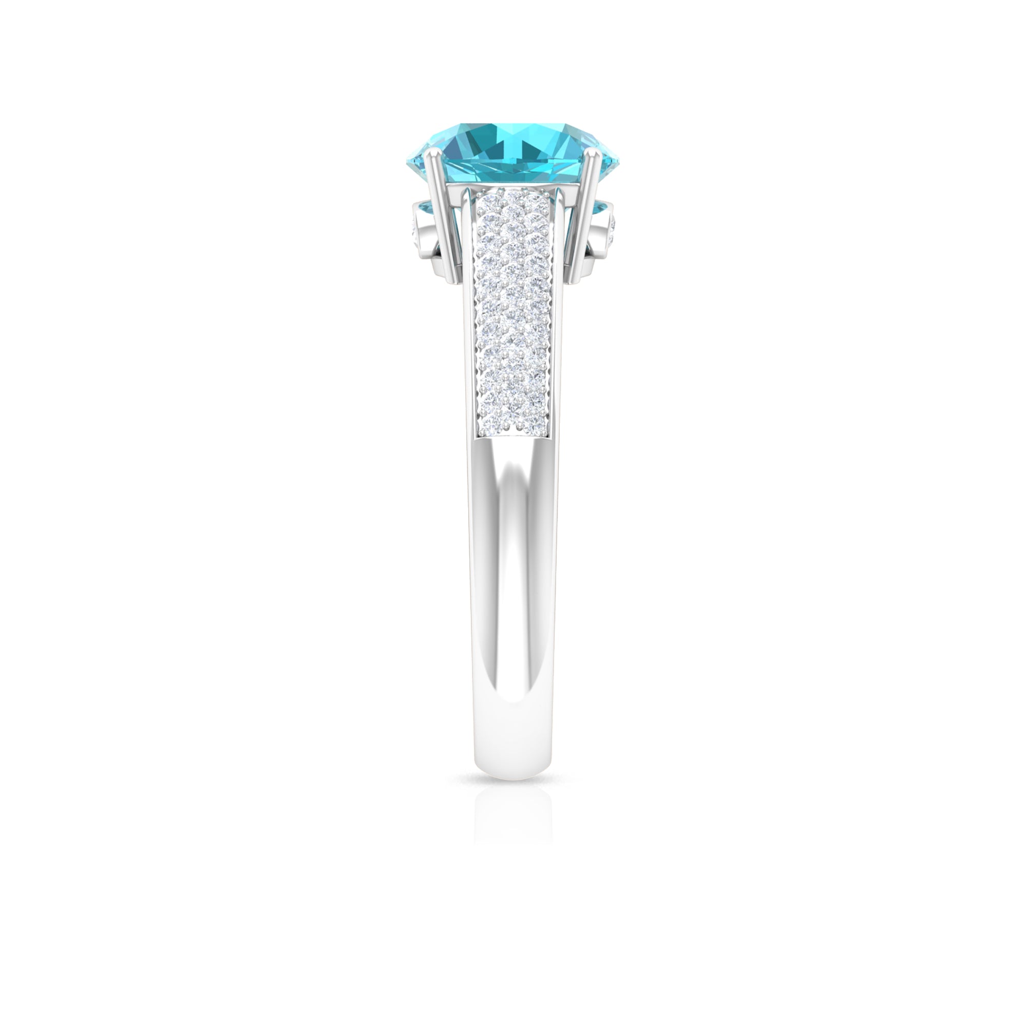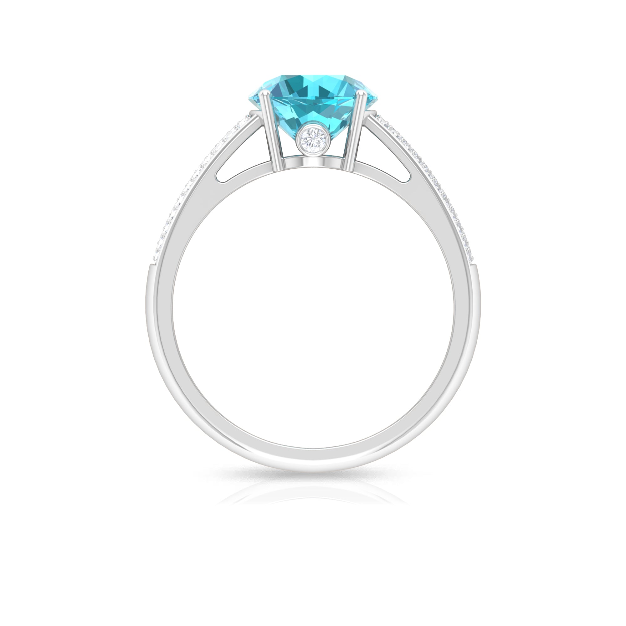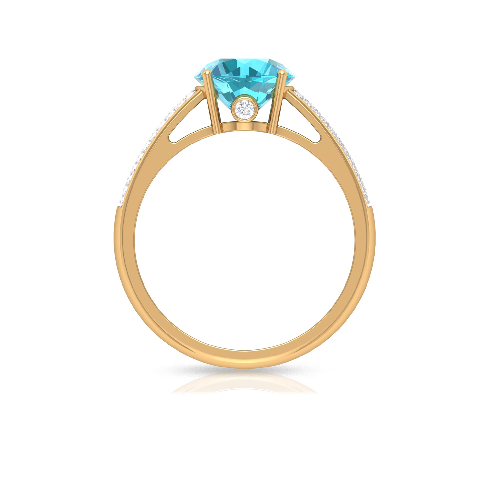 8 MM Round Shape Swiss Blue Topaz Solitaire Ring with Diamond