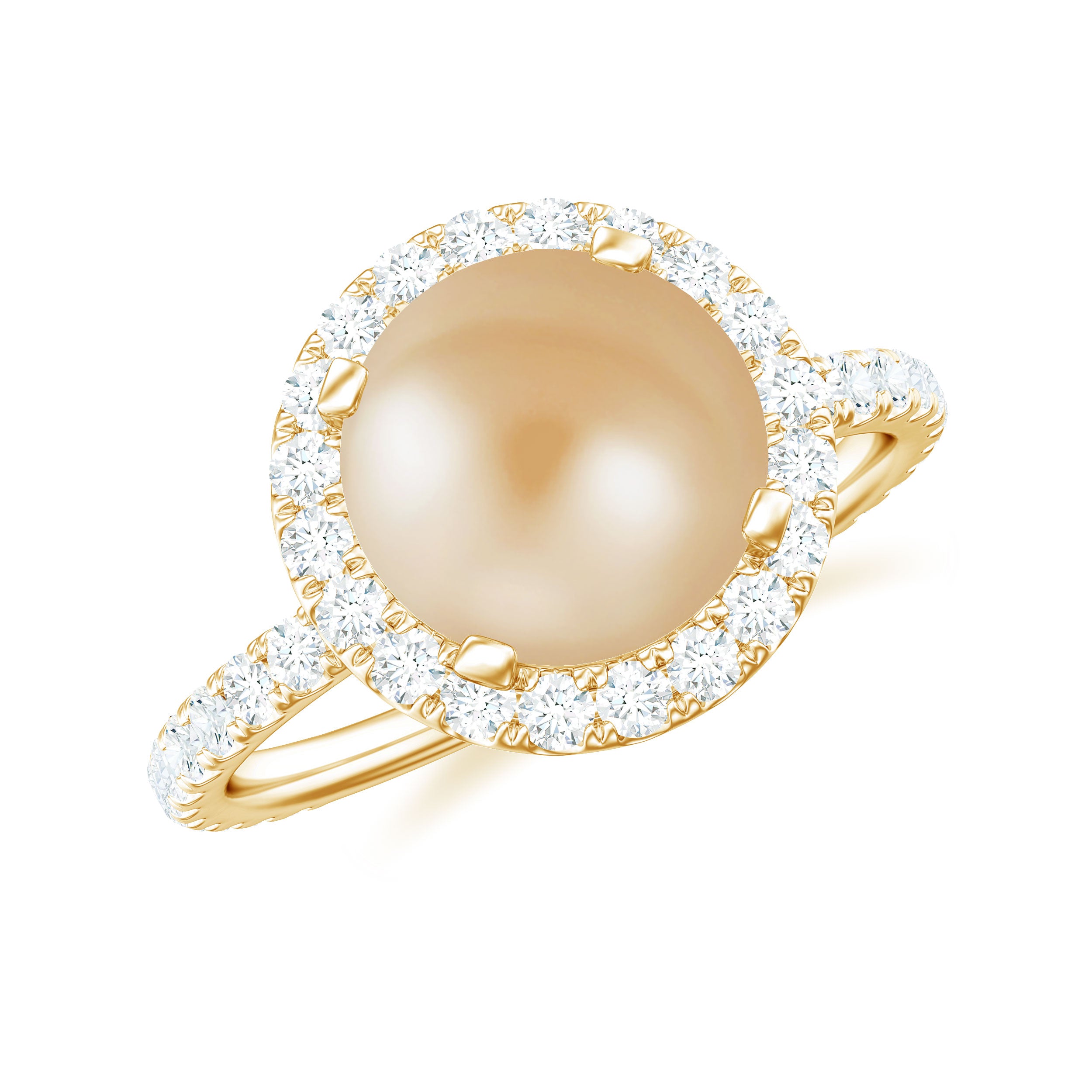 This Gorgeous Ring will definitely make your Love say YESS. It is adorned with a Golden South Sea Pearl as a Solitaire in Bead Set with Brilliant Round Diamonds set as Halo and Side Stones in Pave Setting. This Beautiful Ring is crafted with Solid Gold.