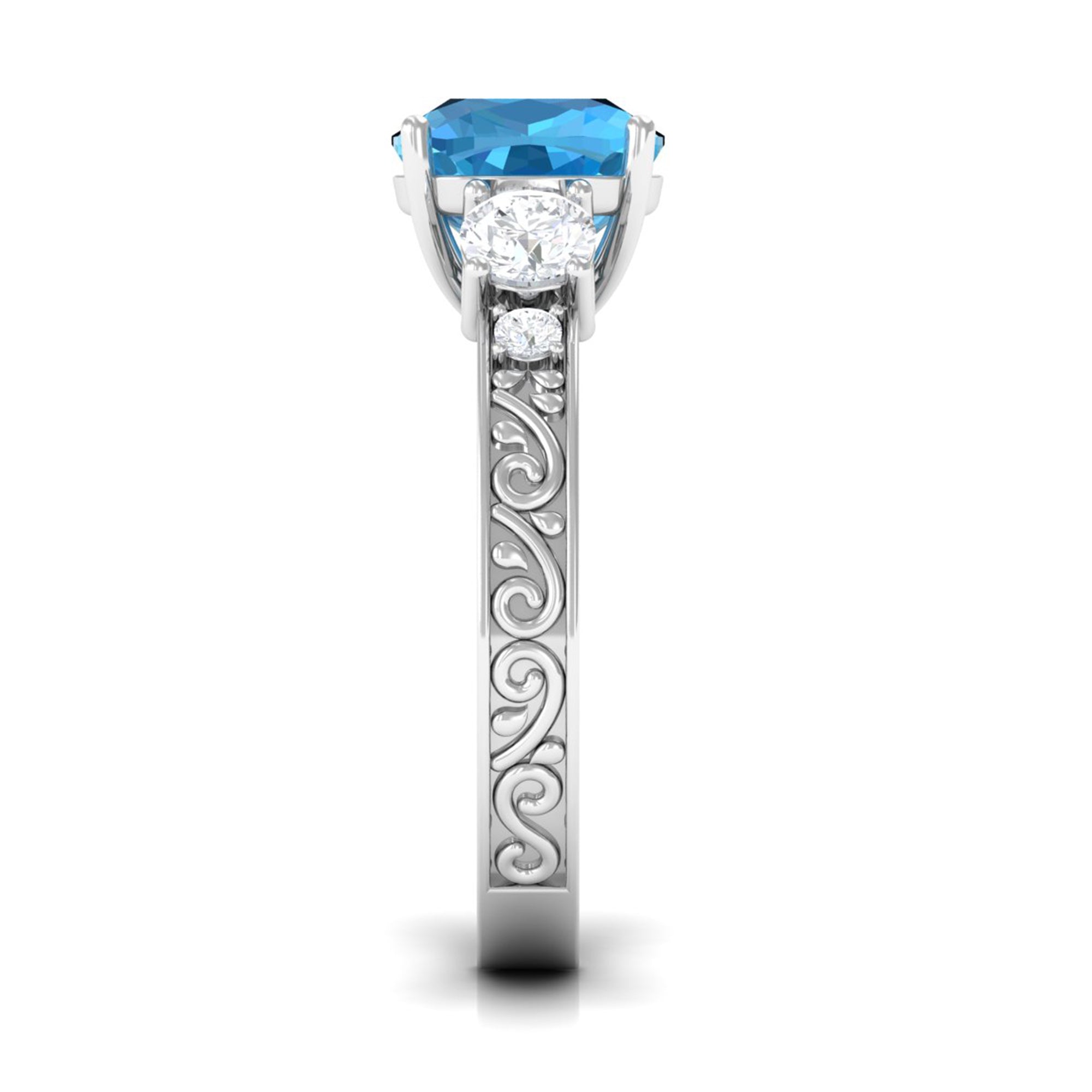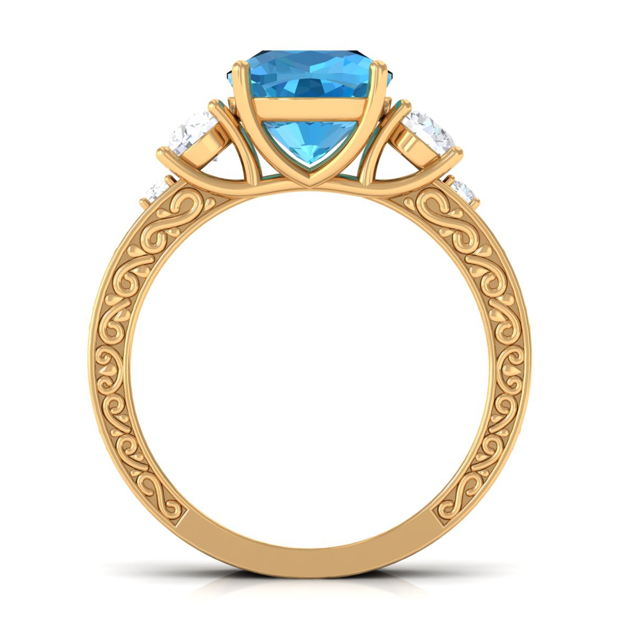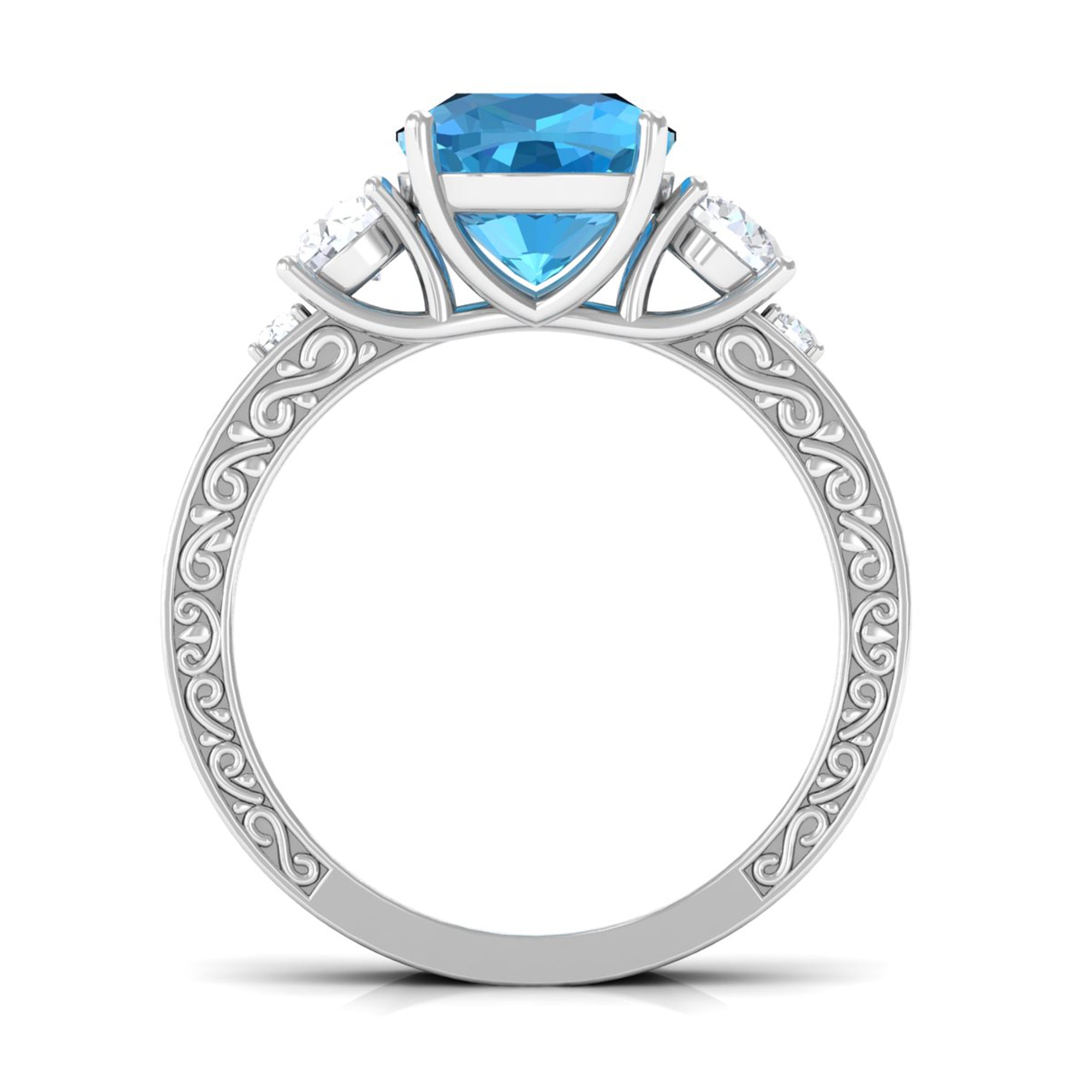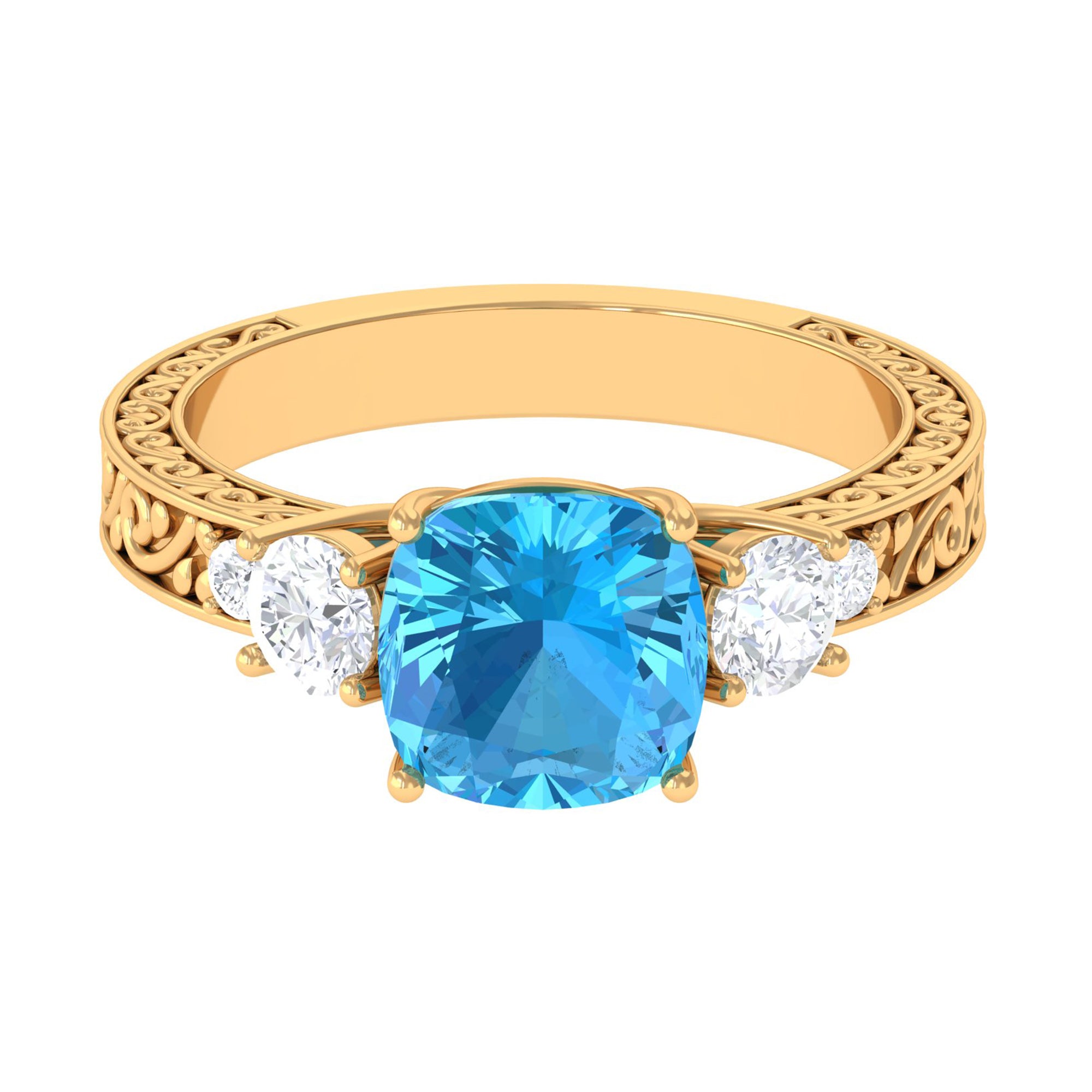 8 MM Three Stone Cushion Cut Swiss Blue Topaz Solitaire with Moissanite Engagement Ring