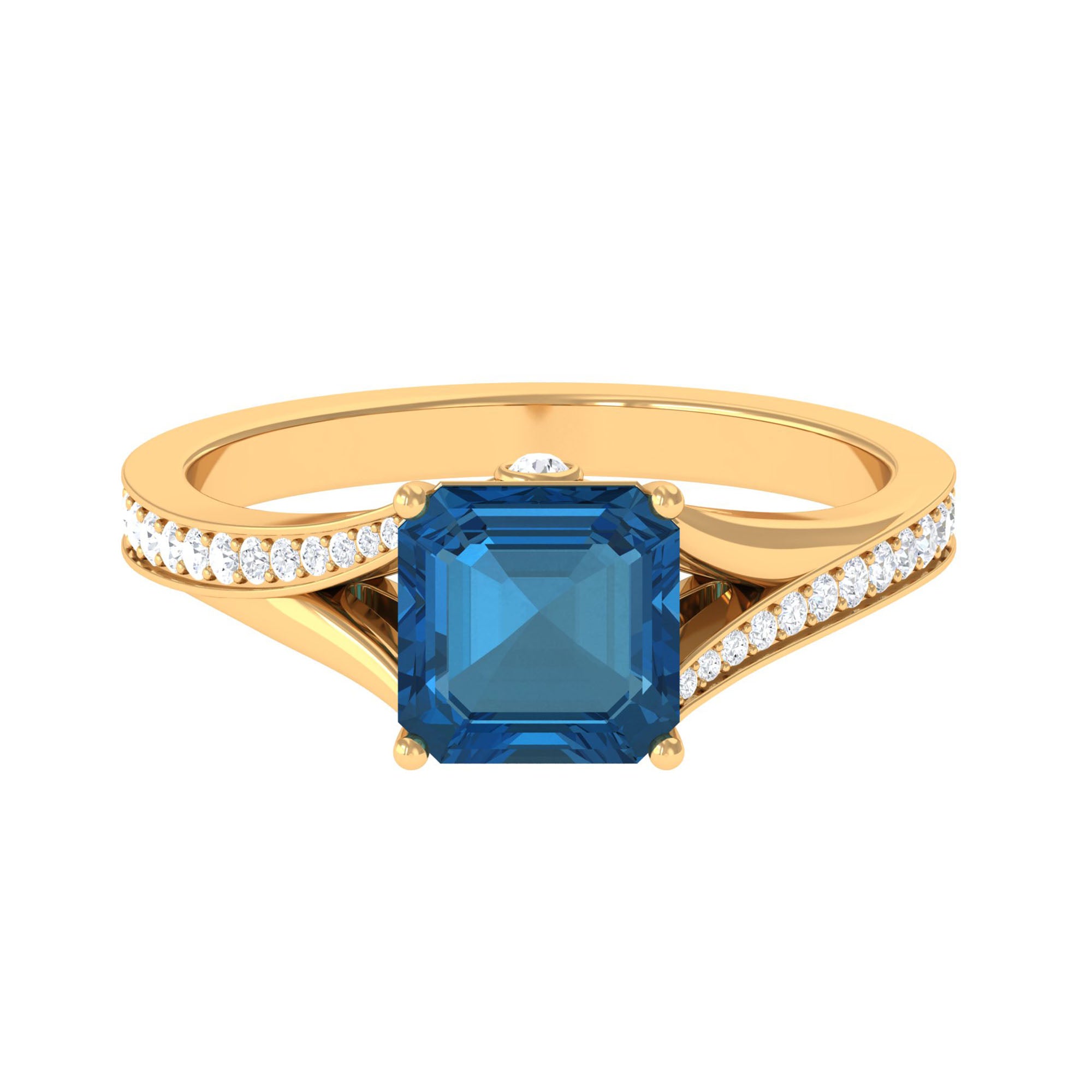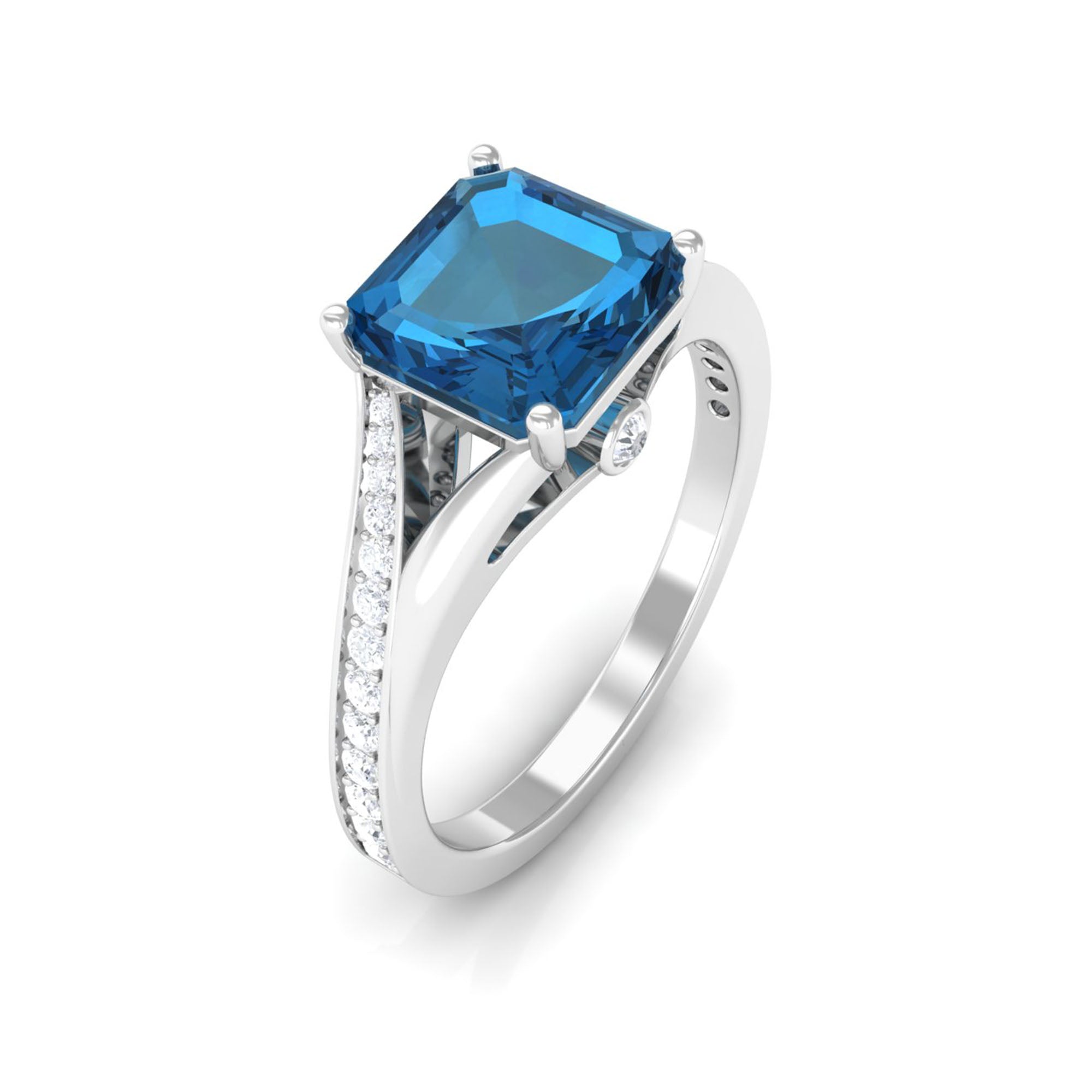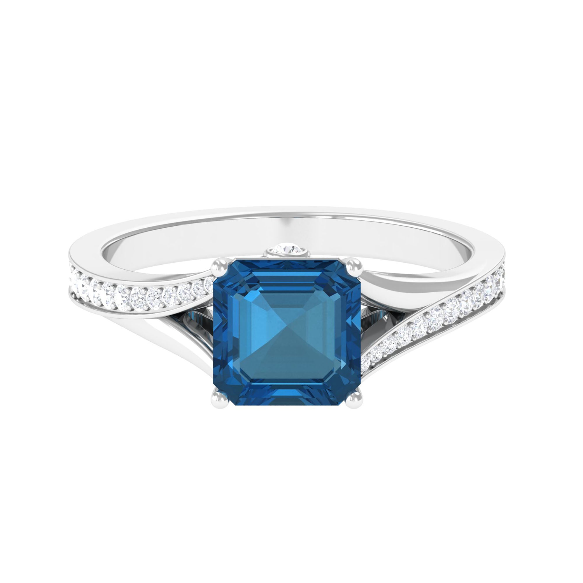 8mm Asscher Cut London Blue Topaz Split Shank Engagement Ring with Diamond
