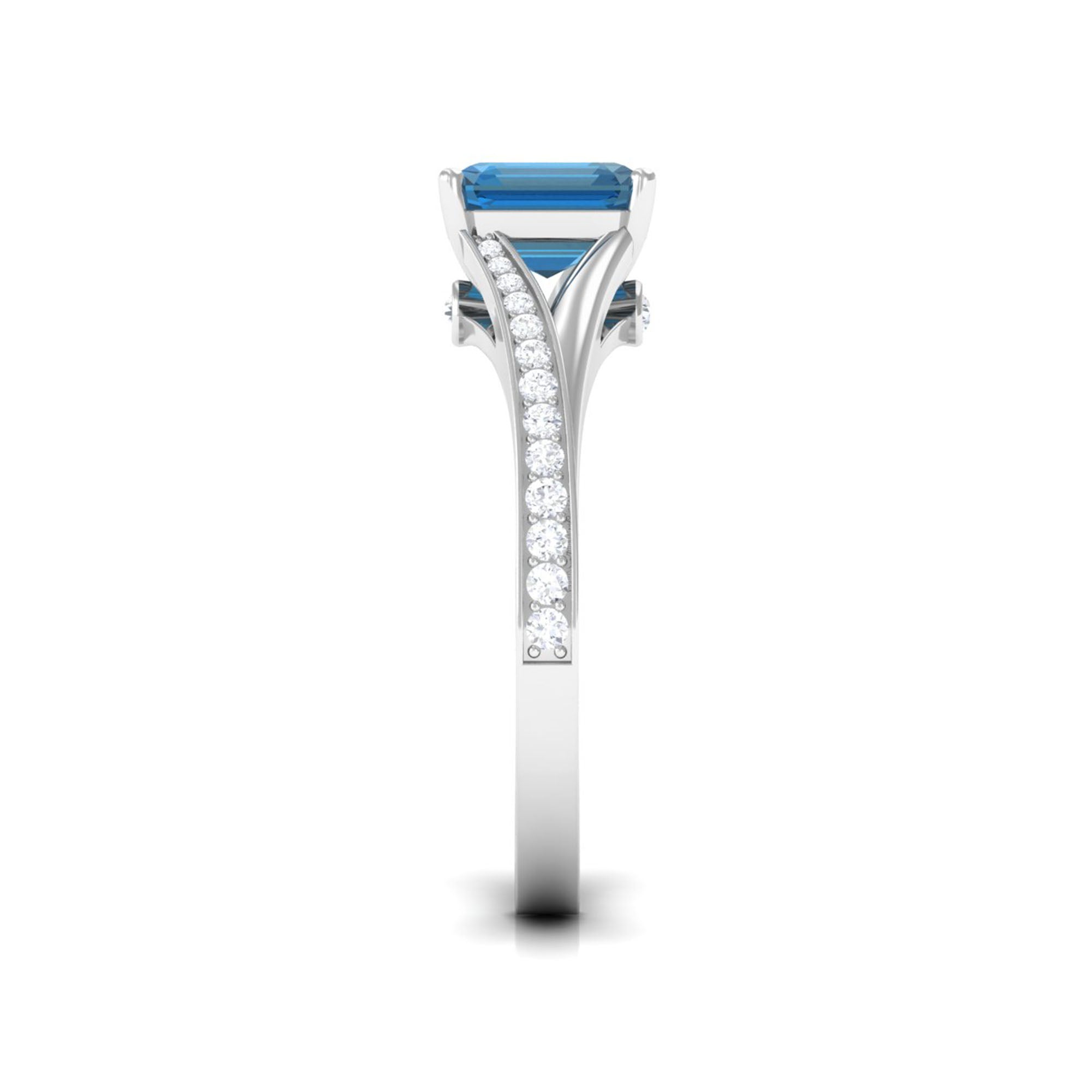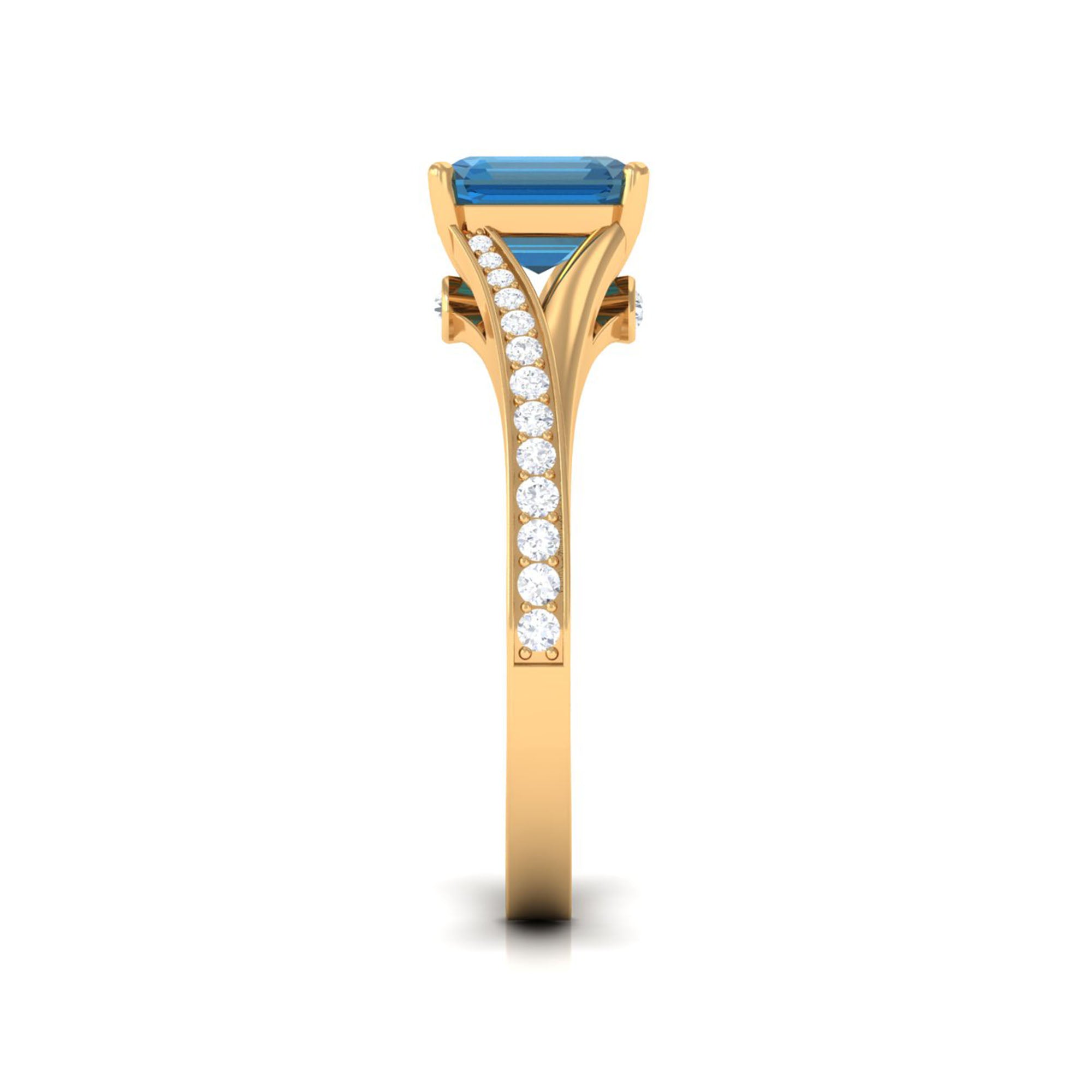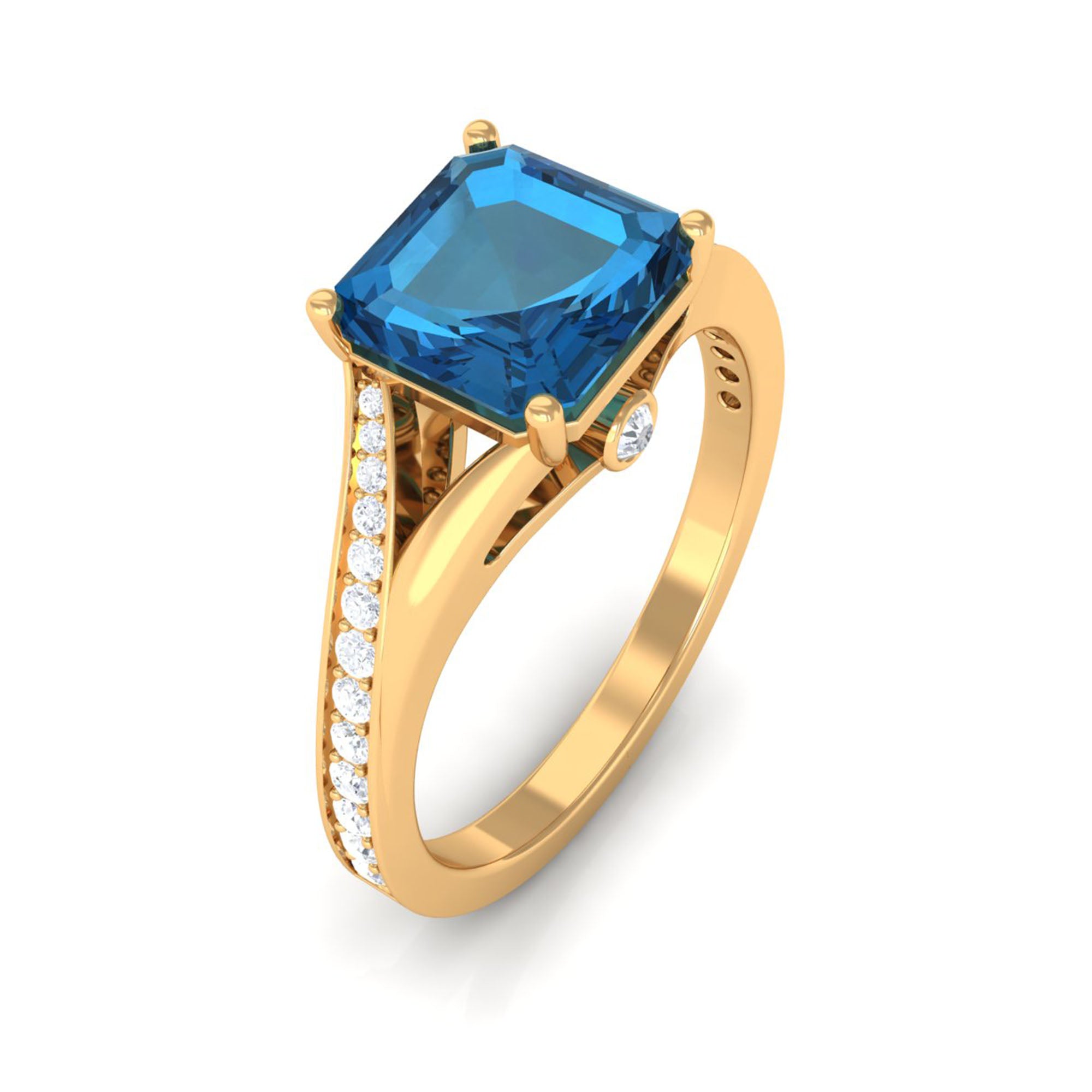 8mm Asscher Cut London Blue Topaz Split Shank Engagement Ring with Diamond