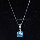 8MM Blue Cubic Zirconia Solitaire Necklace with Silver Chain