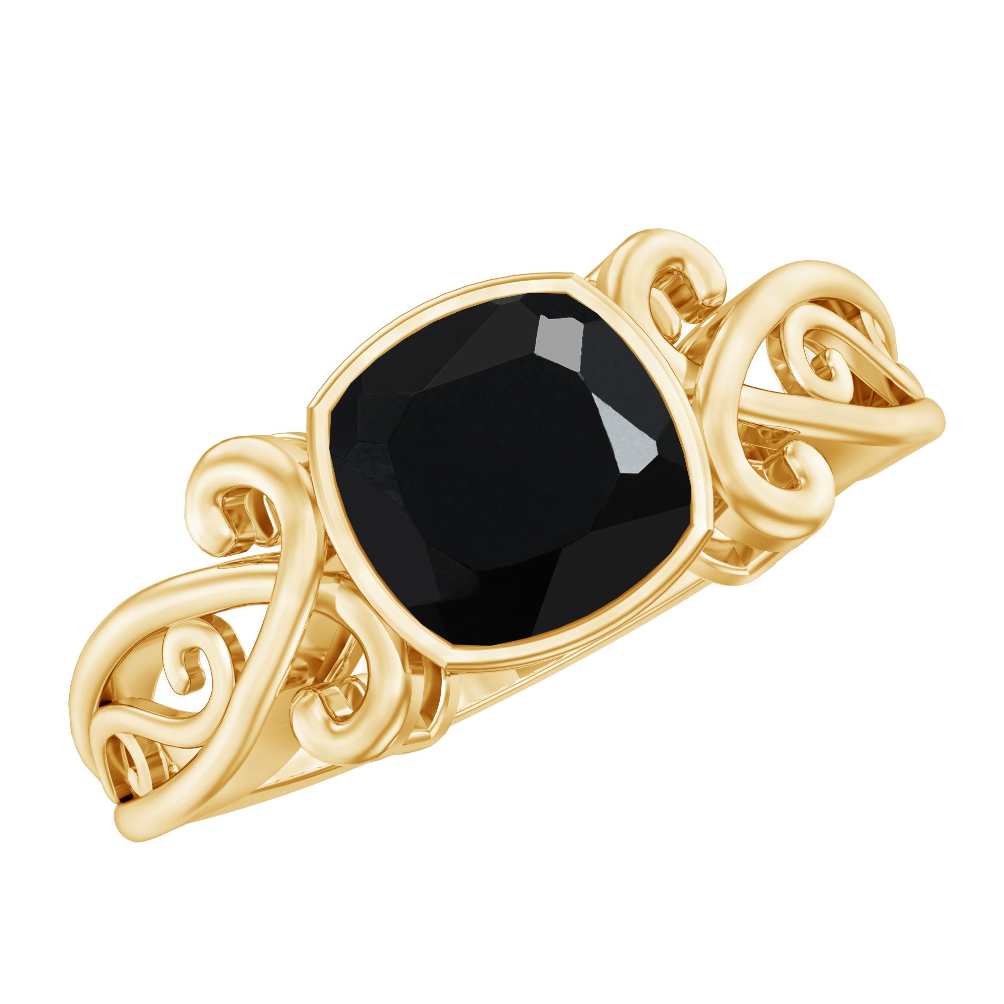 Crafted with a hint of history, this Vintage Onyx Engagement Ring possesses a beauty that remains timeless. Drawing inspiration from antique styles, this Art Deco Ring is ideal for those who appreciate classic sophistication combined with a contemporary sparkle. At its heart, a 8 mm Cushion Cut Black Onyx set at the center as Solitaire, in secured bezel setting. The band is further embellished with cutwork design, providing brilliance from every perspective and resulting in a truly captivating piece. Constructed with AAA quality Black Onyx stone, this Antique Style Engagement Ring radiates beautifully and delivers a luminous shine, all without the exorbitant price tag. This Vintage Engagement Ring harmonizes traditional beauty with a modern flair, serving as a significant emblem of eternity. It is offered in a variety of metal colors and purity levels, allowing you to select the option that best reflects your personal style. Additionally, it is presented in an exquisitely designed jewelry box, perfect for gifting or commemorating a special occasion. Elegant, distinctive, and brimming with charm, this Retro Engagement Ring is a timeless treasure you will hold dear for years to come.