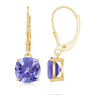 Elevate her special day to new heights of memorability with these stunning Tanzanite Drop Earrings. These exquisite Solitaire Earrings feature an 8 MM Cushion Cut Lab Created Tanzanite, beautifully nestled in prong setting. The addition of a lever back adds a charming and captivating touch to these Cushion Cut Earrings, ensuring they catch the eye and capture the heart. Present the gift of timeless beauty and elegance with these enchanting Lab Created Tanzanite Earrings, a symbol of your affection and thoughtfulness. Their timeless yet modern appeal makes them a versatile addition to any jewelry collection, perfect for evening events, weddings, or simply adding sophistication to an everyday outfit. The refined combination of the sparkling stone and polished metal offers a unique statement of beauty and strength. Ethically made and eco-friendly, these Dangle Drop Earrings are crafted to last, offering both elegance and peace of mind.