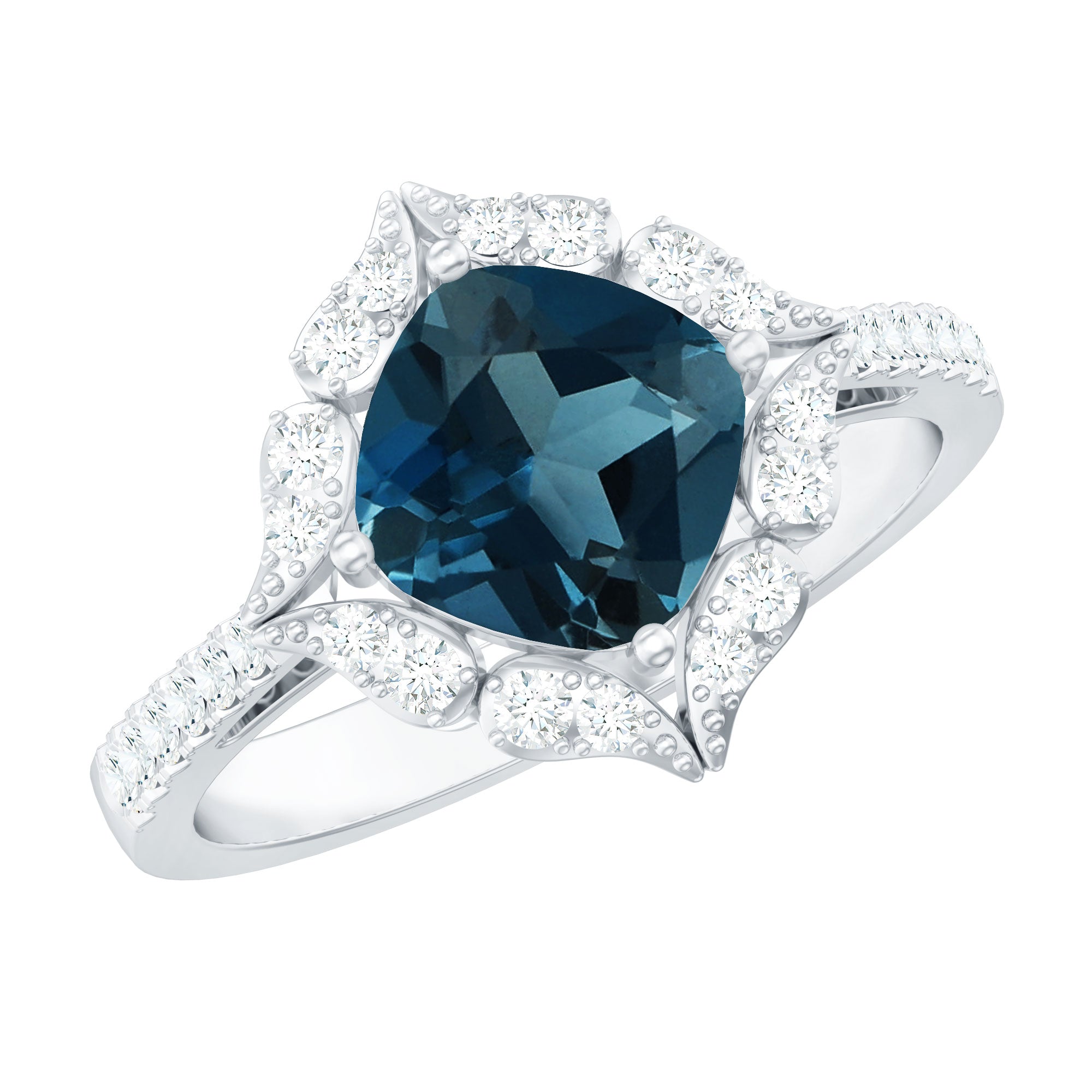 8mm Cushion Cut London Blue Topaz Nature Engagement Ring with Diamond Halo
