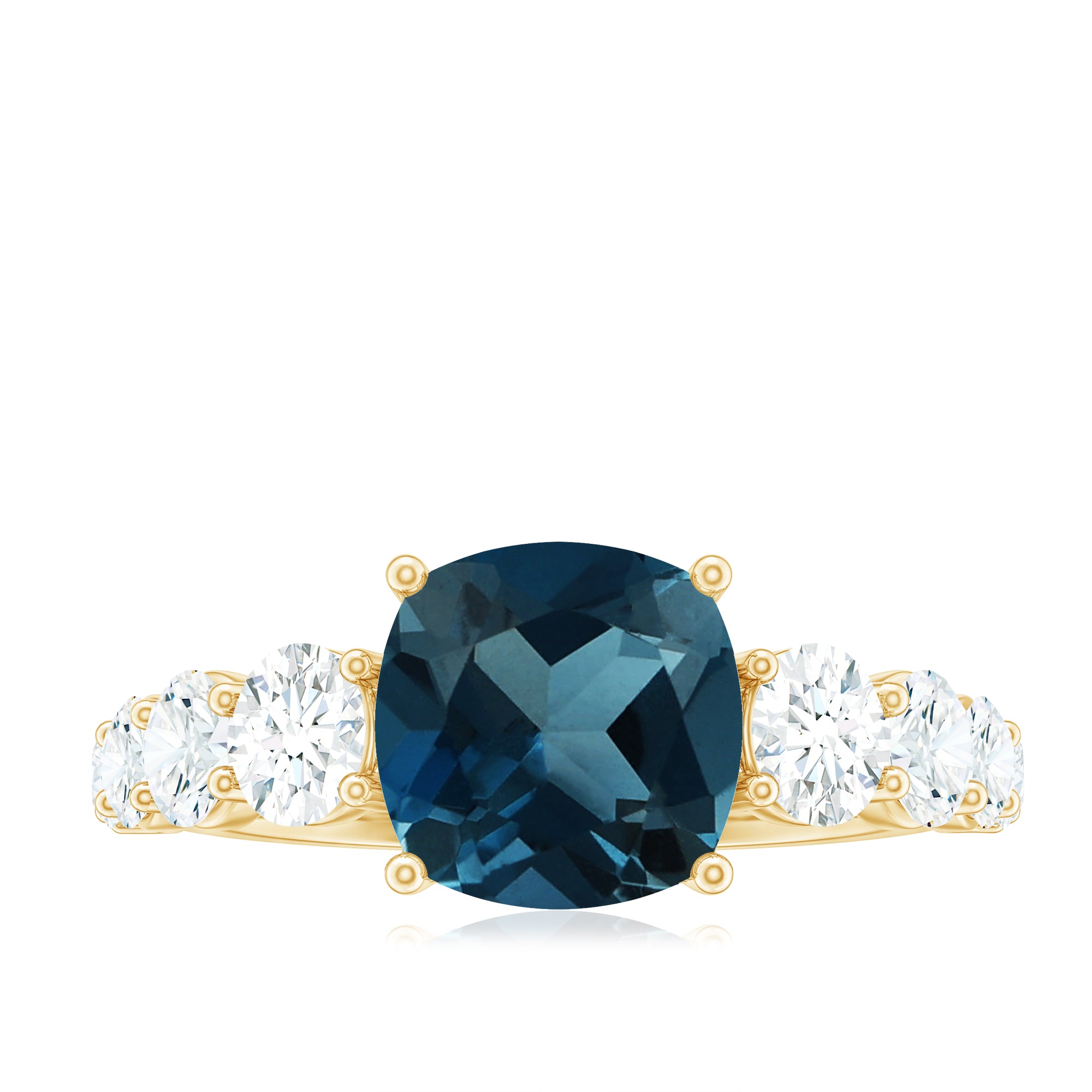 8mm Cushion Cut London Blue Topaz Solitaire Engagement Ring with Moissanite Side Stones