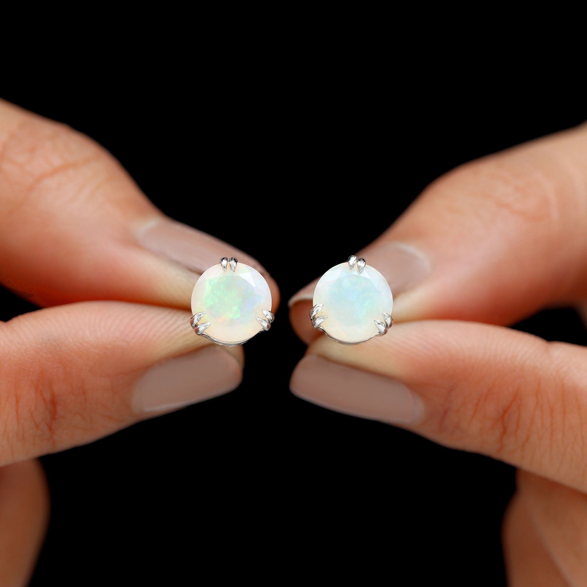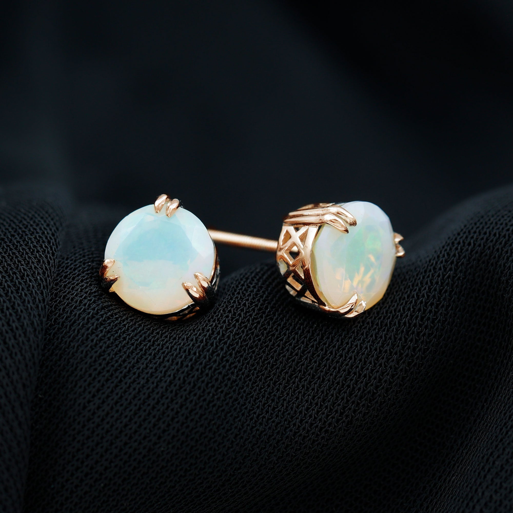 Soft color and gentle glow make these Ethiopian Opal Earrings a beautiful choice for everyday wear. Features an 8 MM round Ethiopian Opal set securely in 3-double-claw prong setting. As the birthstone for October, Ethiopian opal brings meaning along with beauty. These Opal Stud Earrings make a thoughtful gift for someone born in October or anyone who loves gemstones with natural character. Designed for daily comfort, the Rainbow Opal Earrings are lightweight and smooth on the ears. The screw back closures keep them secure all day, whether you are heading to work, running errands, or dressing up for a simple outing. The AAA quality Ethiopian opals offer brightness and charm while remaining gentle enough for everyday style. Whether worn alone or matched with other jewelry pieces, they add a touch of color that feels natural and effortless. Perfect as a birthday gift, a personal treat, or a meaningful October birthstone accessory, these Ethiopian Opal Stud Earrings bring warmth, elegance, and easy beauty to your daily look.