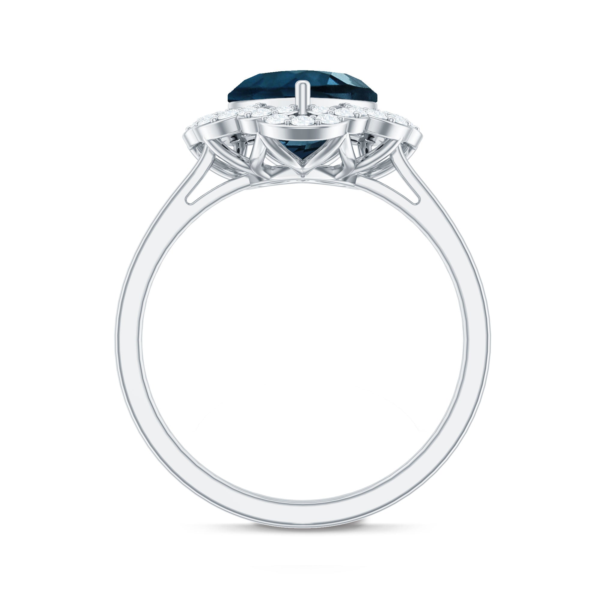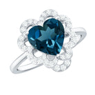 8mm Heart Shape London Blue Topaz Designer Engagement Ring with Diamond Halo