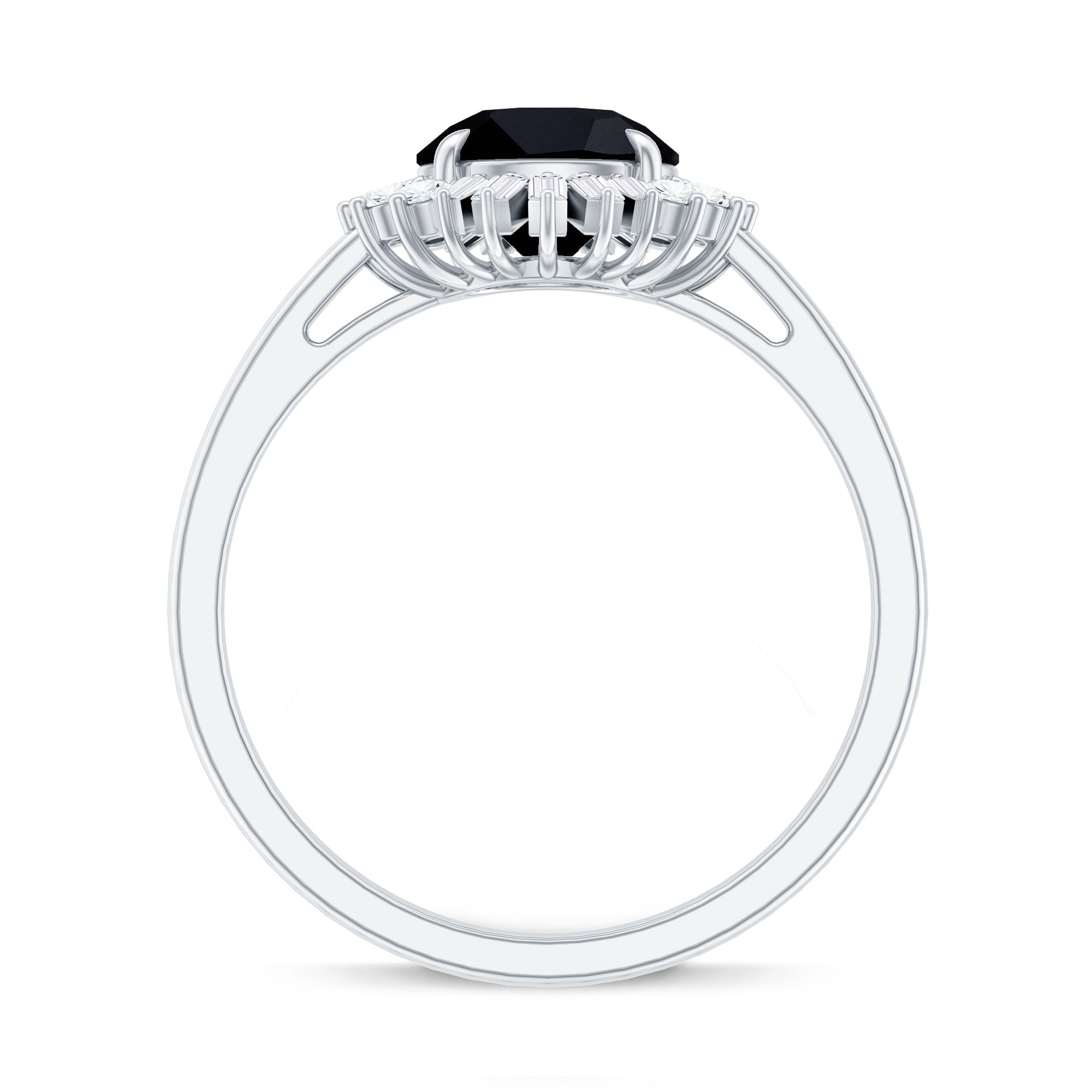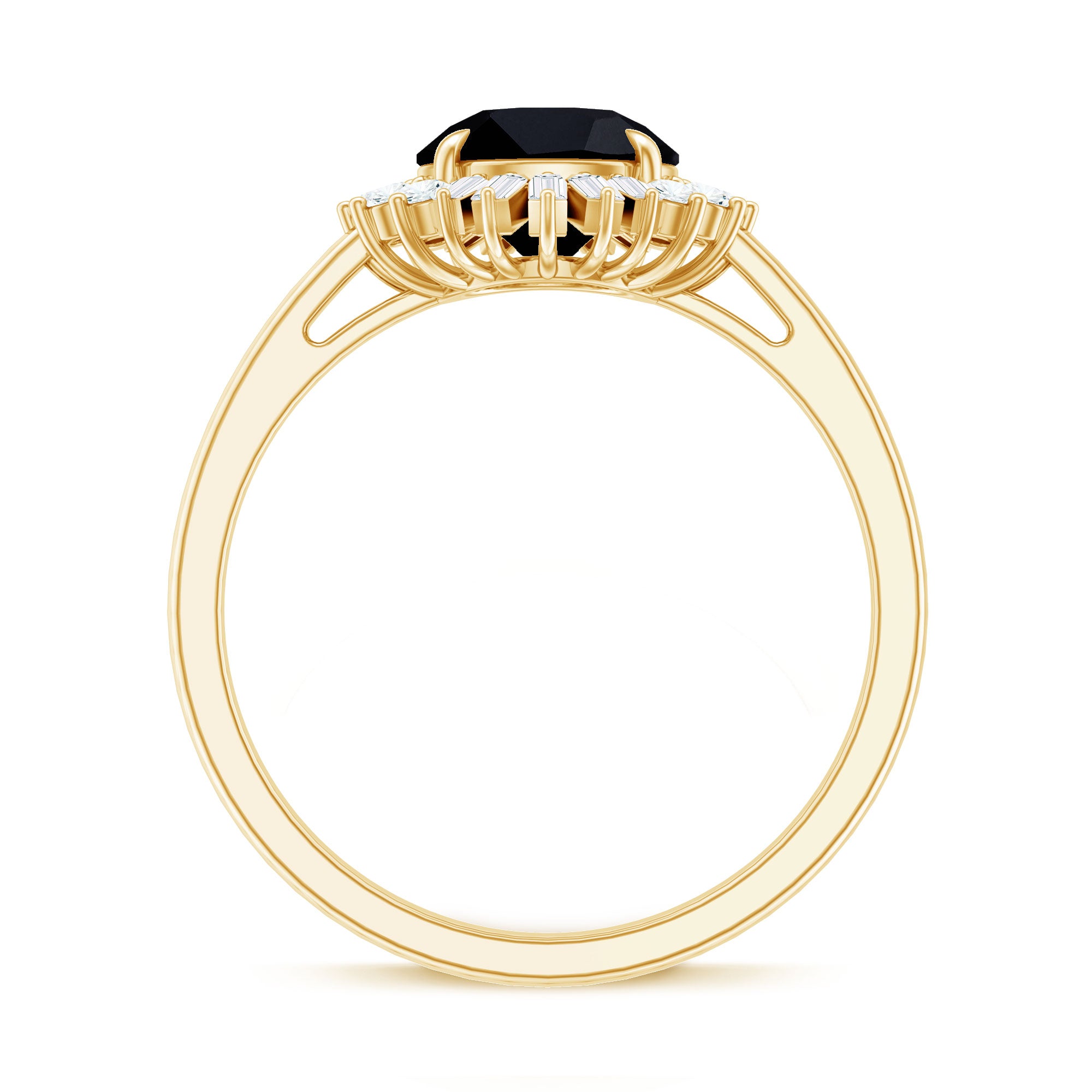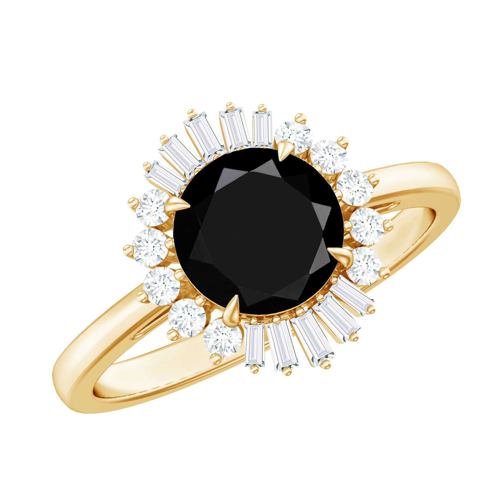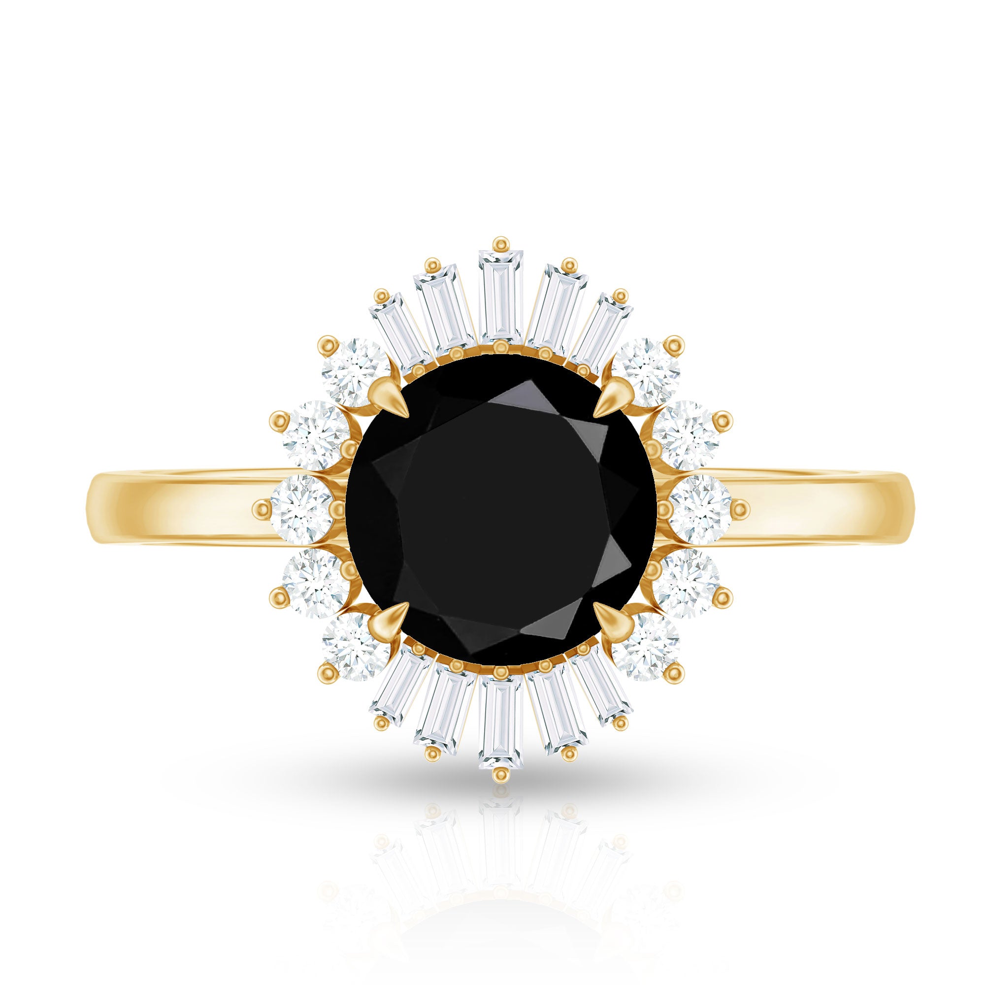 Experience the enchantment of vintage romance with this stunning Cocktail Ring, crafted to captivate with its timeless allure and exceptional artistry. At the core of the design is a remarkable 8 MM Round shape Black Onyx, celebrated for its extraordinary fire and brilliance. Surrounding the central stone is a magnificent halo of baguette and round Diamond stones, producing a dazzling display of sparkle that evokes the glamour of the Art Deco era. The interplay of shapes enhances the visual appeal of this Black Onyx Engagement Ring, infusing it with a seamless fusion of vintage elegance and contemporary brilliance. This Halo Engagement Ring is perfect for individuals who value intricate craftsmanship and a classic design with a modern twist. Whether it serves as a token of a lifelong commitment or is treasured as a future family heirloom, its beauty is both striking and timeless. Meticulously crafted for a refined and comfortable fit, this Real Black Onyx Ring is ideal for both daily wear and significant celebrations.