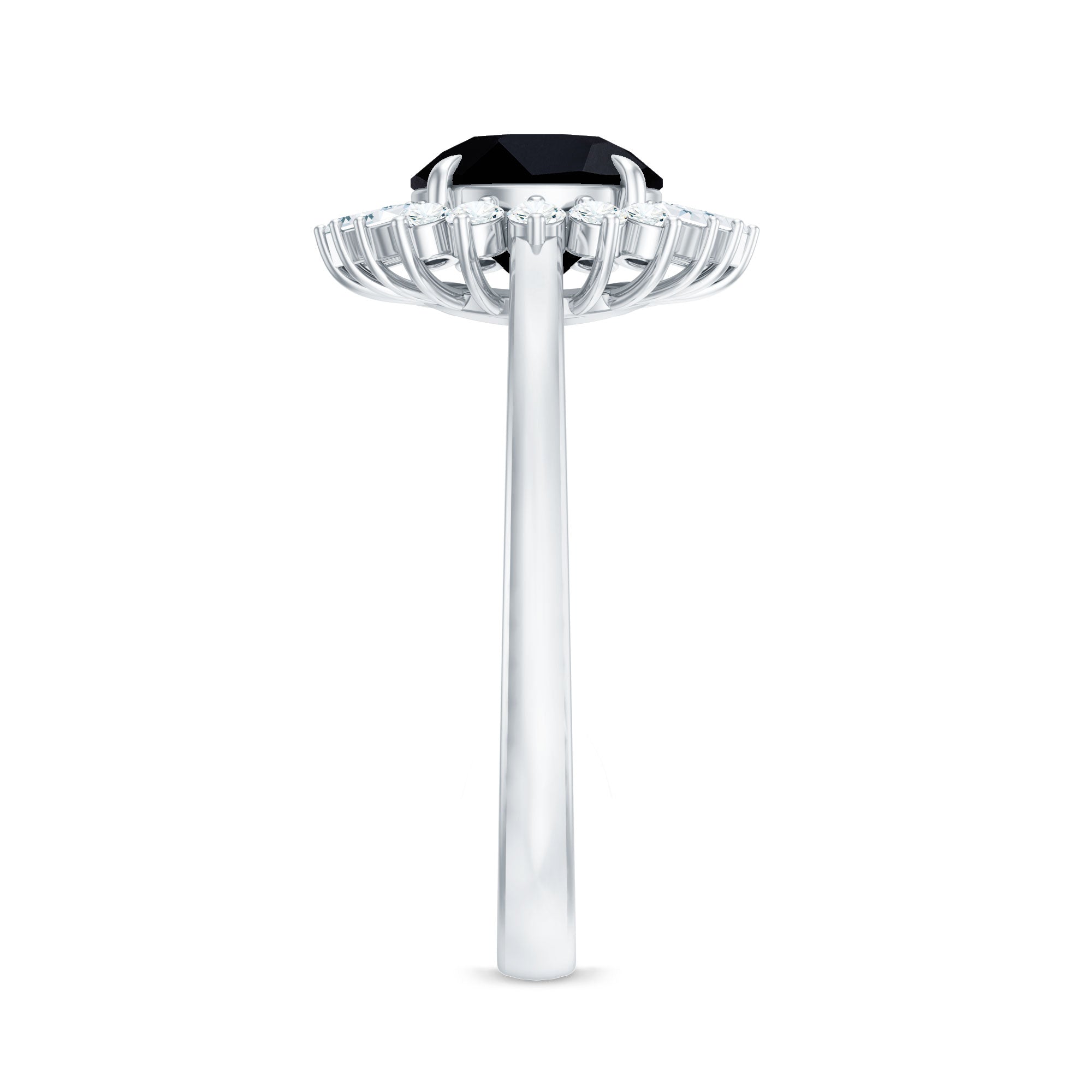 8mm Round Black Onyx Cocktail Ring with Diamond Halo
