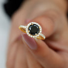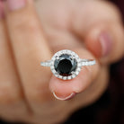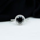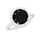 8mm Round Shape Black Onyx Engagement Ring with Diamond Halo