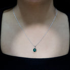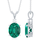 8X10 MM Oval Lab Grown Emerald Solitaire Necklace With Silver Chain