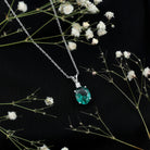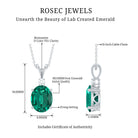 You are sure to be completely captivated by this Lab Grown Emerald Pendant Necklace, a true masterpiece showcasing its stunning look and unique design. This is yet another exquisite item from our Store. Crafted with only the finest materials, this piece features beautiful prong set stones skillfully set in 14k White Gold Plated Silver. Enhancing the breathtaking design is the AAAA quality lab created emerald that contrasts beautifully with the D color, VS1 clarity Moissanite. Dazzle the world with your appearance today by wearing this Oval Pendant Necklace from Rosec Jewels. Our unique Solitaire Pendant is embellished with an 8X10 MM oval cut emerald and a round cut moissanite positioned at the top. Perfectly engineered in labs, its charming rabbit ear bail seamlessly enhances the fluid elegance of the design. It promises to elevate your neckline in seconds as it hangs from a cable chain that connects with a secure lobster clasp. Treat yourself to the ultimate combination of luxury and sustainability with this Green Gem Necklace featuring lab created emeralds. This jewel will bring a touch of sophistication to any outfit, making it a perfect choice for gifts, everyday wear, or special occasions.