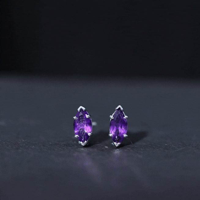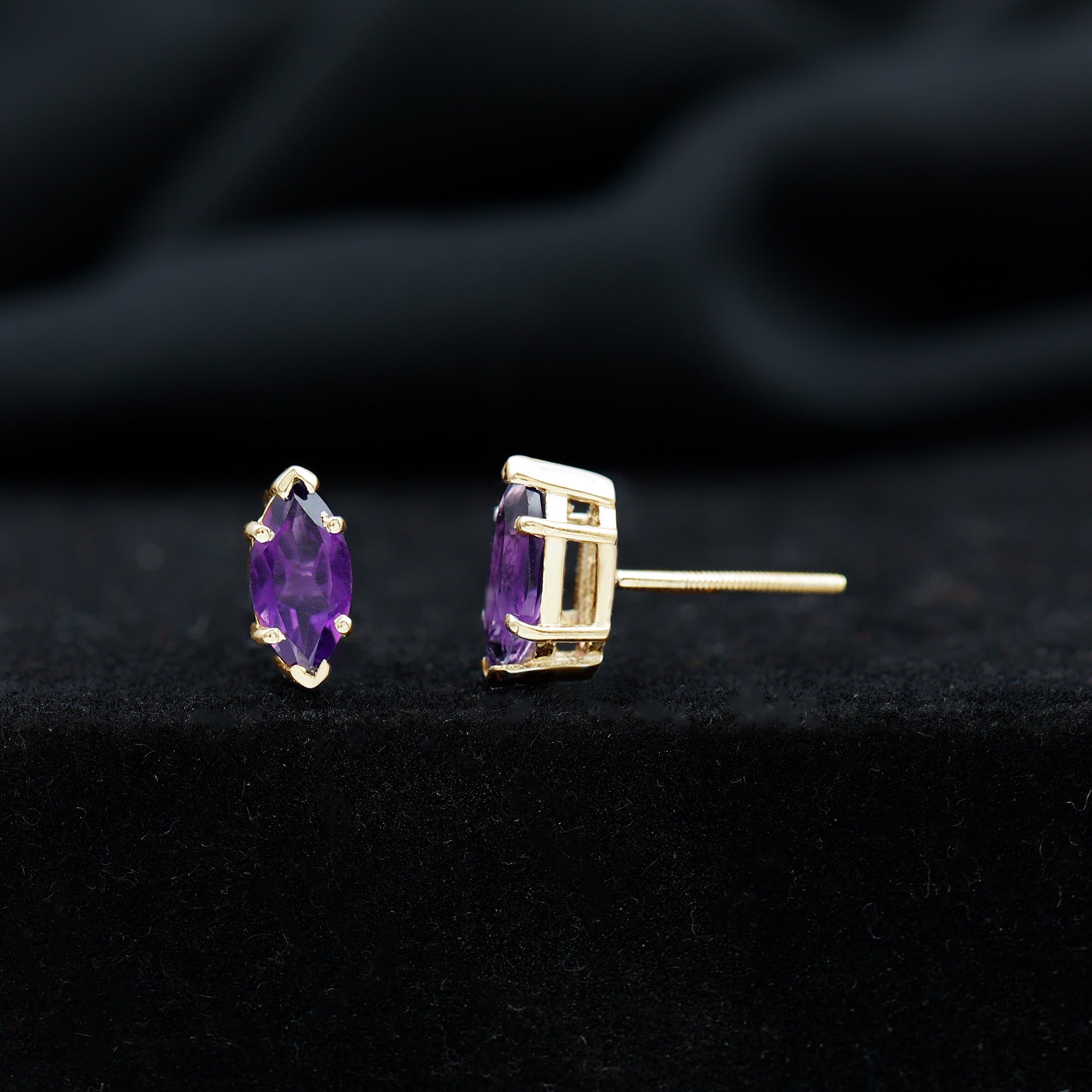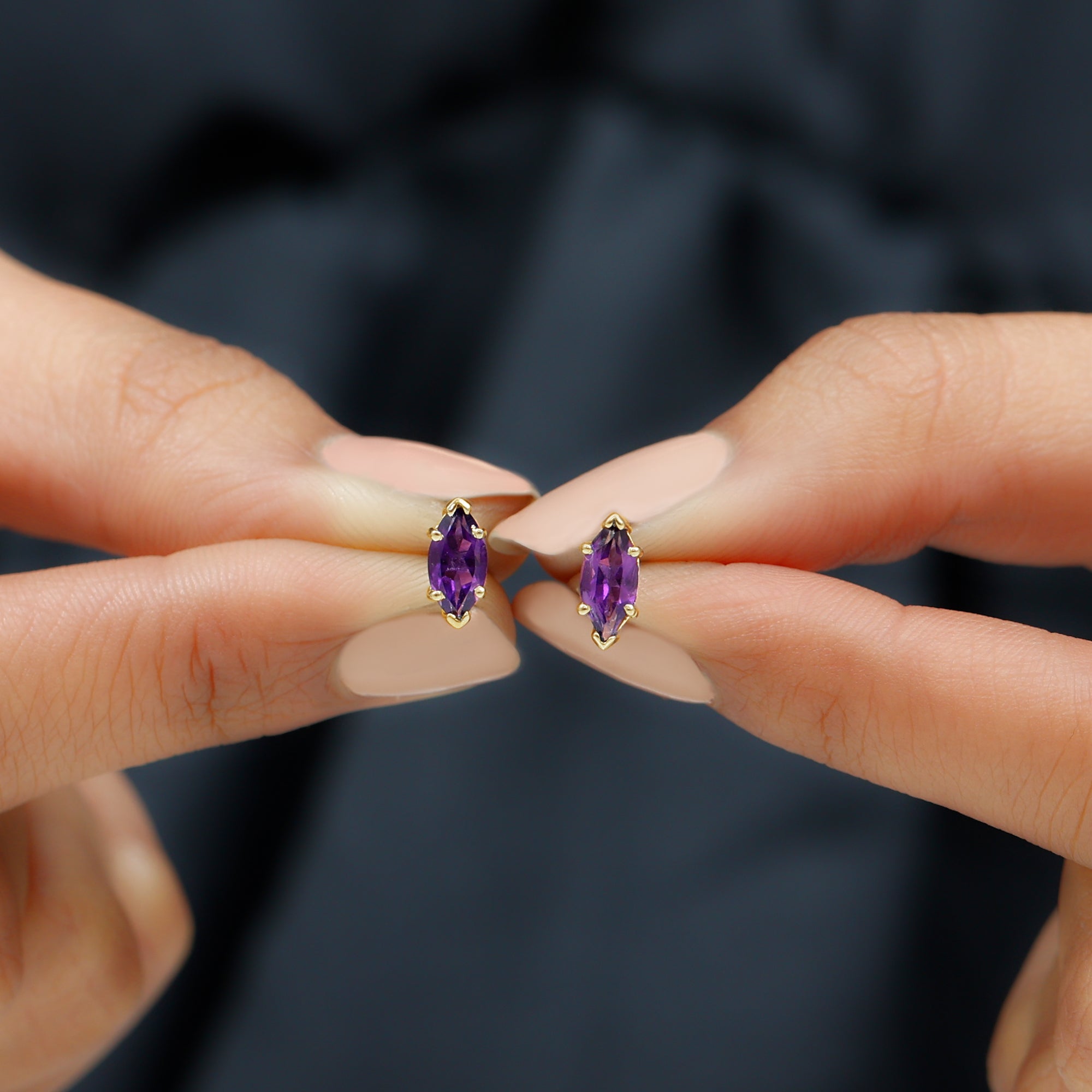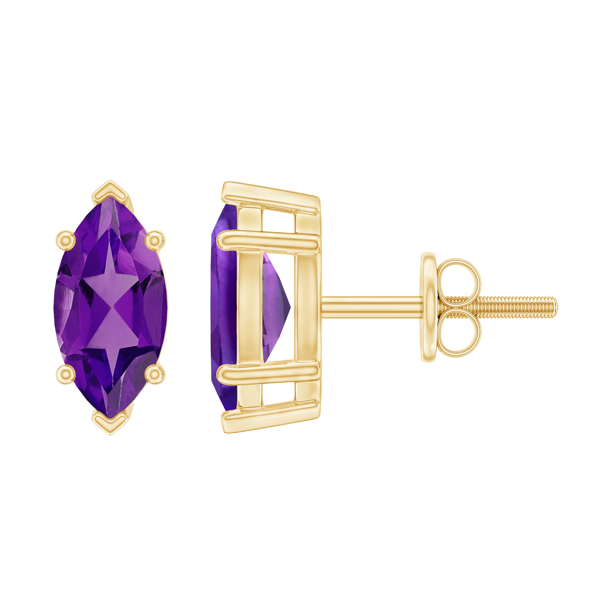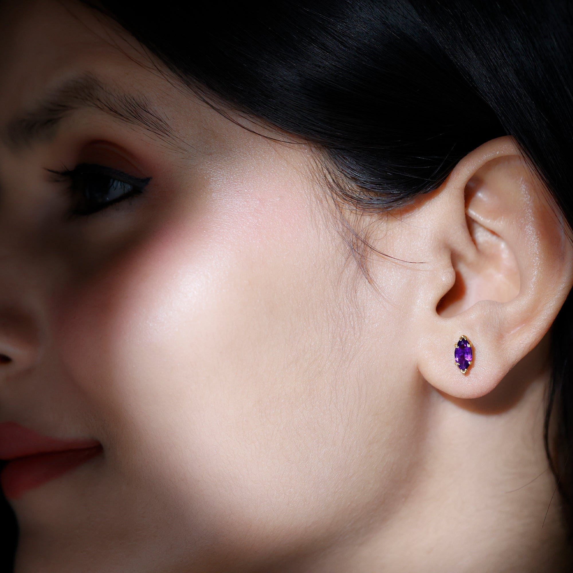 Enhance your beauty with these beautiful Stud Earring Embellished with Marquise Cut Amethyst set as Solitaire in Prong Setting. This Gold Stud Earring is Composed of Solid Gold