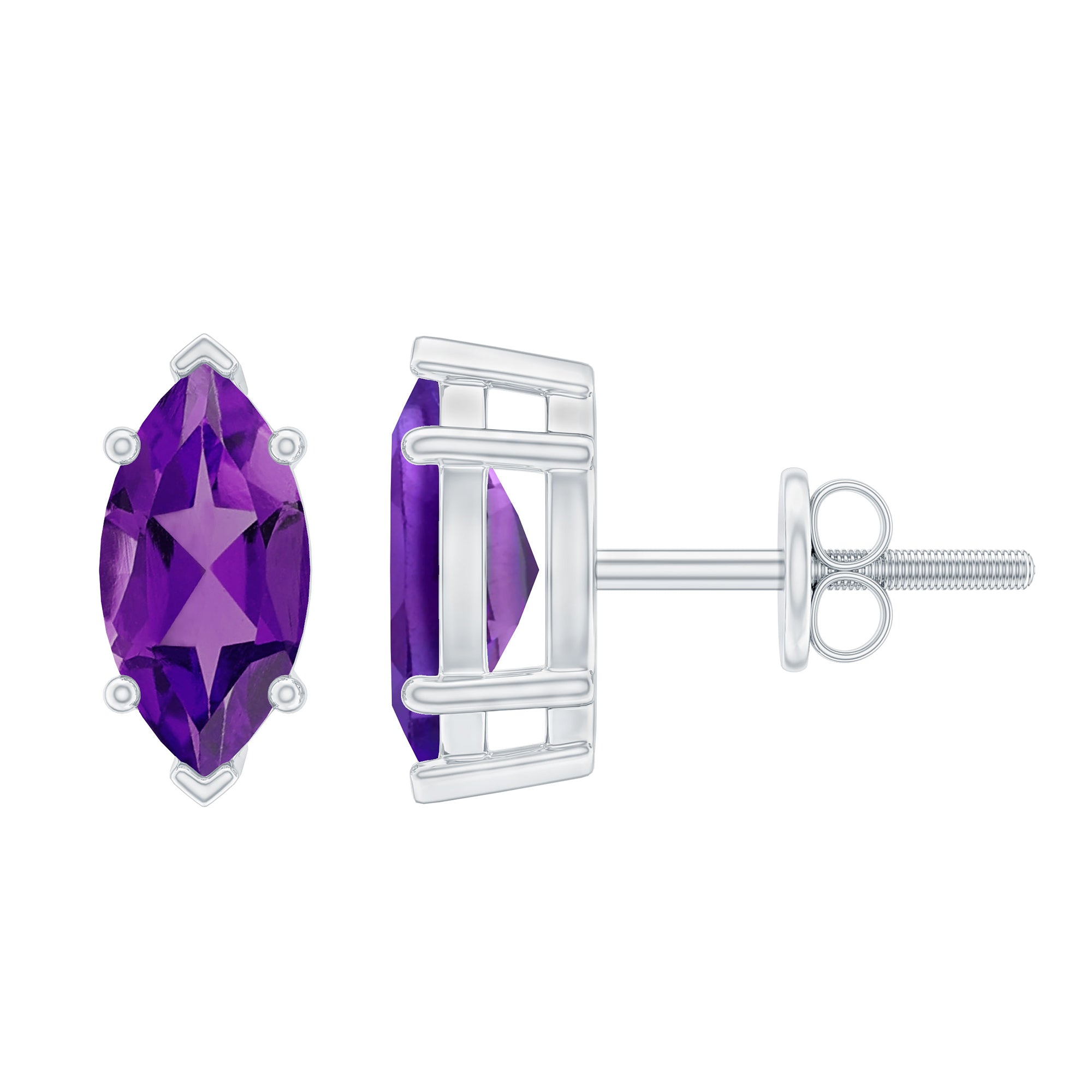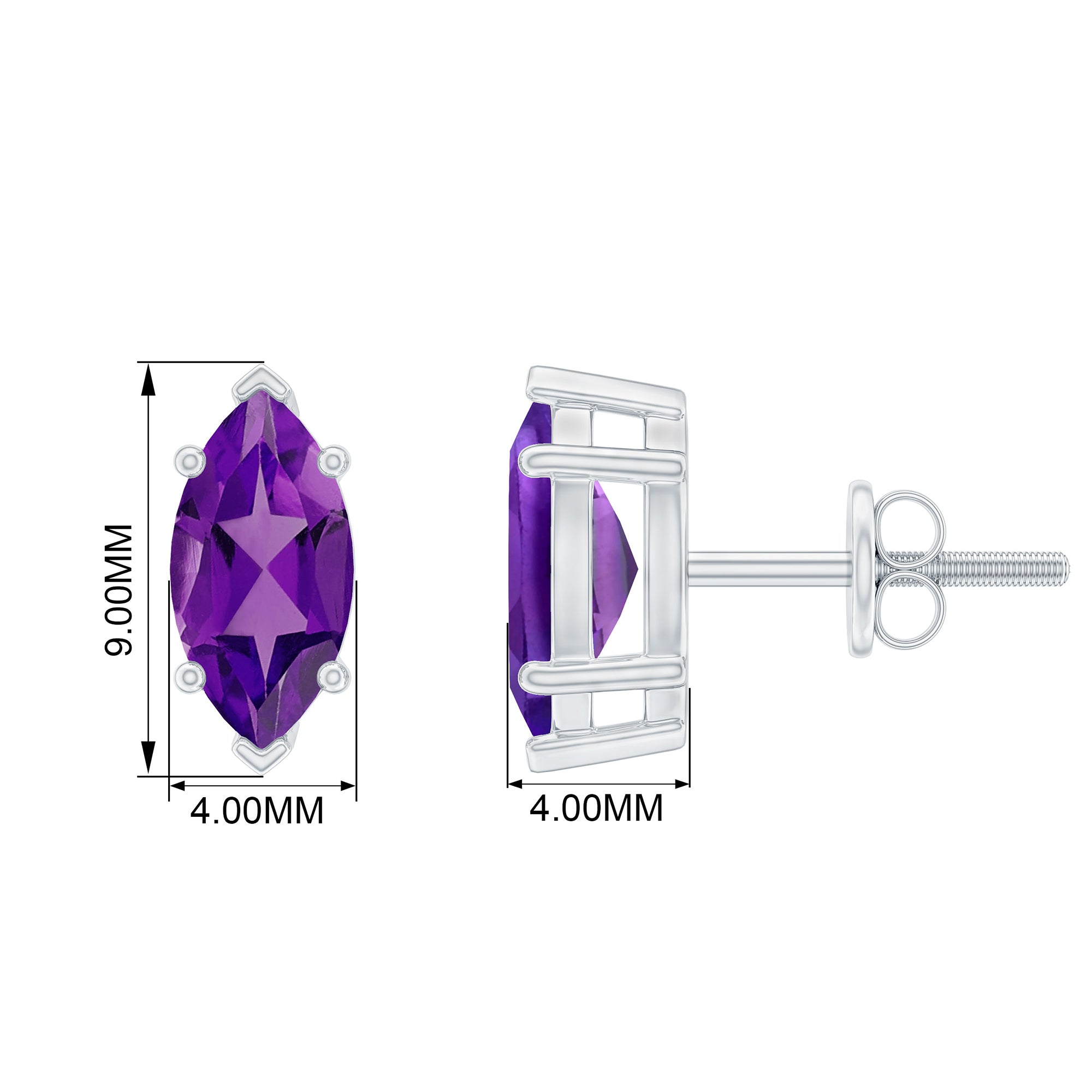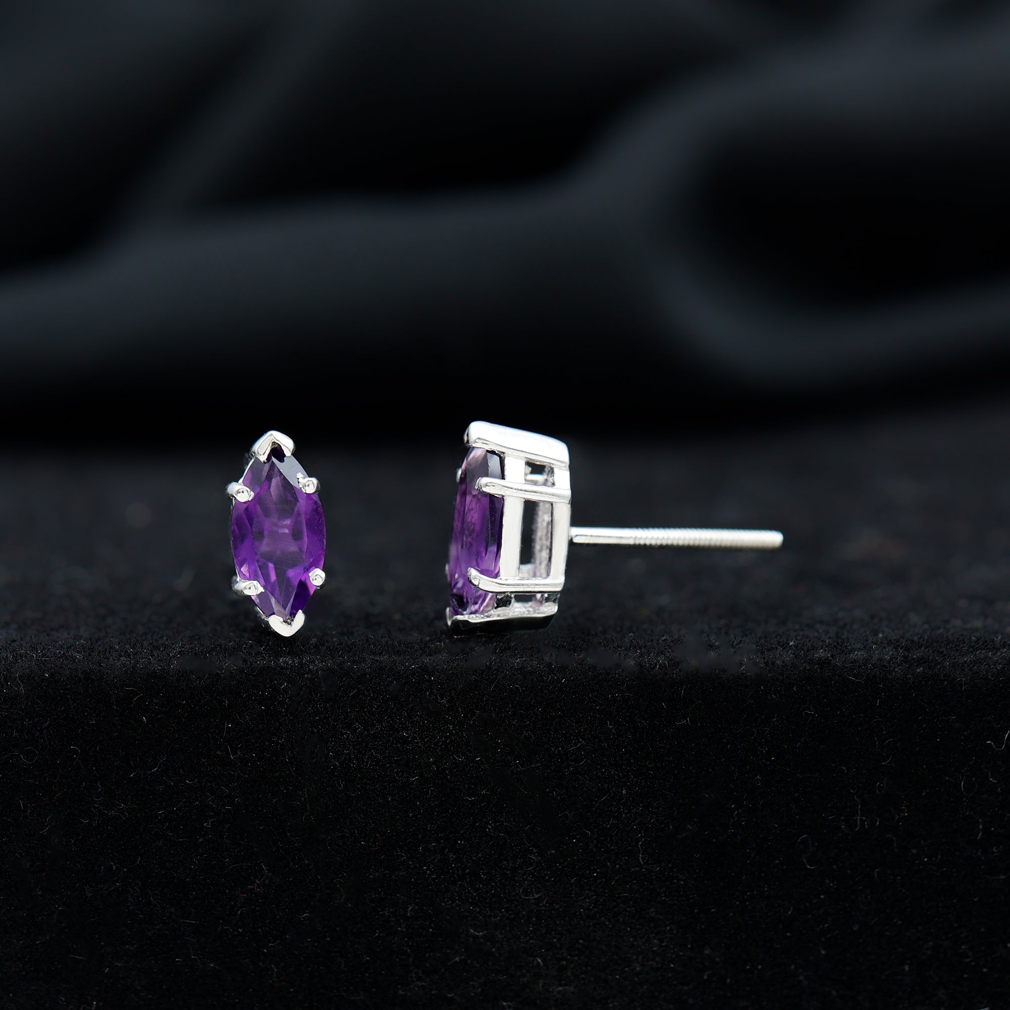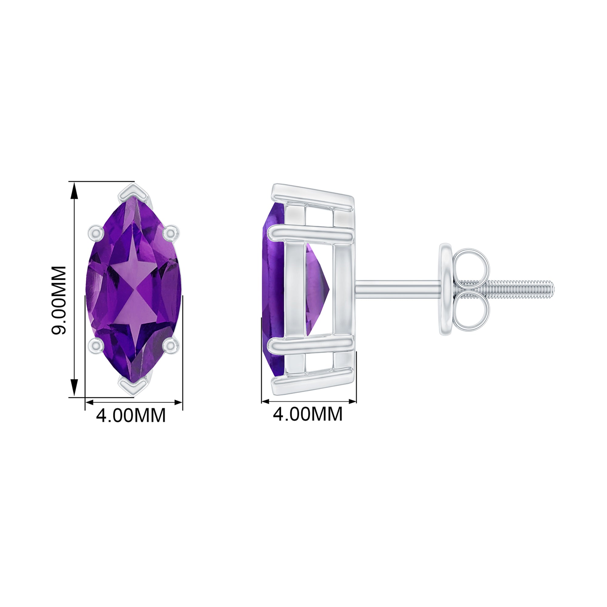 8X4 MM Marquise Cut Amethyst Solitaire Stud Earring