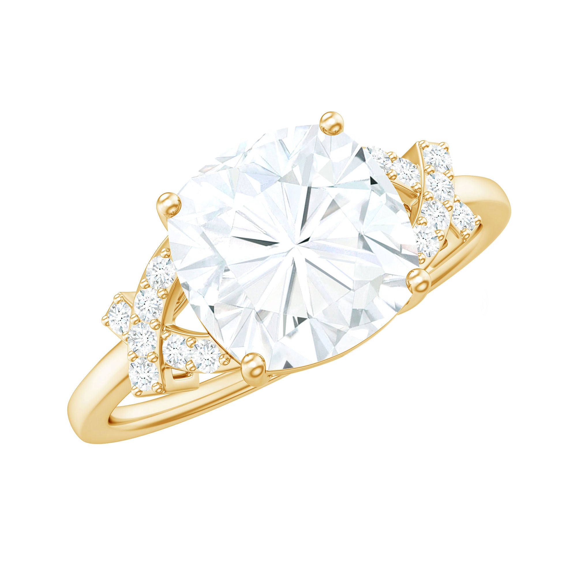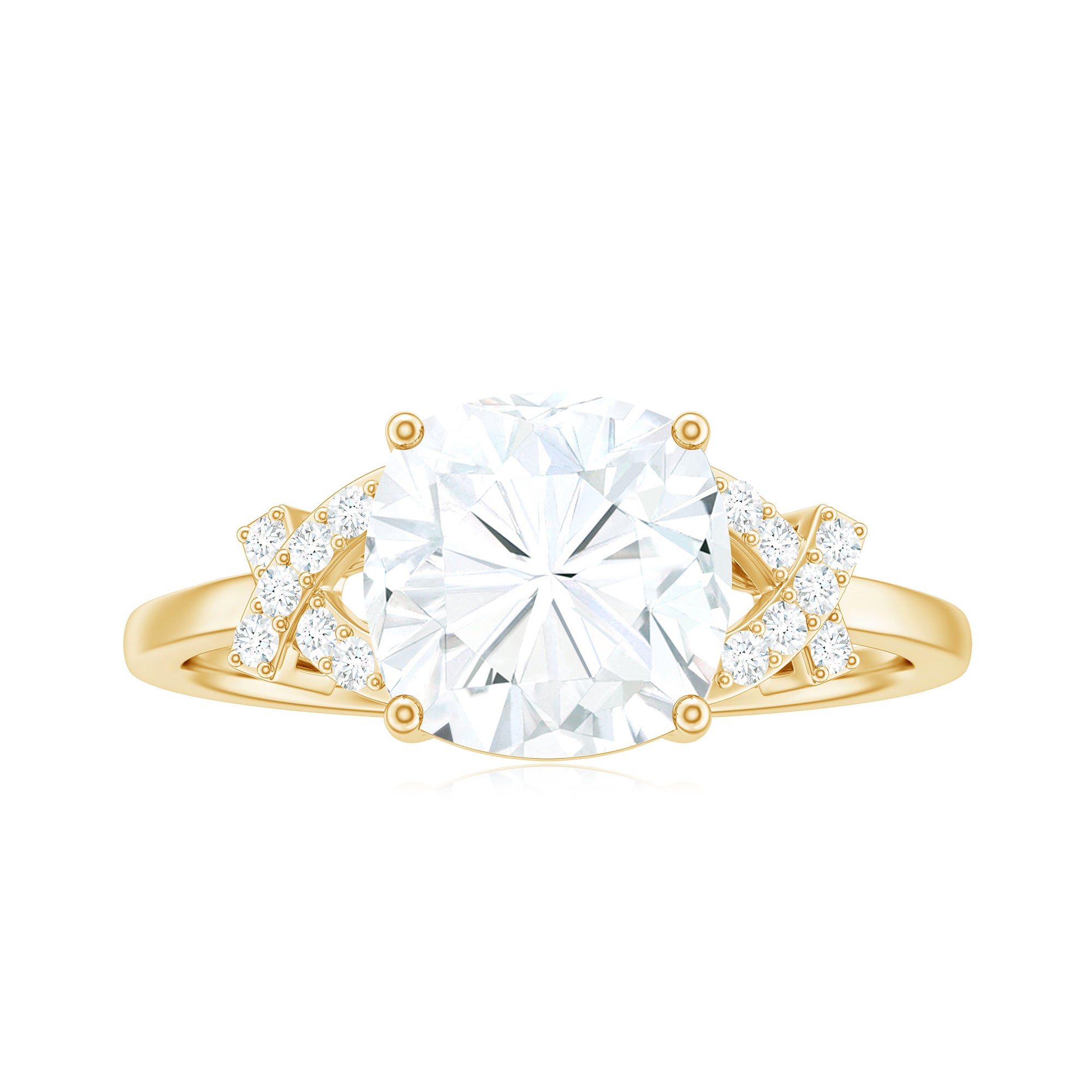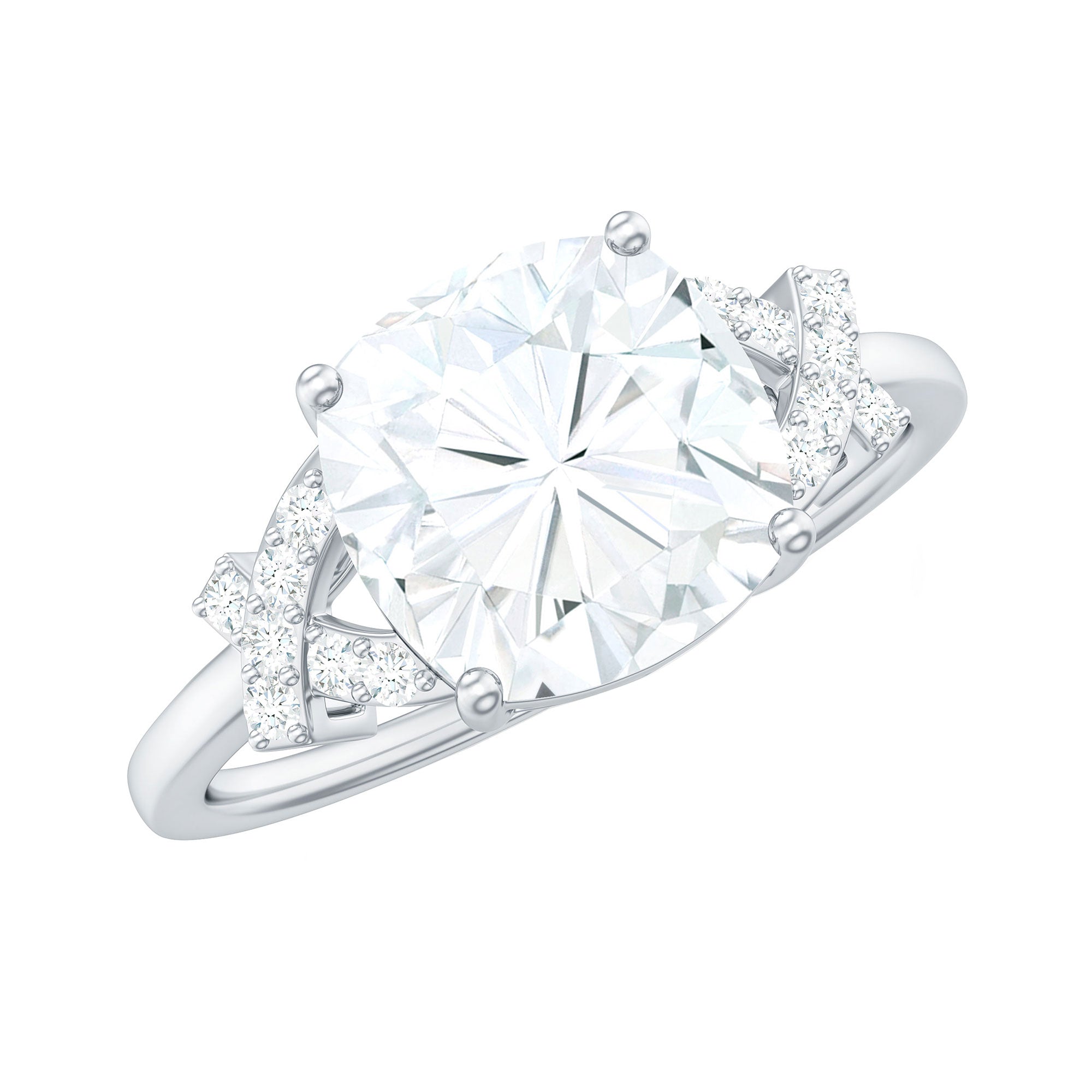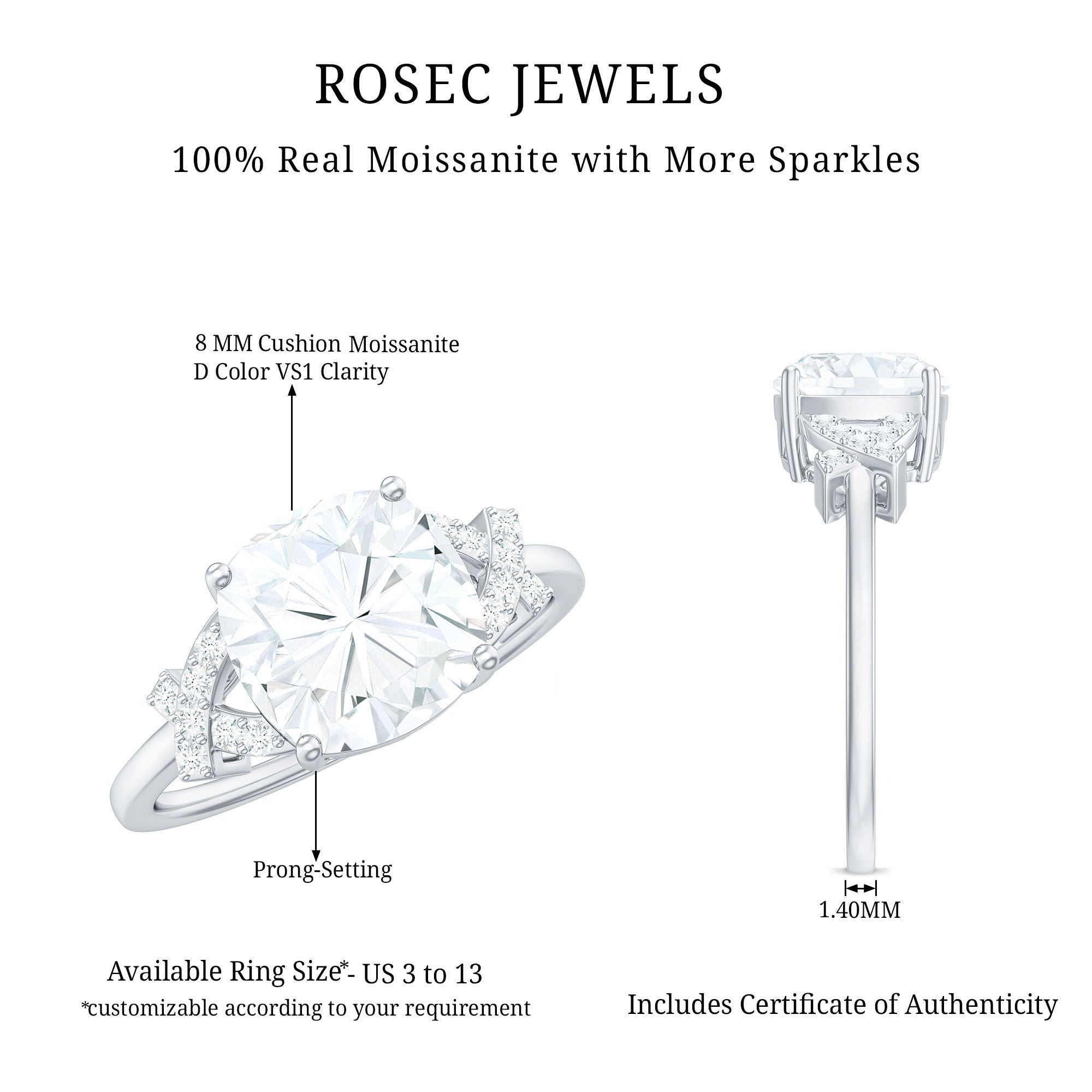 A radiant sparkle of forever – This Cushion Cut Solitaire Engagement Ring is crafted for moments that last a lifetime. Celebrate your promise of forever with this Moissanite Engagement Ring, a striking symbol of elegance and lasting devotion. With a dazzling 8x8mm cushion cut Moissanite of D-VS1 quality, this Solitaire Cushion Cut Engagement Ring captures the essence of timeless beauty. The brilliance of the 3.35 carat total weight Moissanite solitaire reflects unmatched fire and clarity, evoking a love that grows brighter with every glance. Held securely in a classic prong setting, this Solitaire Engagement Ring showcases the stone in a way that allows every facet to sparkle with incredible intensity. Designed for the special occasion of a lifetime, the elegant engagement split shank ring adds a unique character to its graceful silhouette, elevating the charm of this cushion cut solitaire ring even more. This certified Moissanite ring is more than just a jewel—it is a radiant token of your shared dreams and everlasting affection. Each detail, from the illusion of its majestic cut to the artistry of its setting, is meticulously designed to embody perfection and passion. As part of our signature engagement rings collection, it reflects grandeur while remaining gracefully refined. With its luxurious aura and contemporary sophistication, this moissanite ring for women is crafted to shine for generations, offering brilliance that rivals any traditional stone. A perfect harmony of innovation and emotion, this solitaire ring tells a story of love too extraordinary for words—spoken best in sparkle.