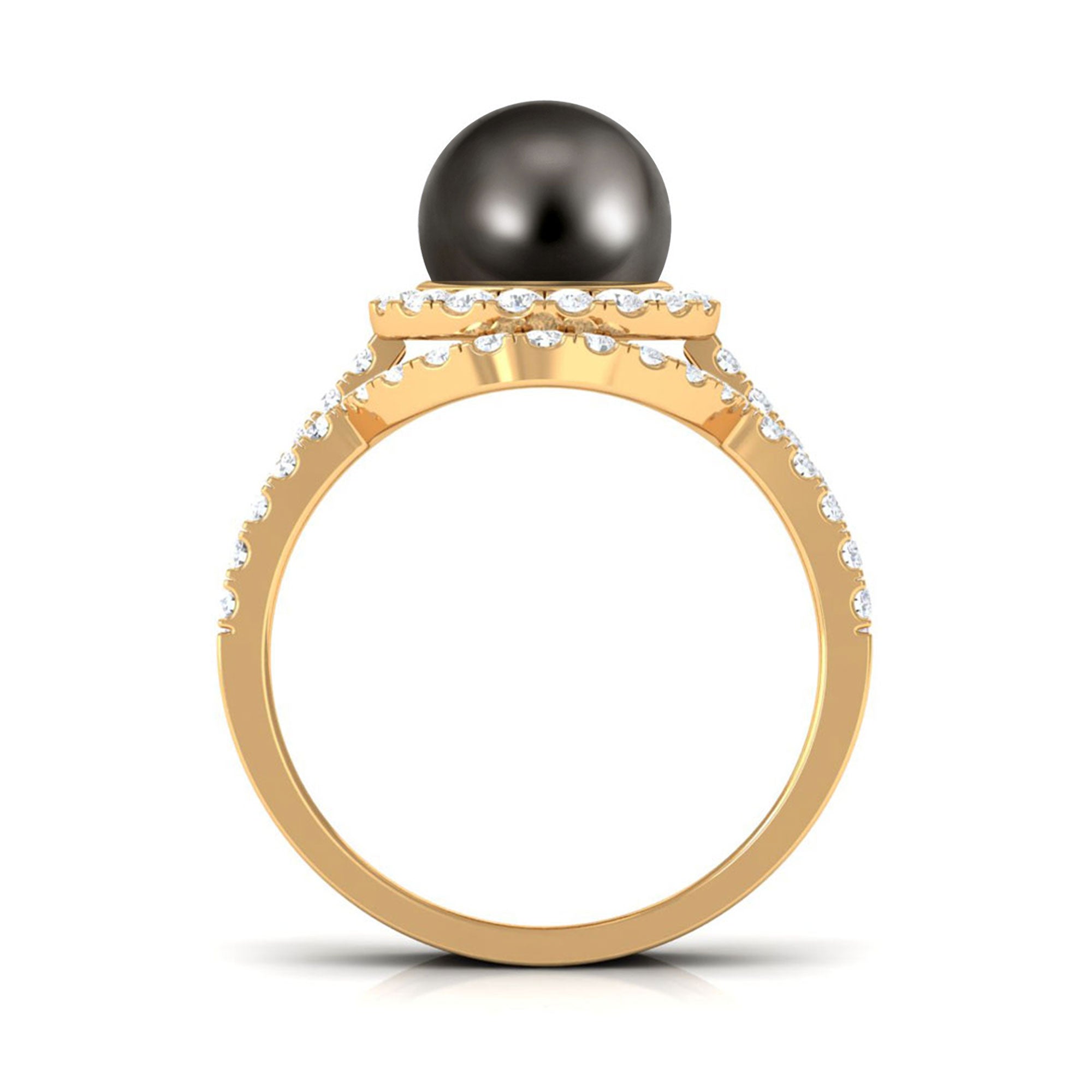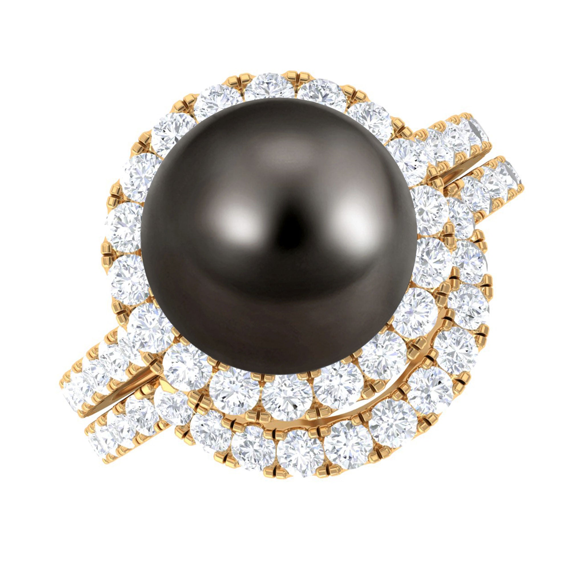 9 CT Tahitian Pearl and Diamond Halo Wedding Ring Set