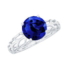AAAA Quality Lab Created Blue Sapphire Solitaire Ring with Filigree Shank
