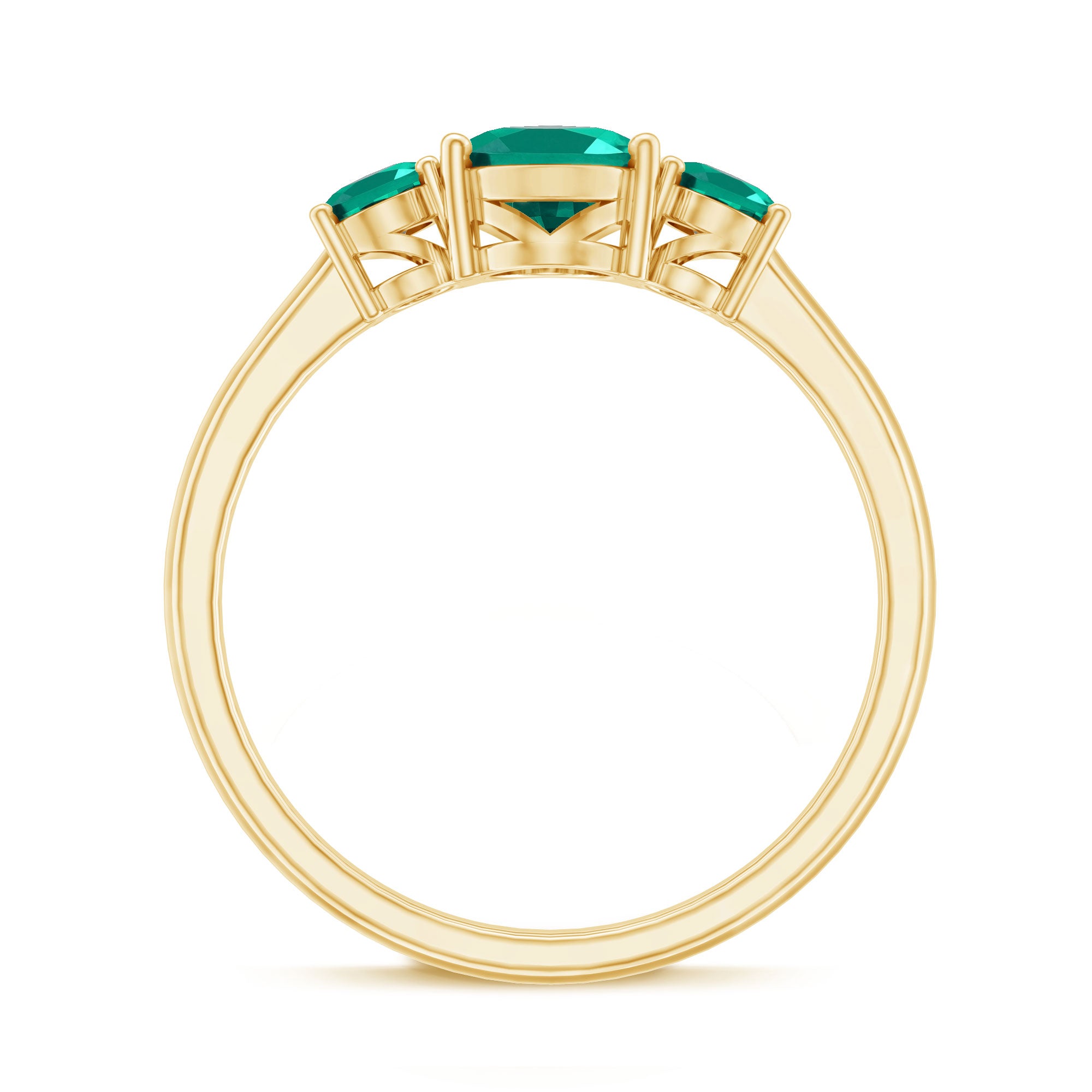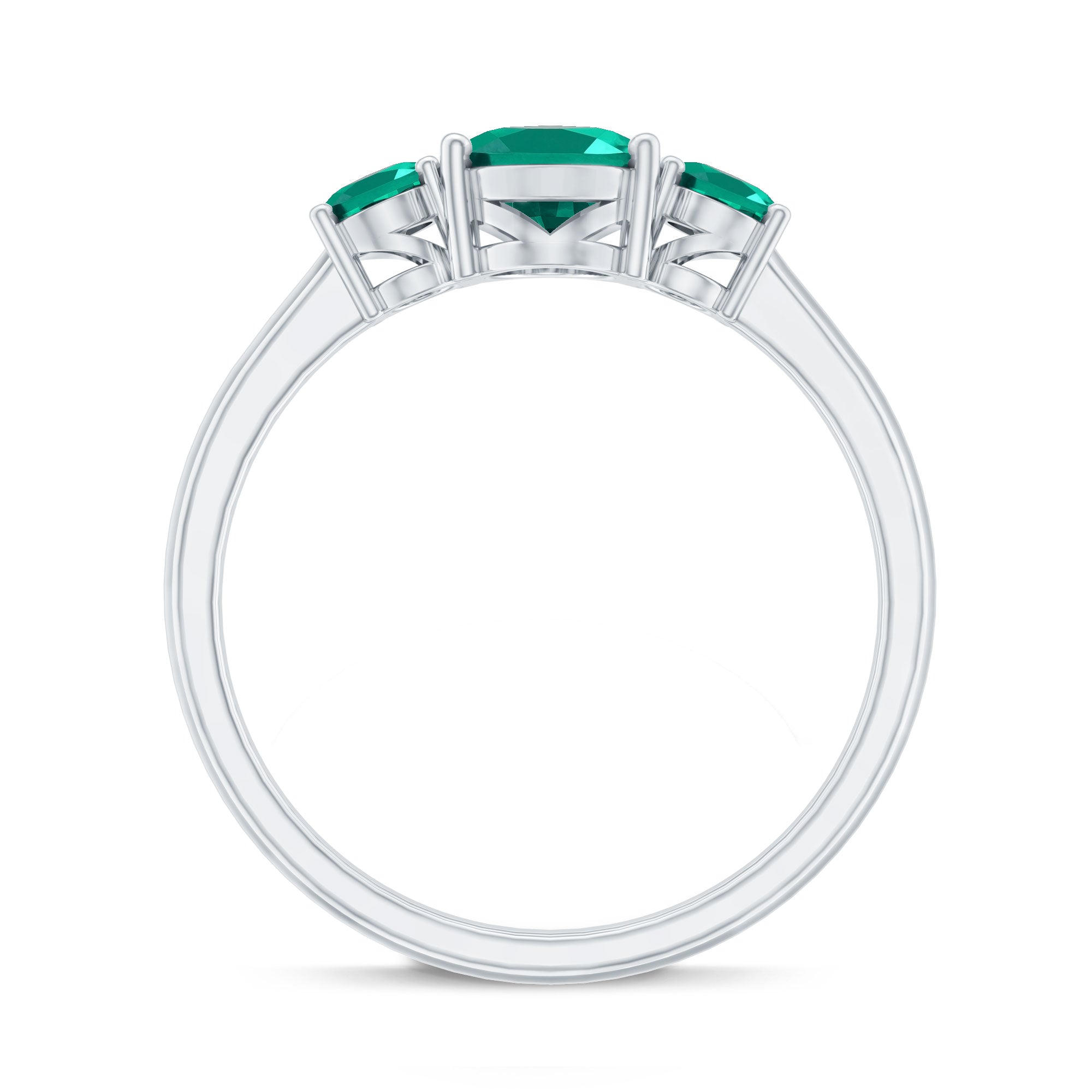 AAAA Quality Oval Cut Lab Created Emerald Three Stone Ring for Women
