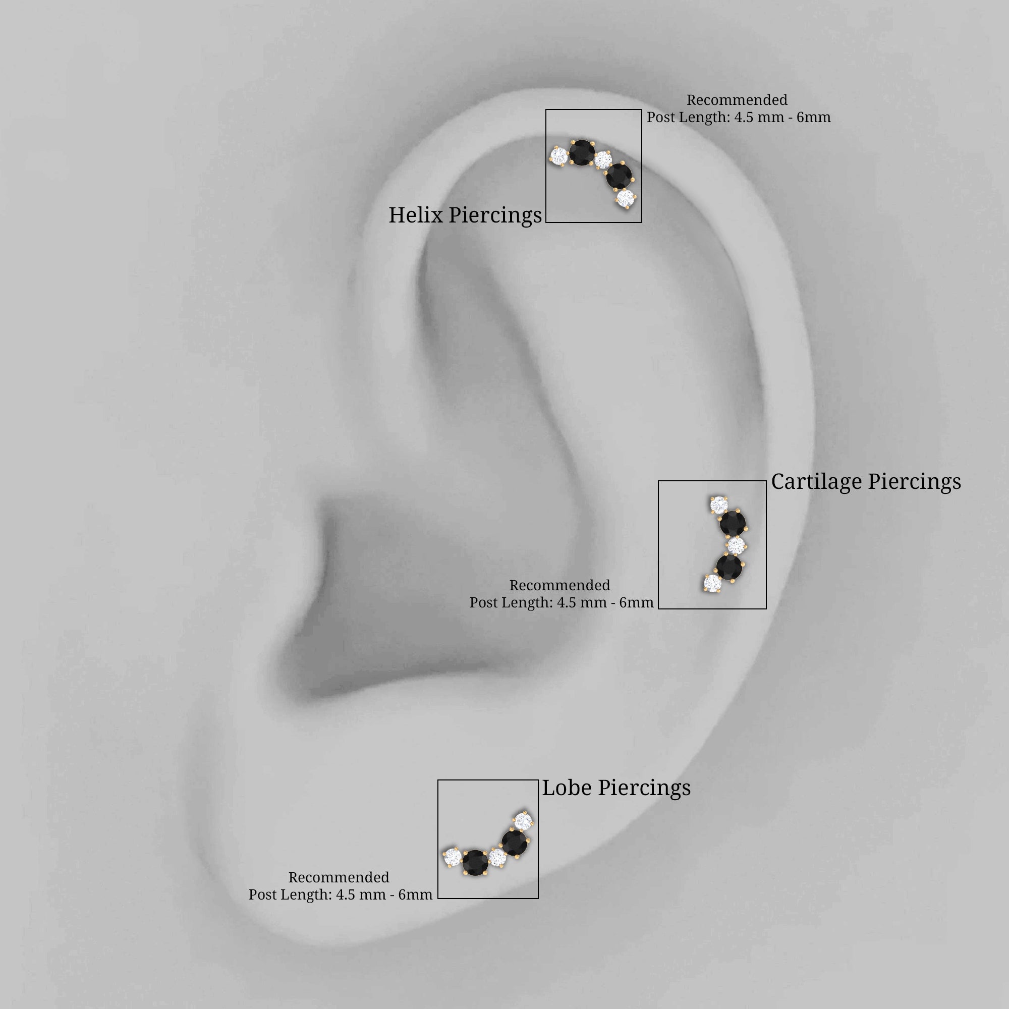 Make a statement with this Black Onyx and Moissanite Crawler Earring, featuring Round Cut Black Onyx and Moissanite set in Prong Setting in an alternative pattern. Wear this crawler earring on your Helix, Cartilage, or Upper Lobe Piercing with its flat back closure that keeps it secured in place. This unique Onyx Curved Cartilage Earring makes an ideal Birthday, Anniversary, or Christmas Gift for someone special.