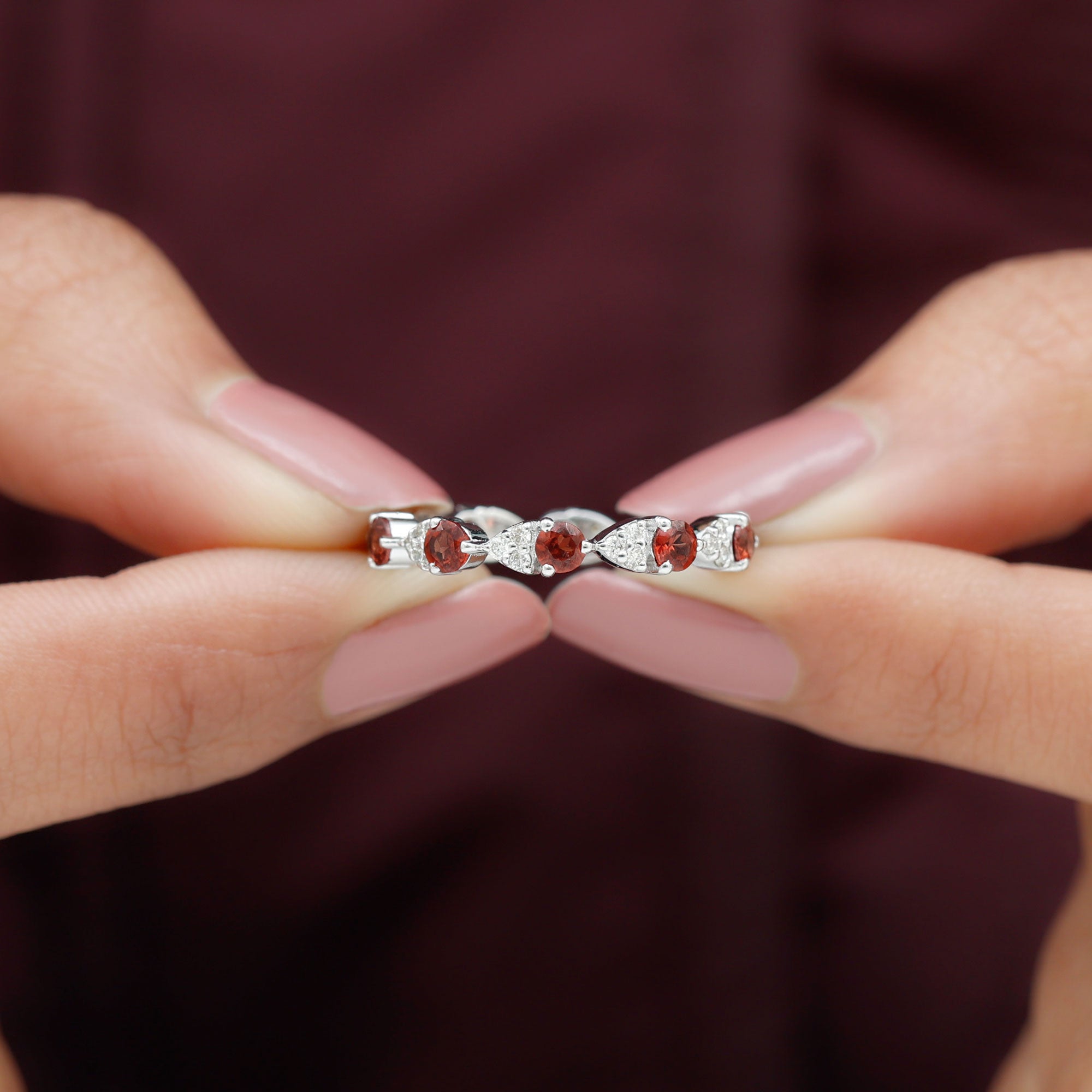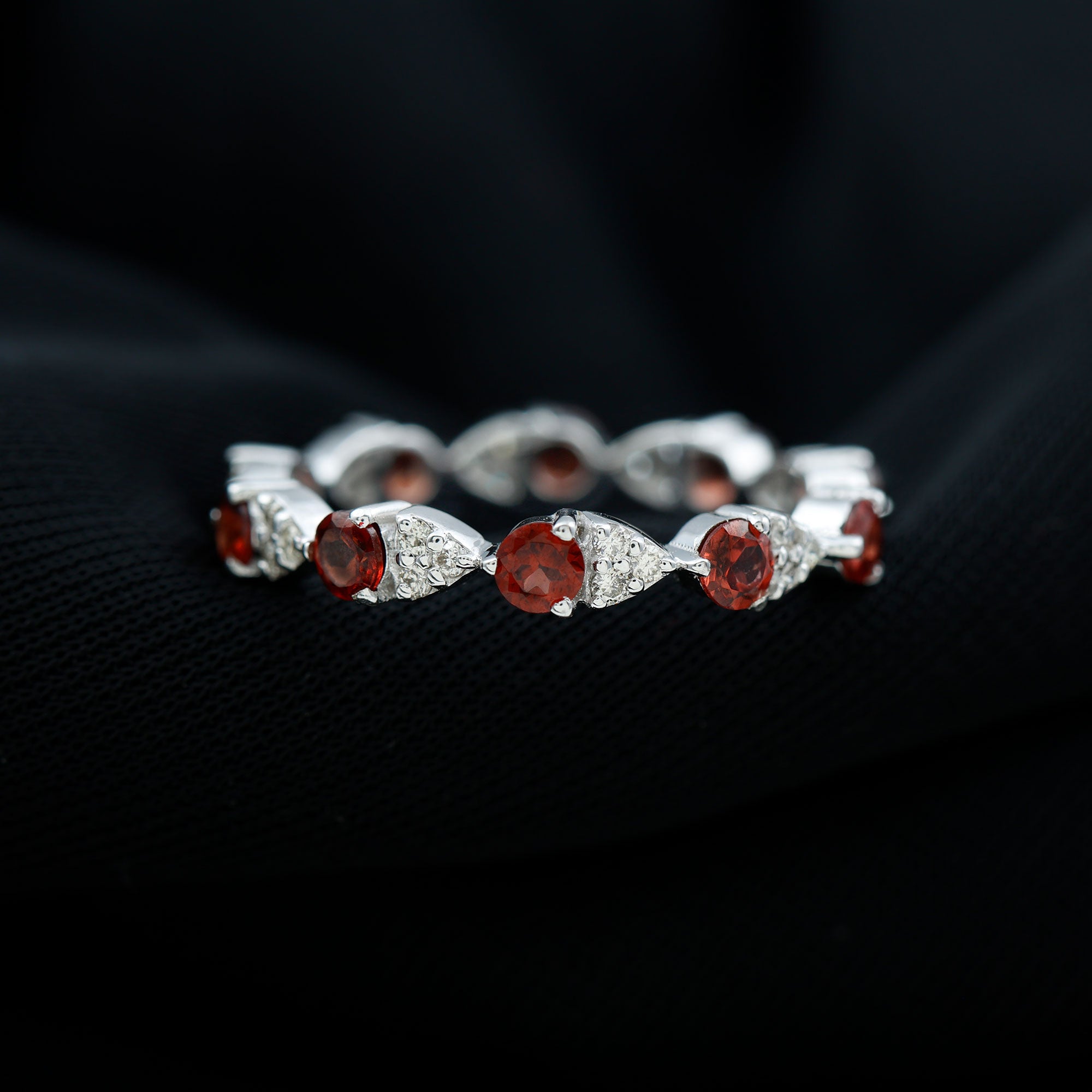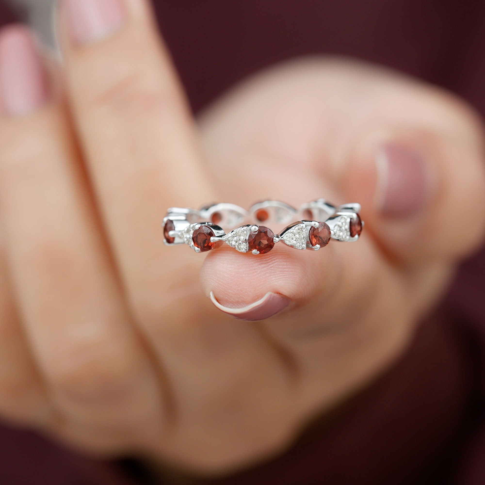 Natural Garnet Diamond Eternity Ring for Anniversary