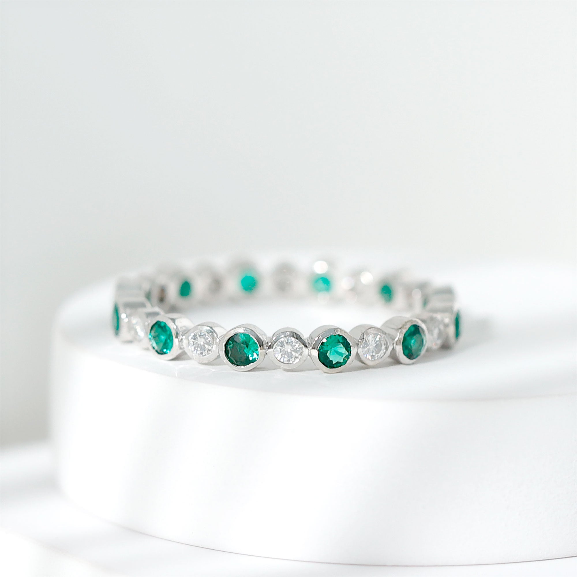 Alternating Set Lab Emerald and Moissanite Full Eternity Ring